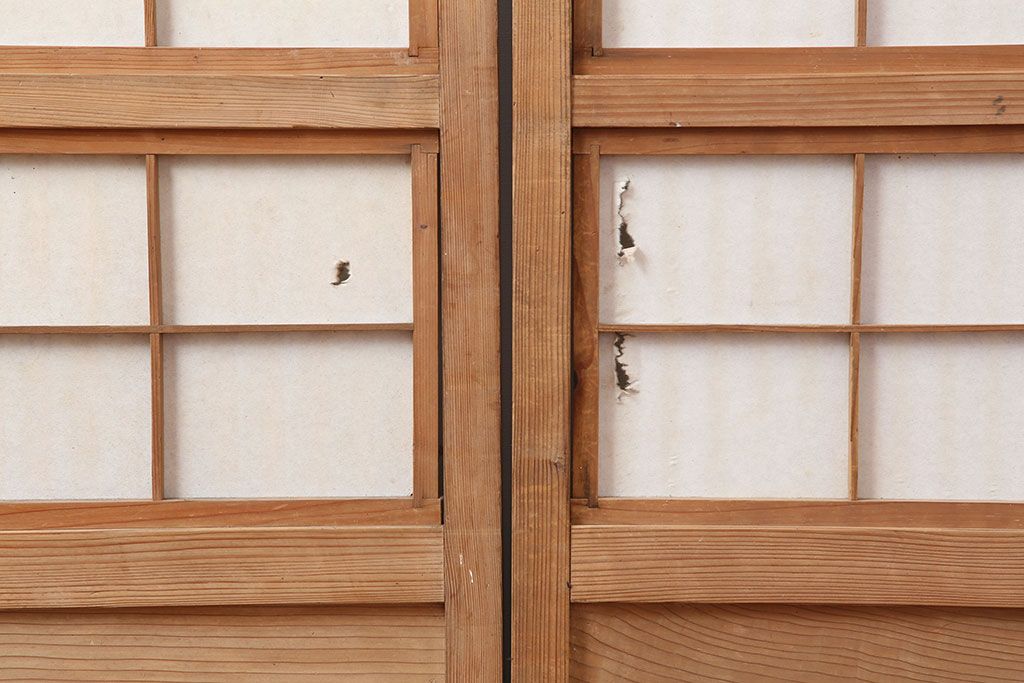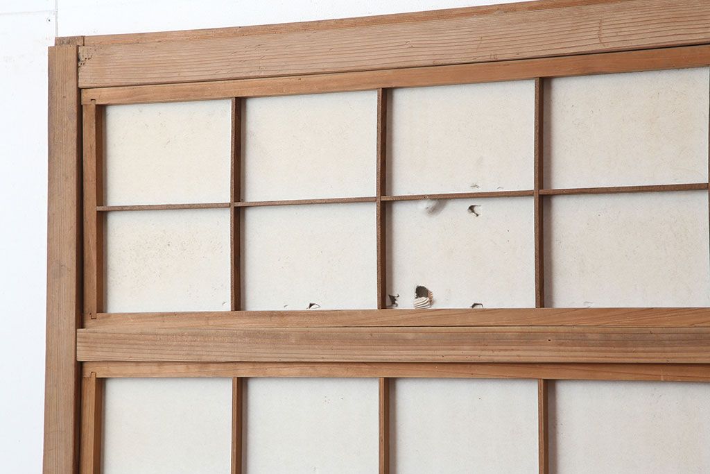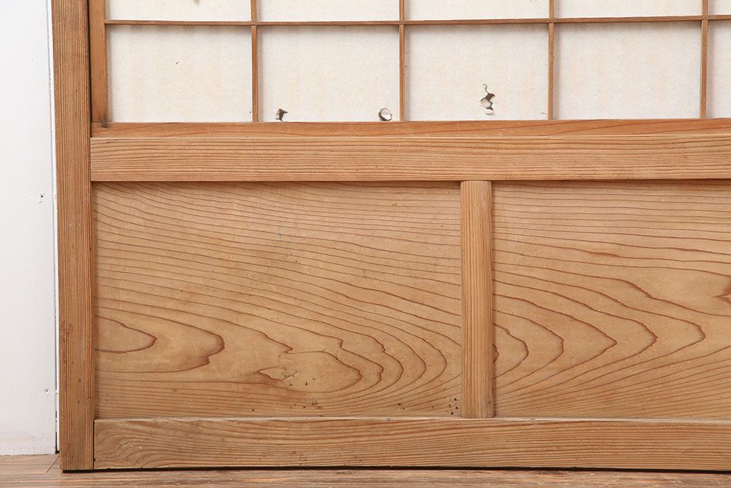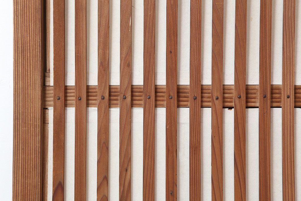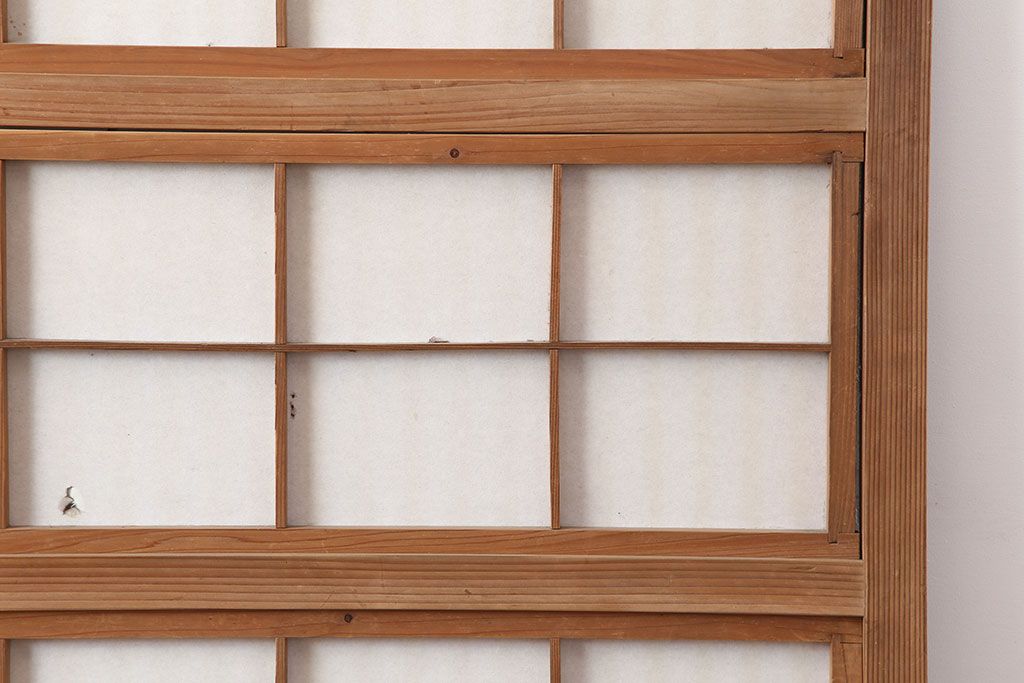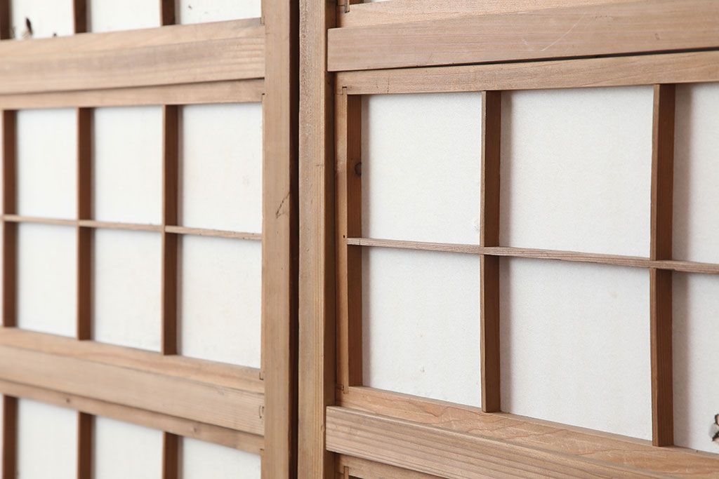 アンティーク建具 裏障子付き 木味と桟が魅力の格子戸2枚セット(引き戸、建具)(R-036754)