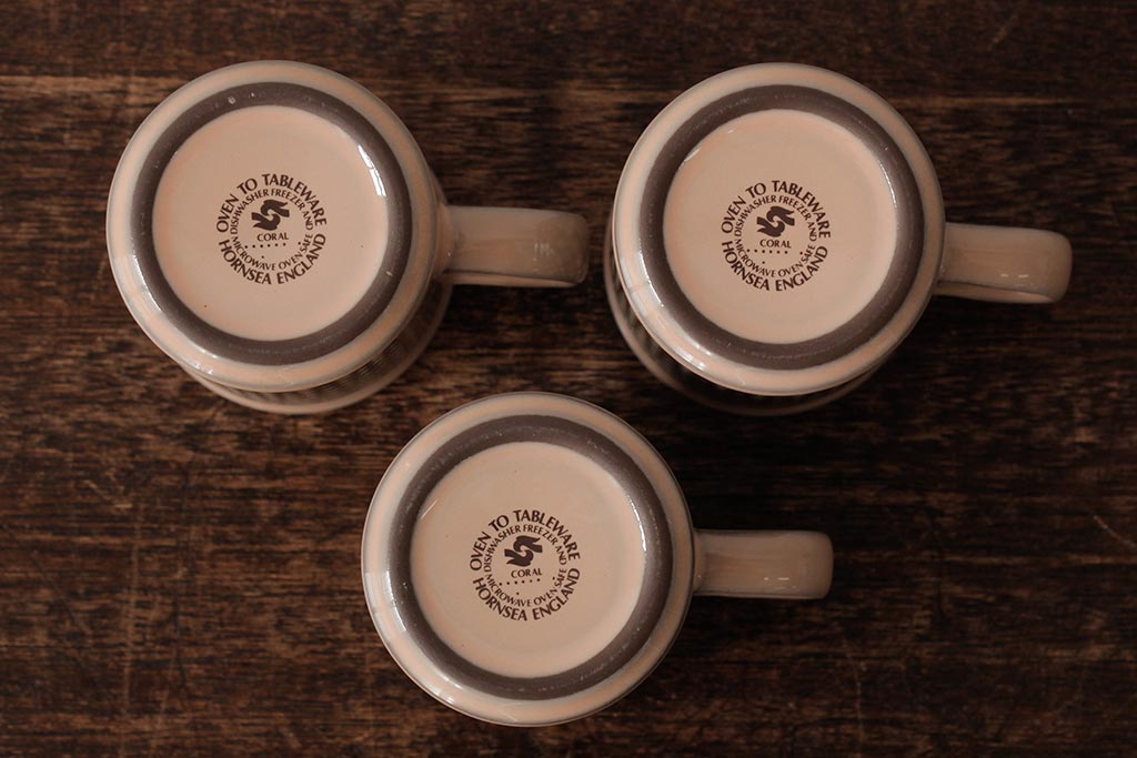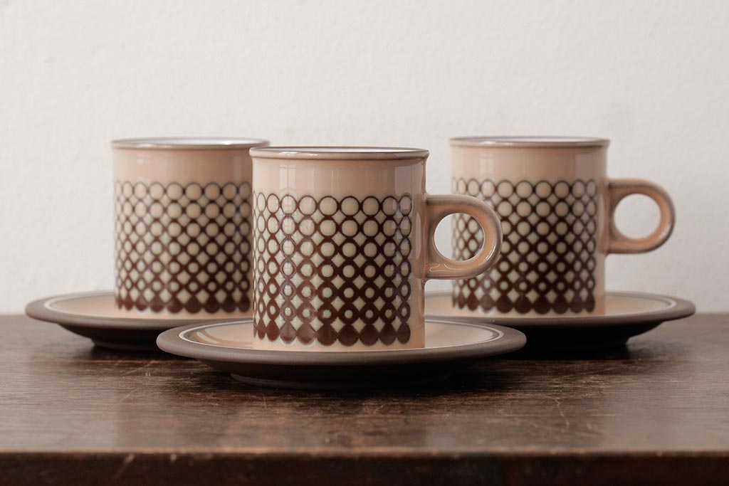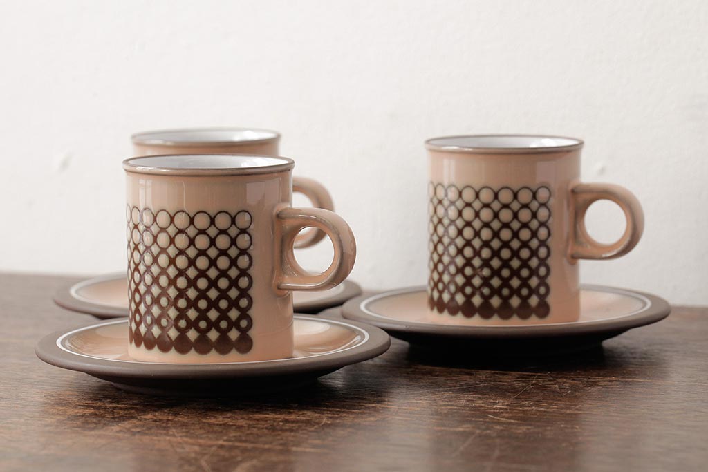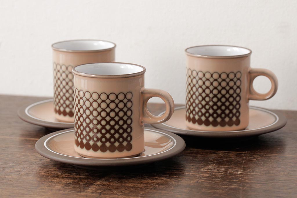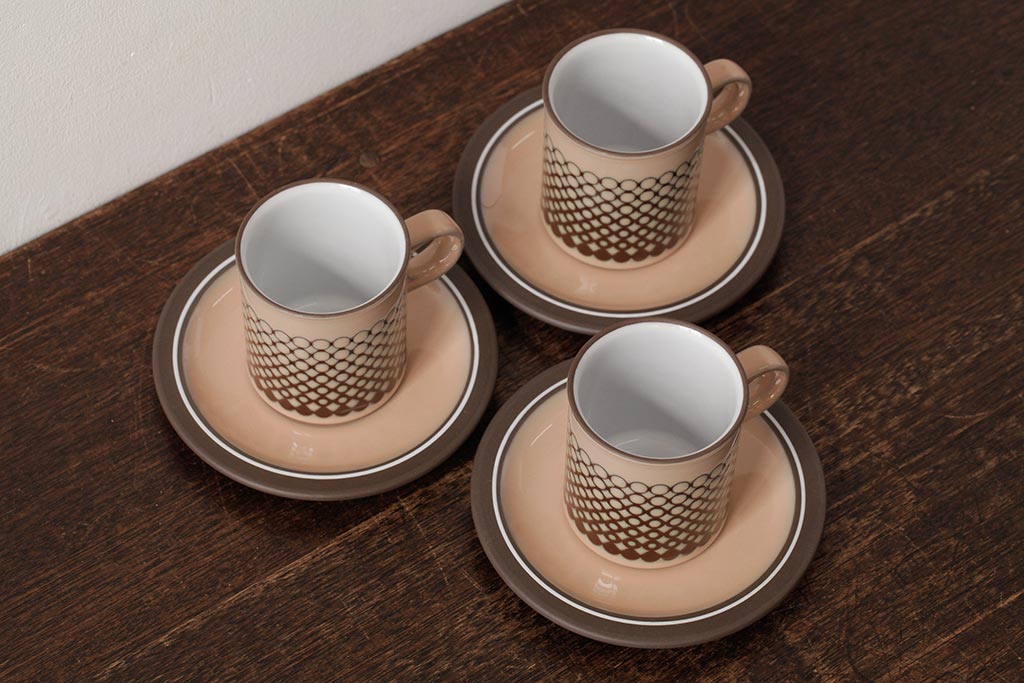 ヴィンテージ雑貨 イギリスビンテージ HORNSEA(ホーンジー) CORAL(コーラル) カップ&ソーサー3客セット(洋食器)(R-037327)