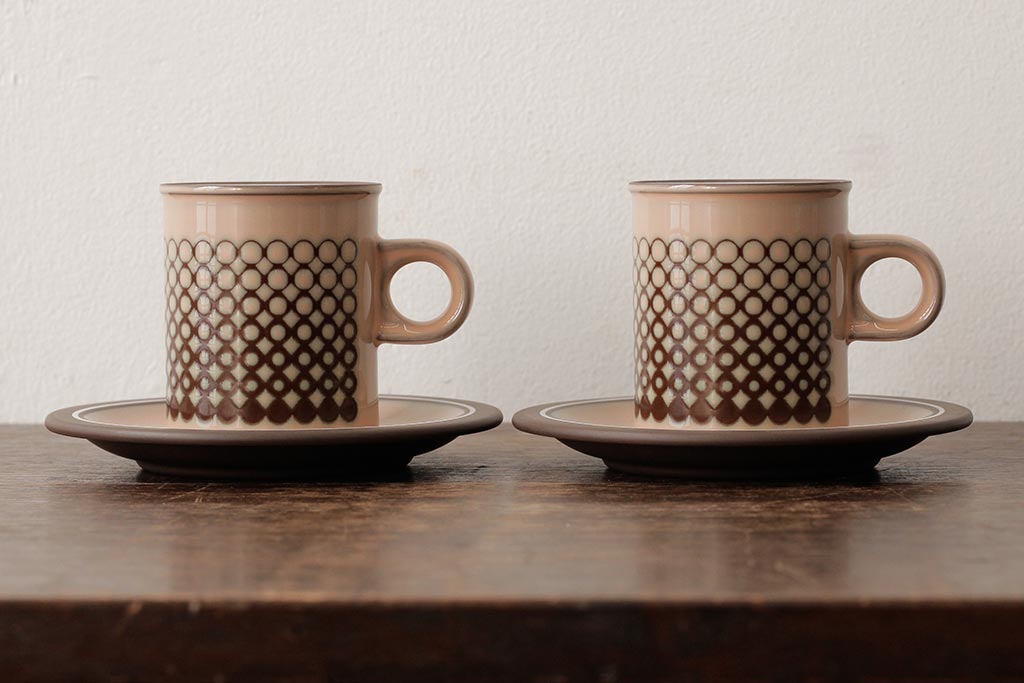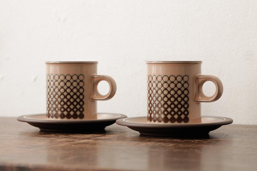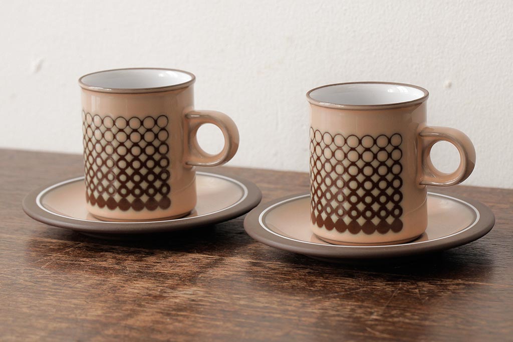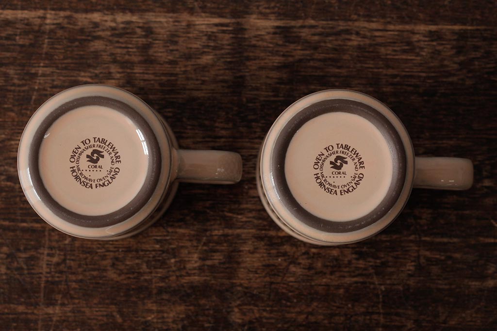 ヴィンテージ雑貨 イギリスビンテージ HORNSEA(ホーンジー) CORAL(コーラル) カップ&ソーサー2客セット(洋食器)(R-037328)