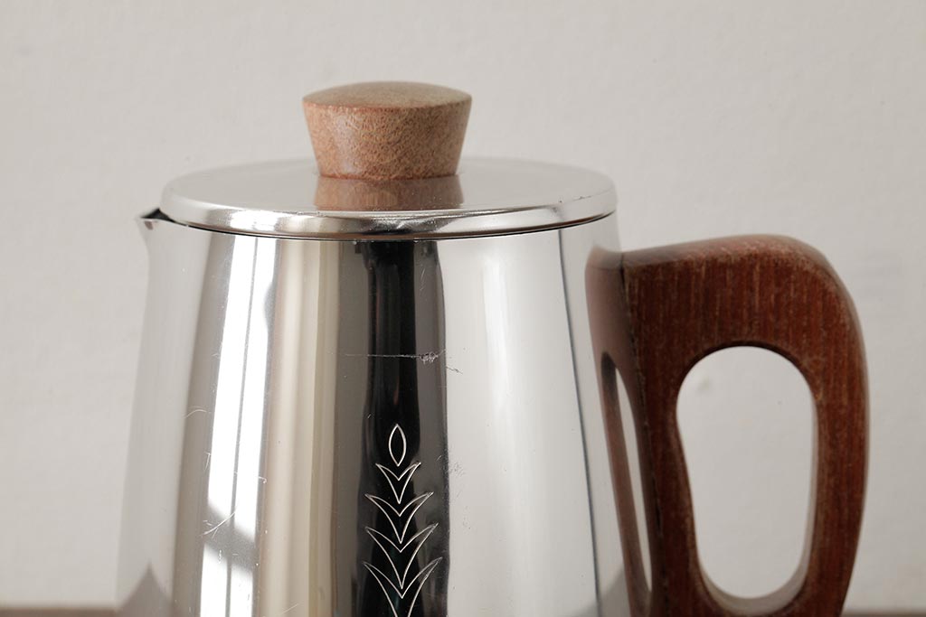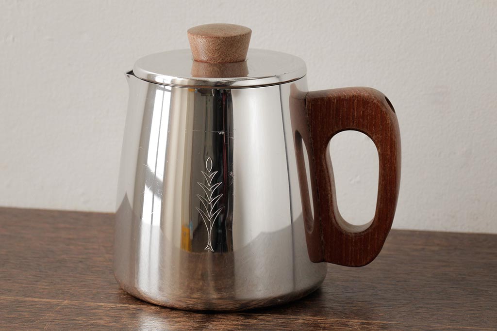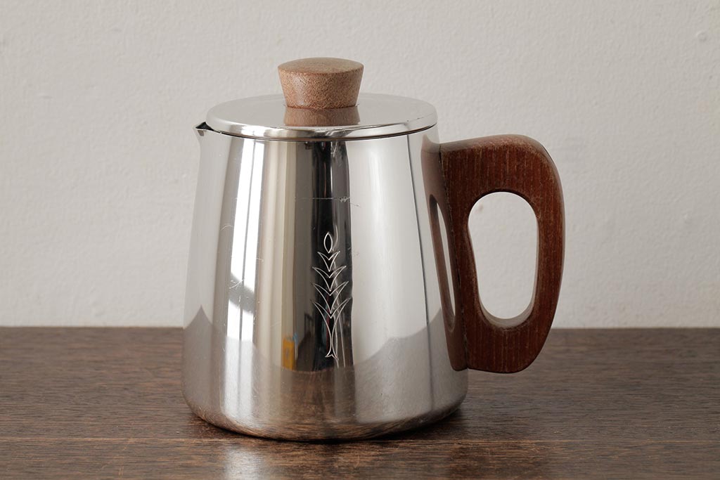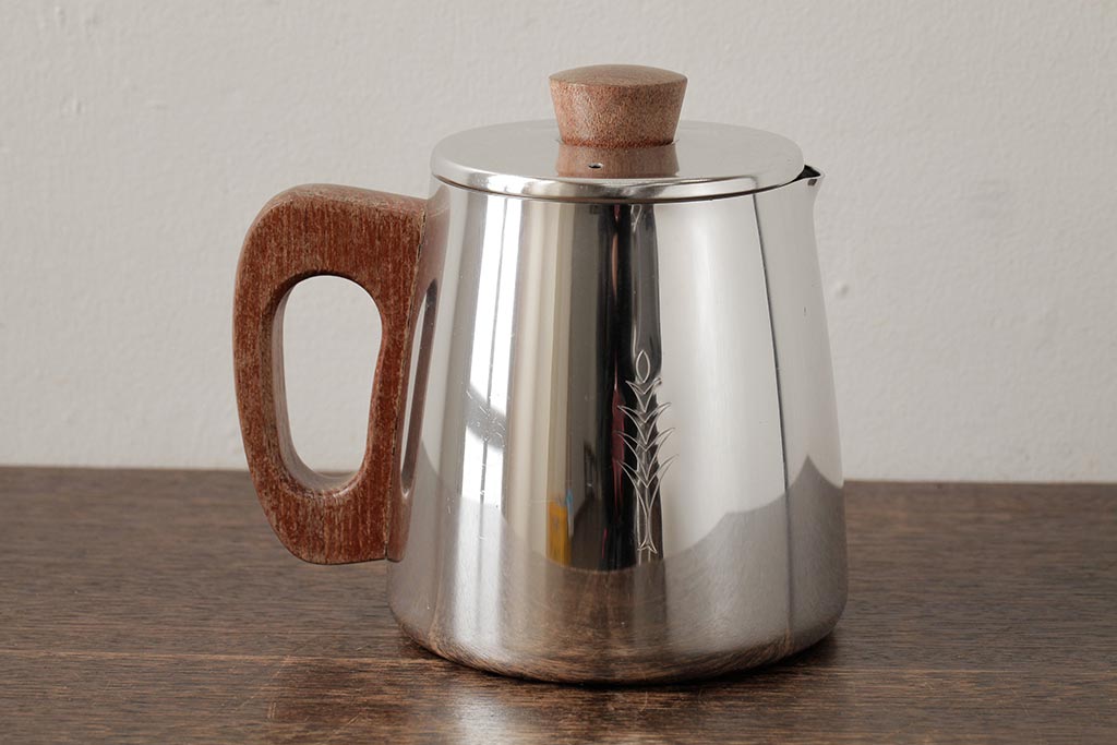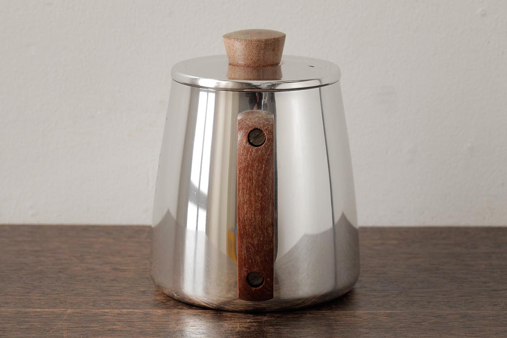 ラフジュ工房> 洋食器・キッチン用品> ポット・シュガーポット・クリーマー > ヴィンテージ雑貨 イギリス製 SONA社 木製の取っ手が可愛らしいアルミポット(ティーポット、コーヒーポット、ビンテージ)(R-037865)