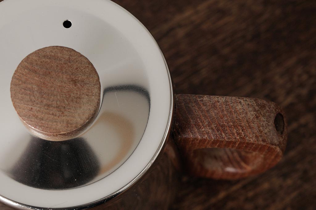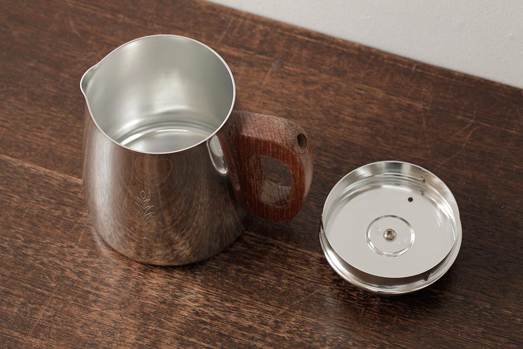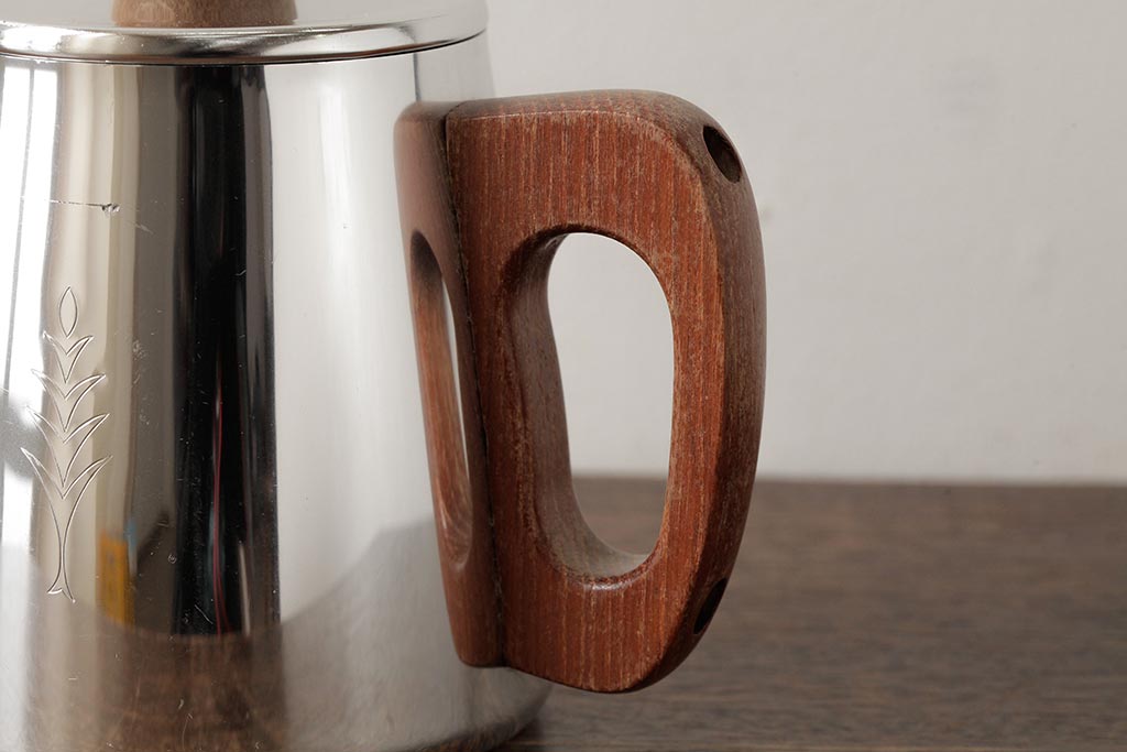 ヴィンテージ雑貨 イギリス製 SONA社 木製の取っ手が可愛らしいアルミポット(ティーポット、コーヒーポット、ビンテージ)(R-037865)