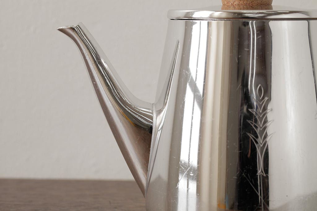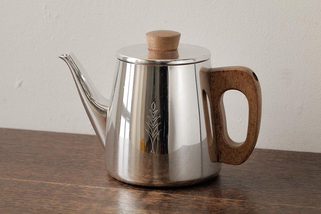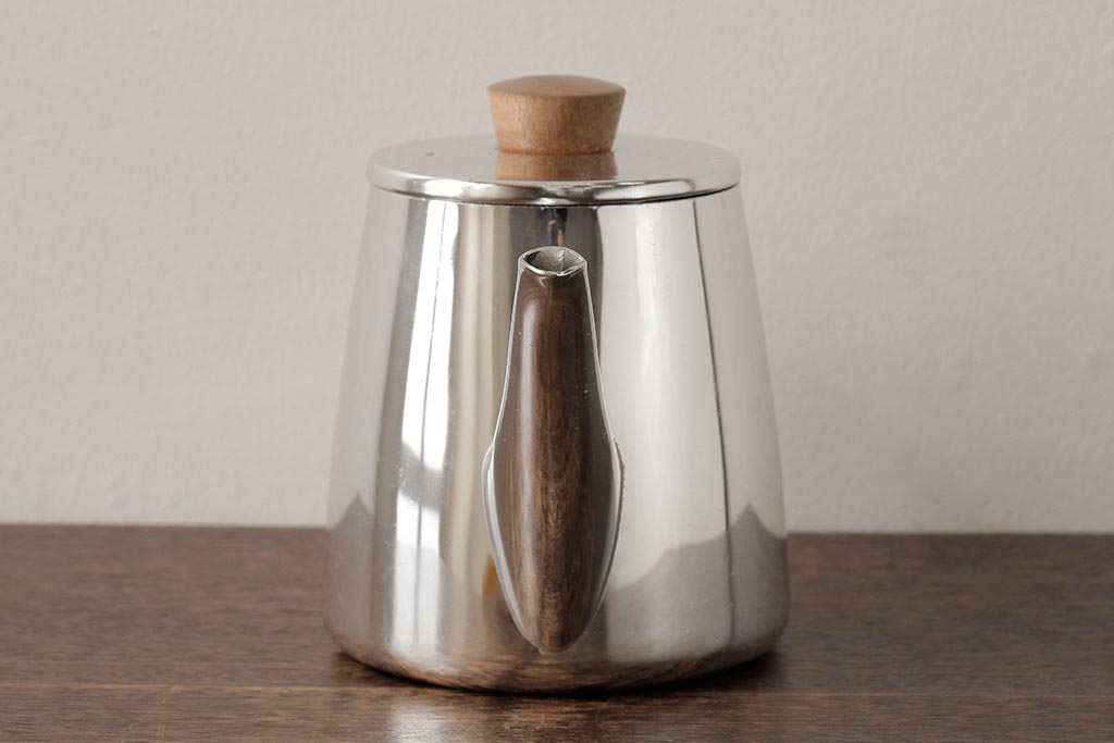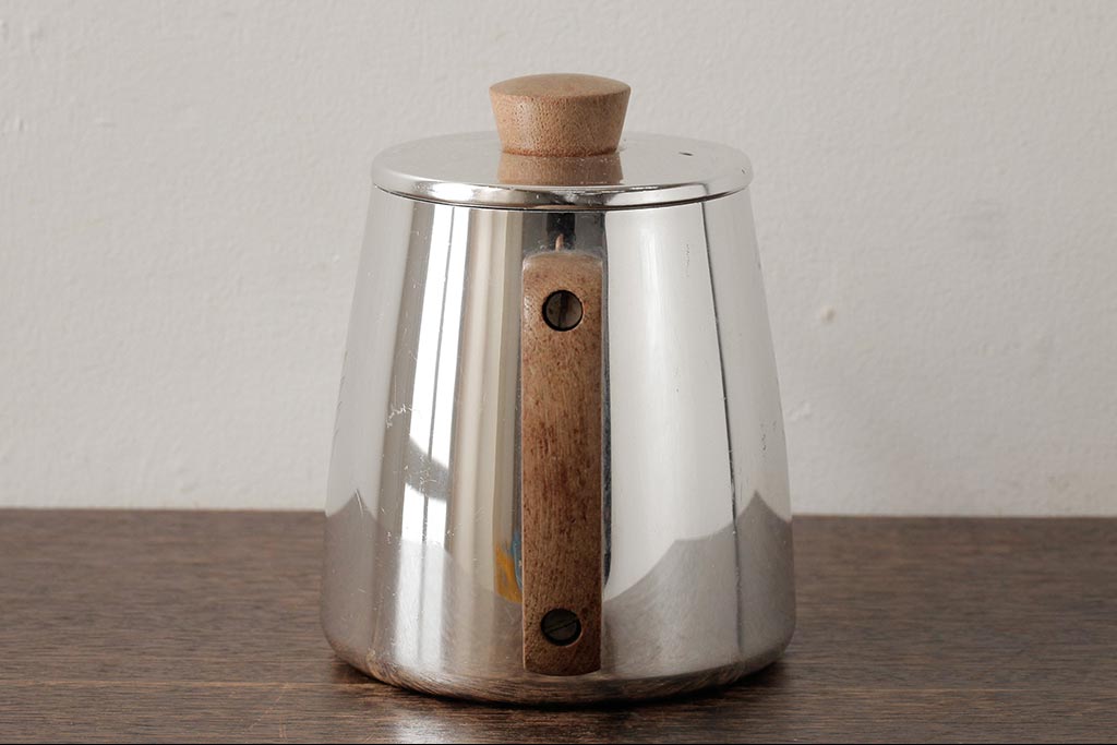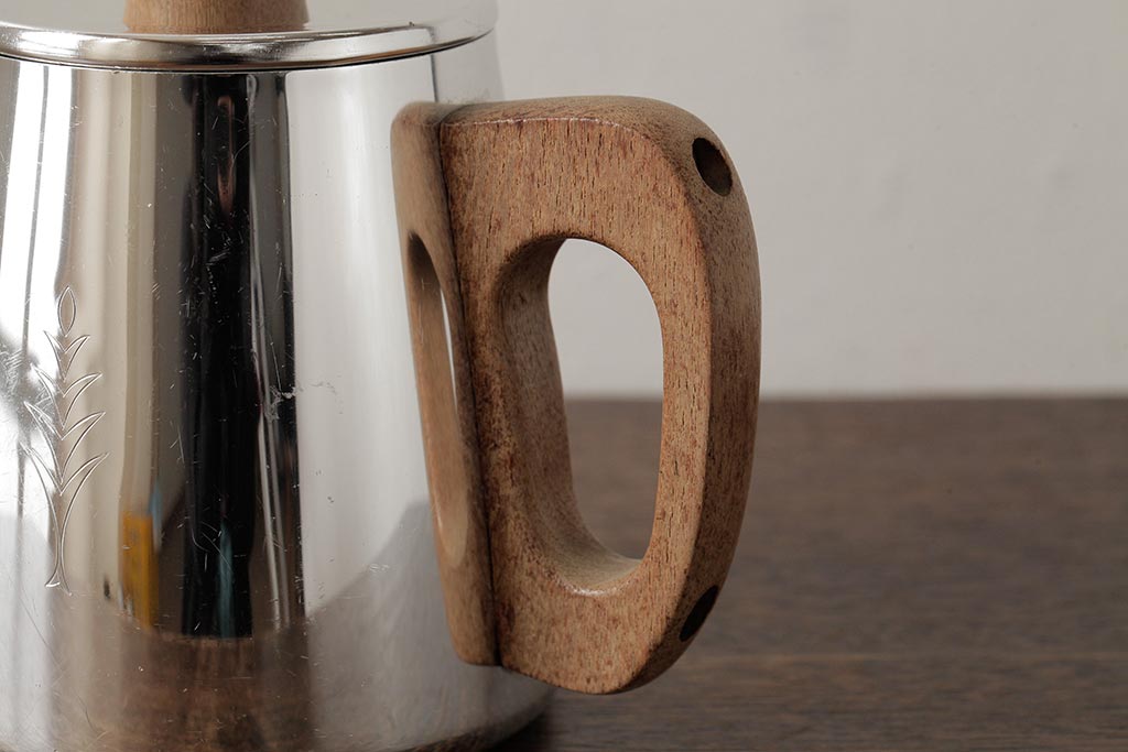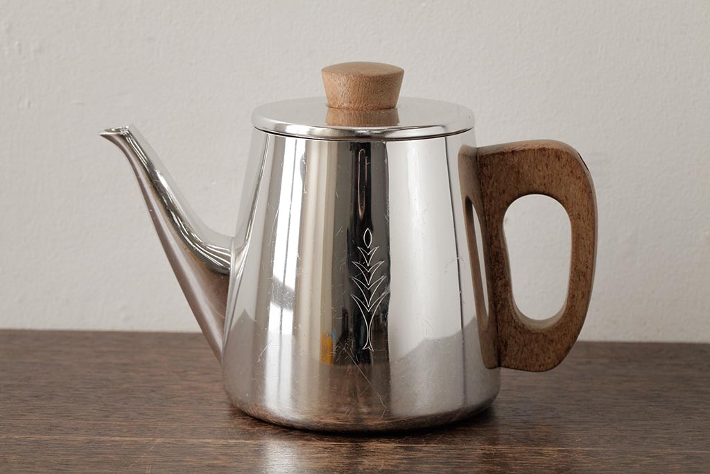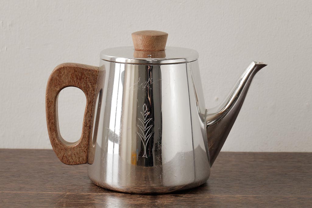 ラフジュ工房> 洋食器・キッチン用品> ポット・シュガーポット・クリーマー > ヴィンテージ雑貨 イギリス製 SONA社 木製の取っ手が可愛らしいアルミティーポット(コーヒーポット、ビンテージ)(R-037866)