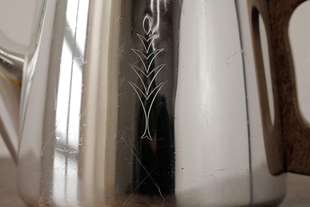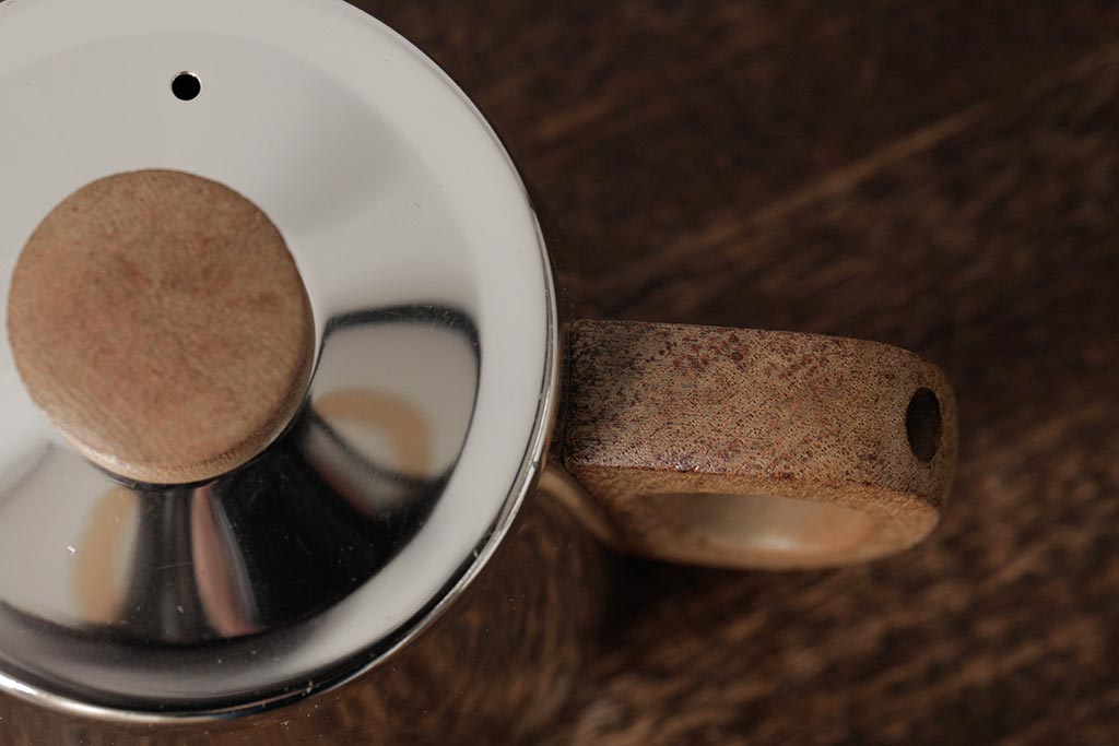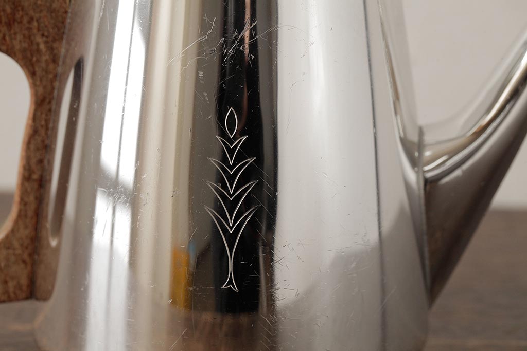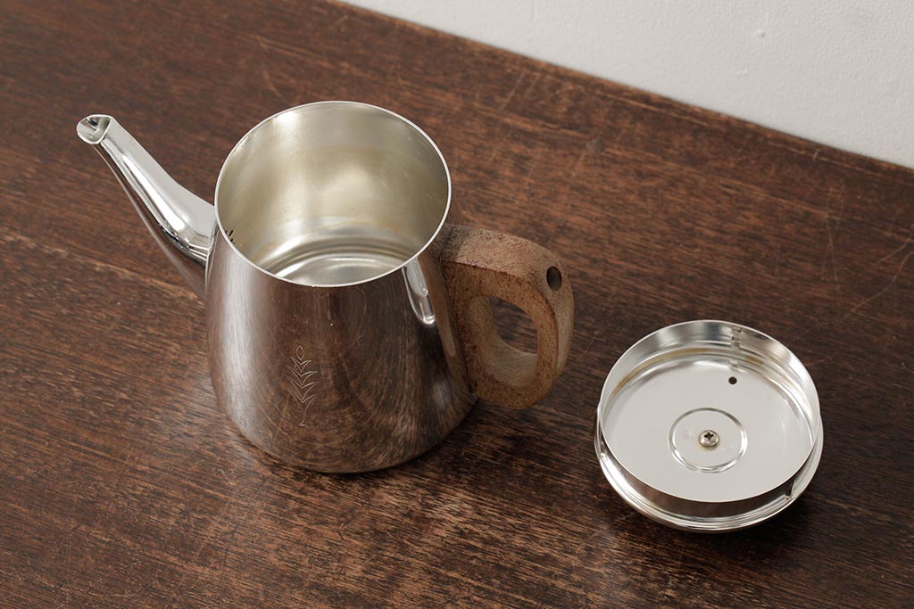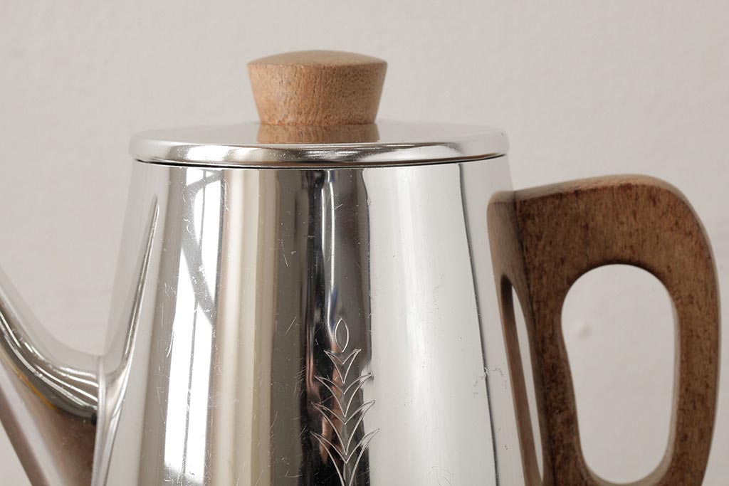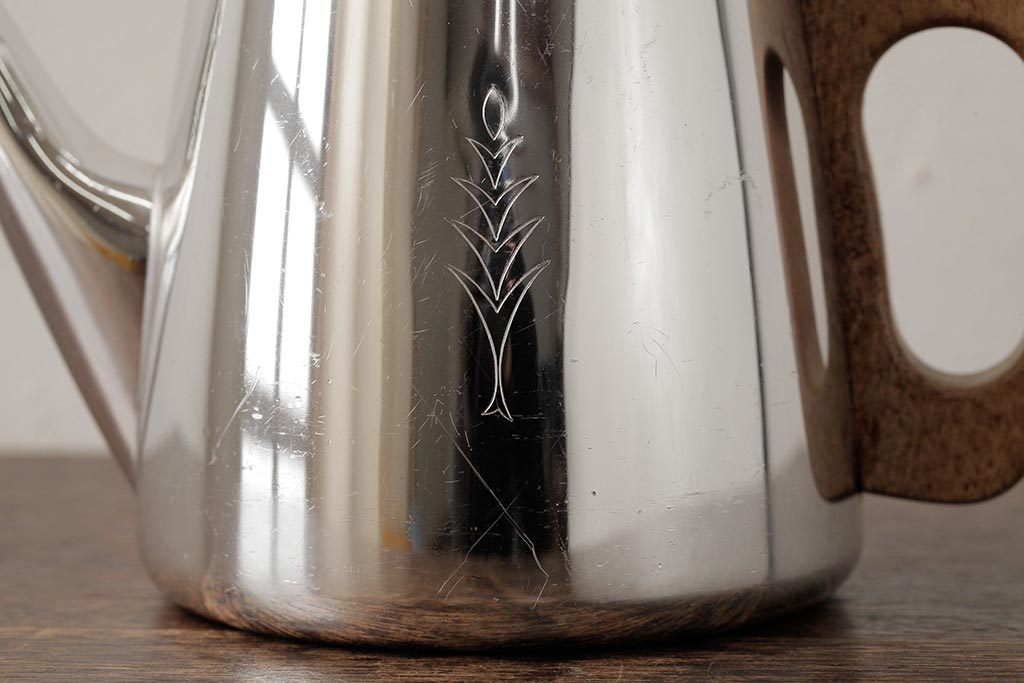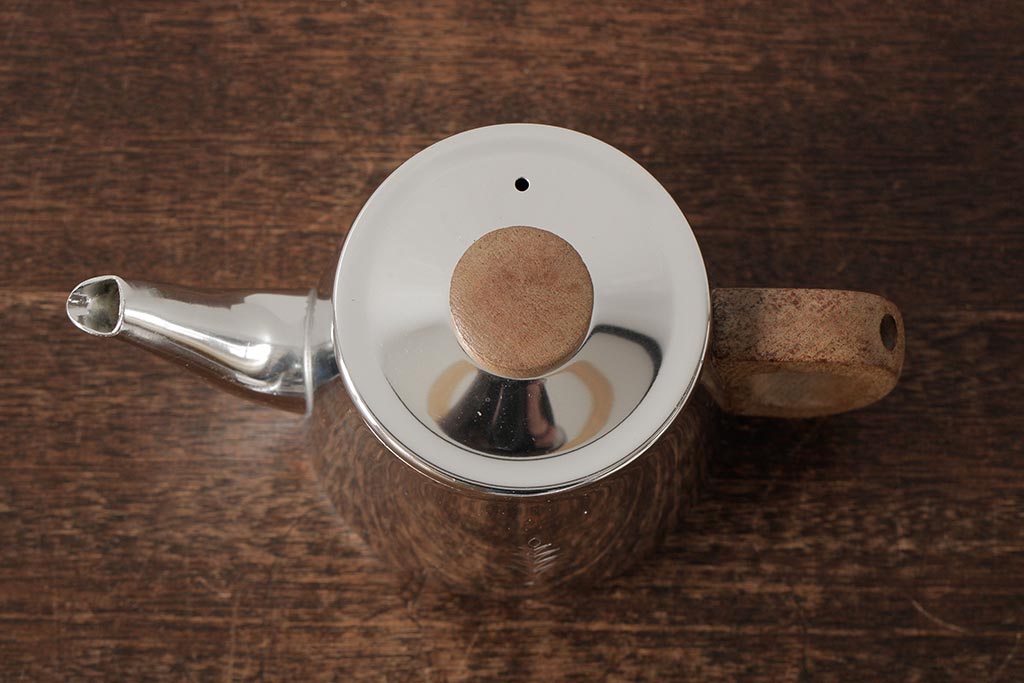 ラフジュ工房> 洋食器・キッチン用品> ポット・シュガーポット・クリーマー > ヴィンテージ雑貨 イギリス製 SONA社 木製の取っ手が可愛らしいアルミティーポット(コーヒーポット、ビンテージ)(R-037866)