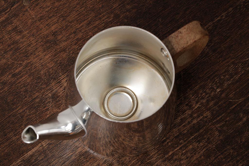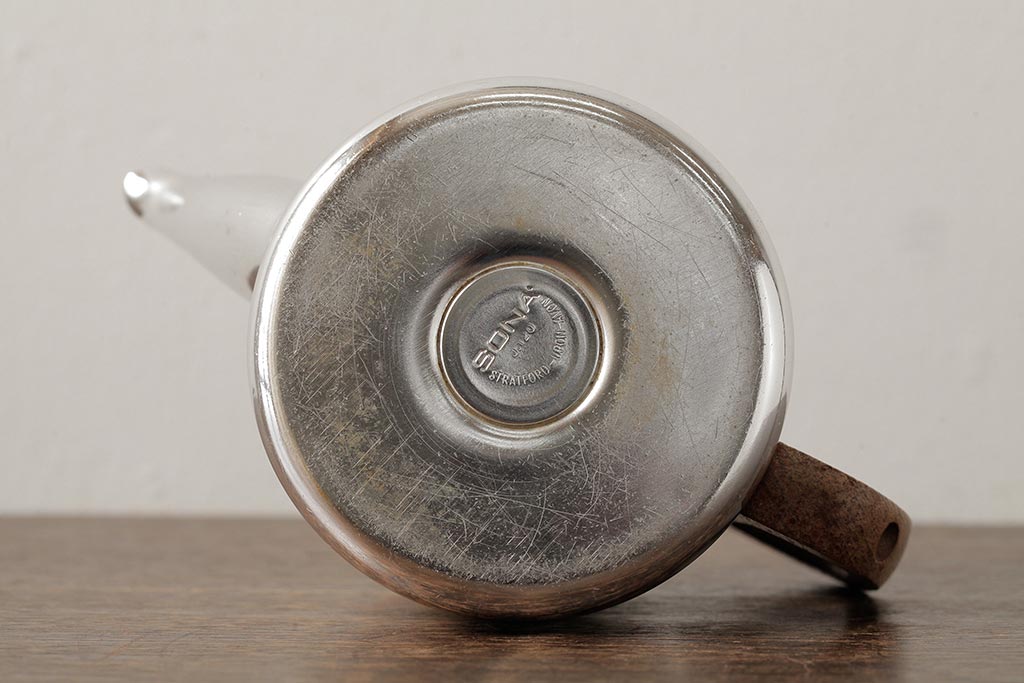 ヴィンテージ雑貨 イギリス製 SONA社 木製の取っ手が可愛らしいアルミティーポット(コーヒーポット、ビンテージ)(R-037866)