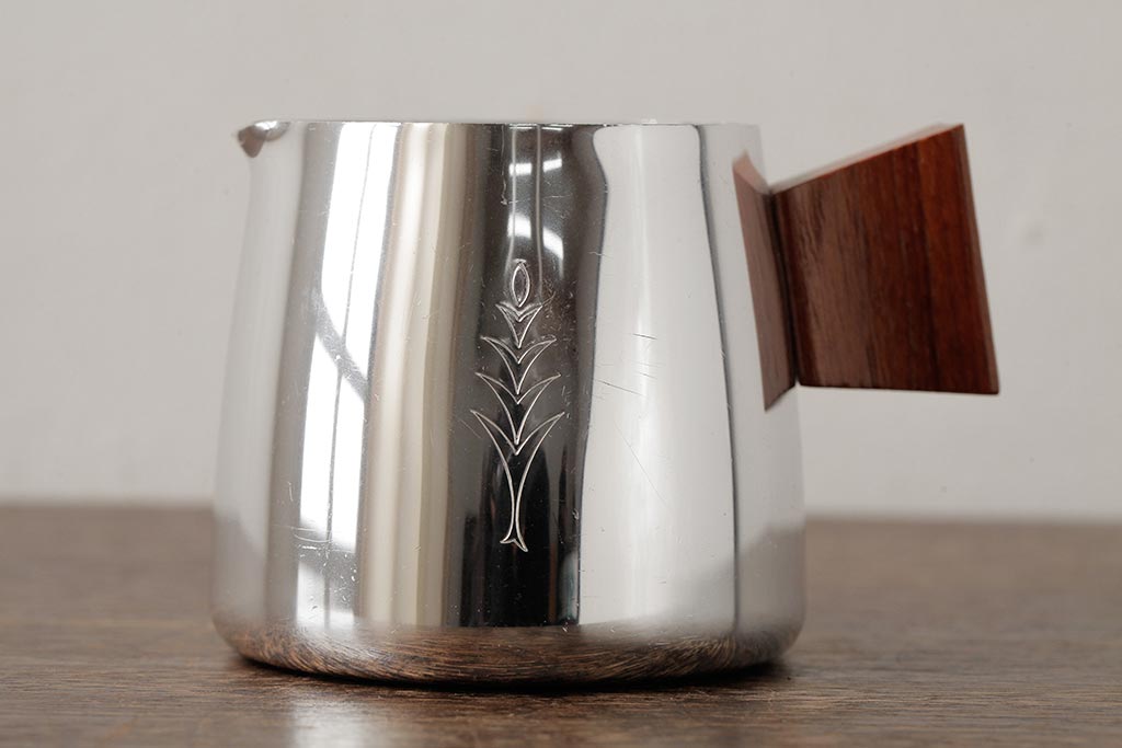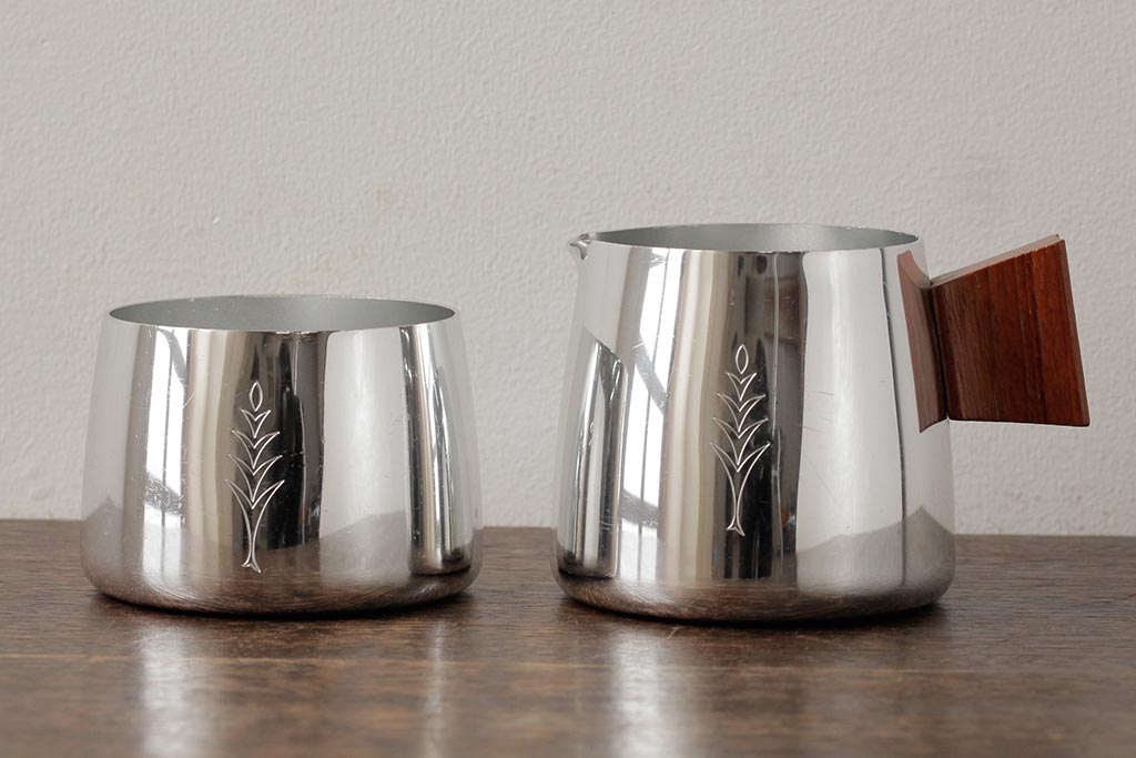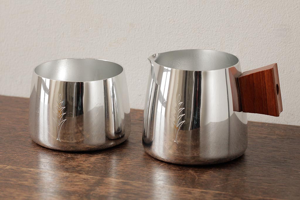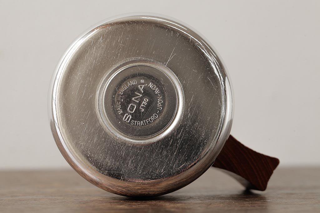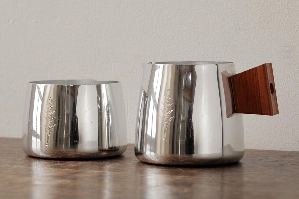 ヴィンテージ雑貨 イギリス製 SONA社 木製の取っ手が可愛らしいアルミティーセット(シュガーポット、ミルクポット、ビンテージ)(R-037868)