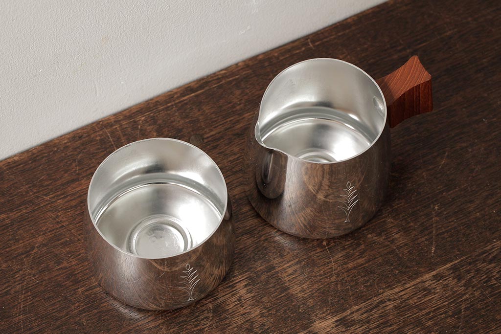 ラフジュ工房> 洋食器・キッチン用品> ティーセット > ヴィンテージ雑貨 イギリス製 SONA社 木製の取っ手が可愛らしいアルミティーセット(シュガーポット、ミルクポット、ビンテージ)(R-037868)