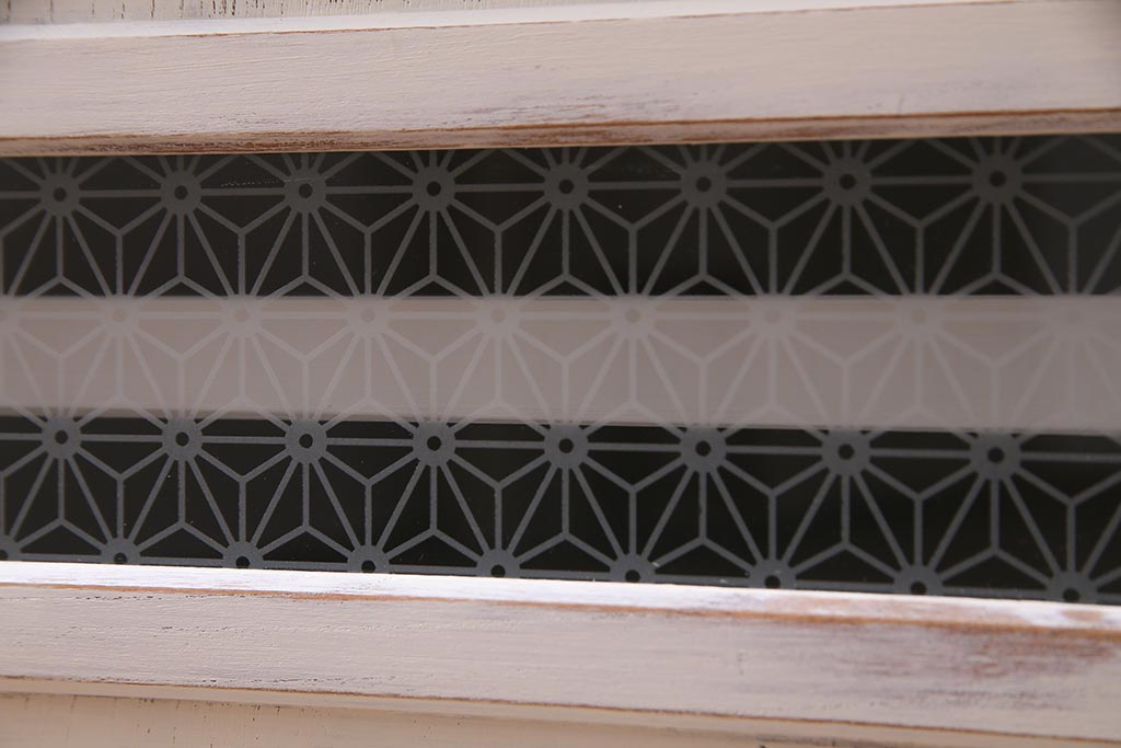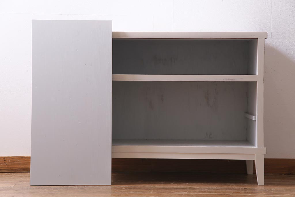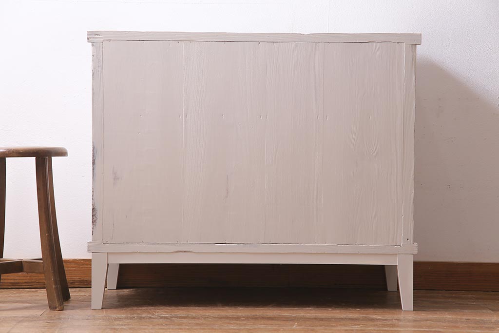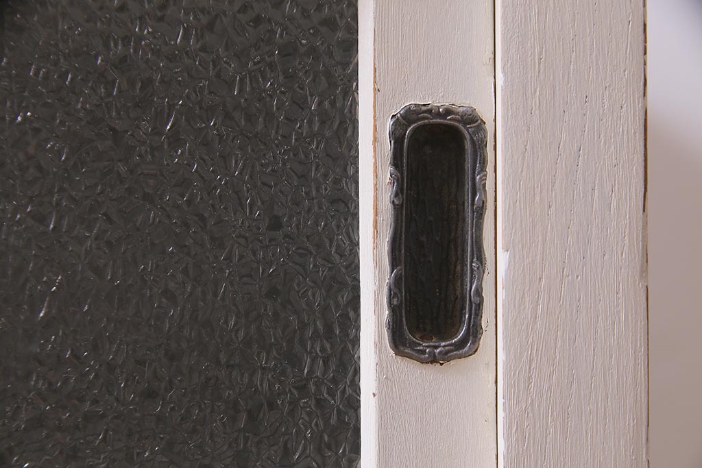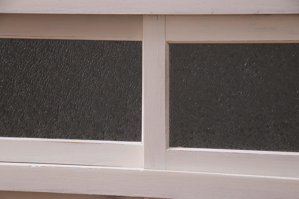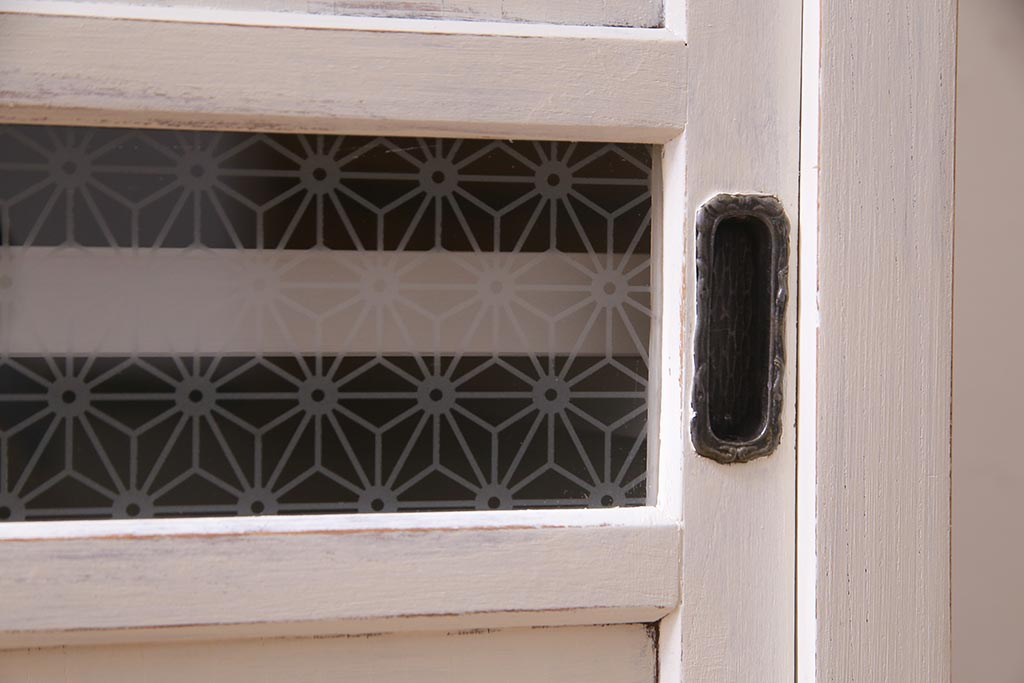 キャビネット・戸棚 > アンティーク家具 昭和初期 脚付きリメイク ダイヤガラス・当店オリジナルガラス シャビーな雰囲気のペイントがお洒落なキャビネット(収納棚、戸棚、リビングボード)(R-037917)