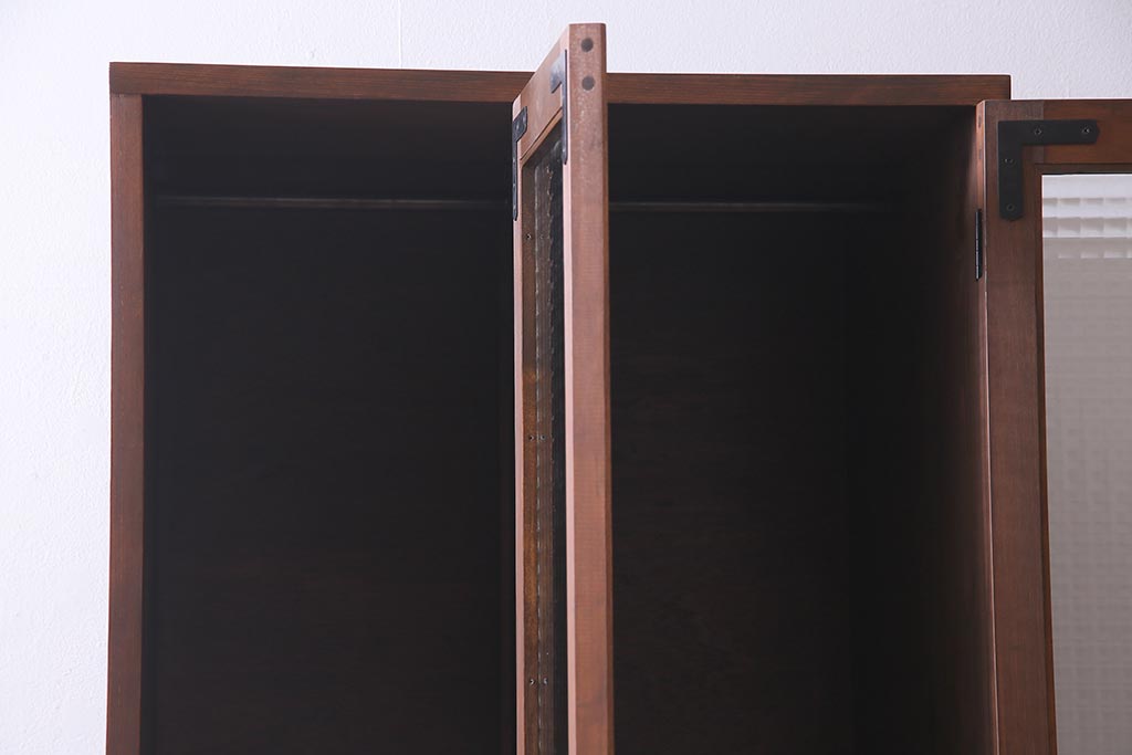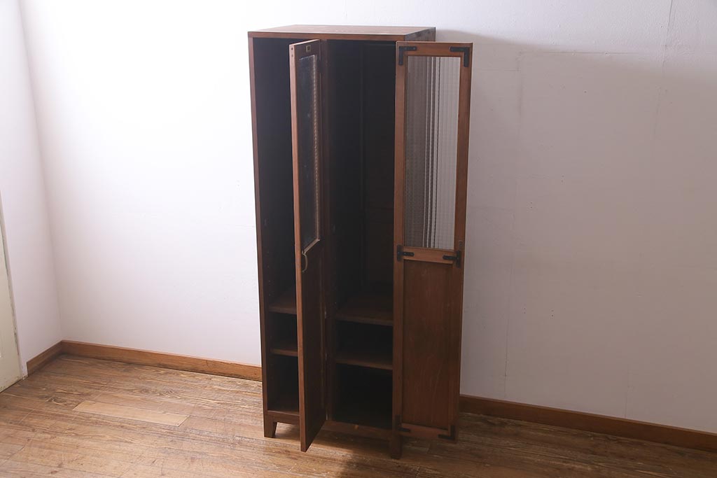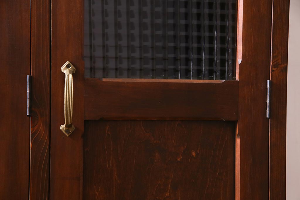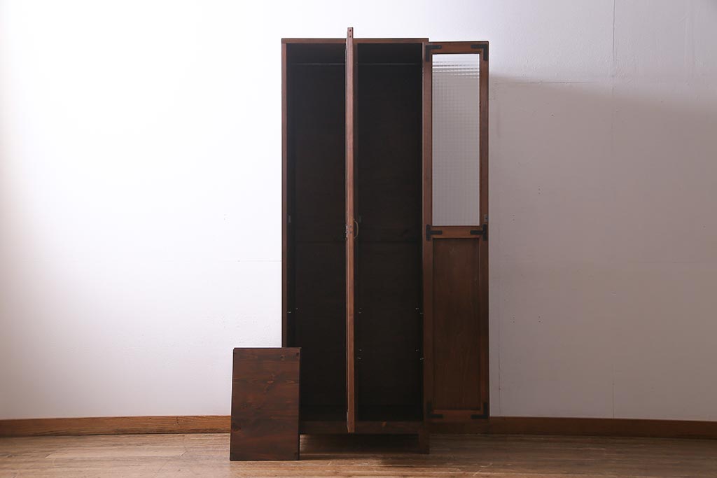ラフジュ工房オリジナル ヒノキ無垢材・ヒバ材 チェッカーガラスがアクセントの2人用ロッカー(ワードローブ)(R-037922)