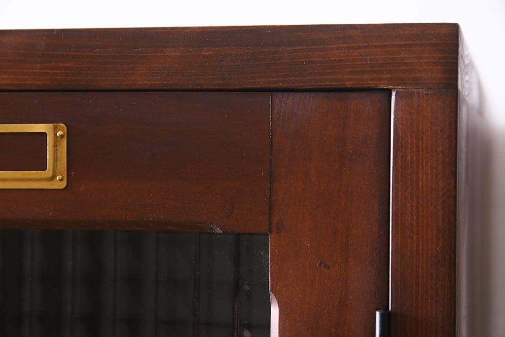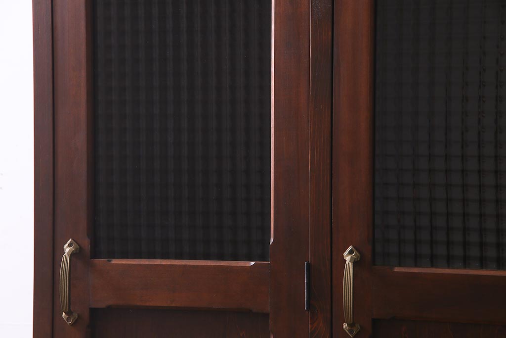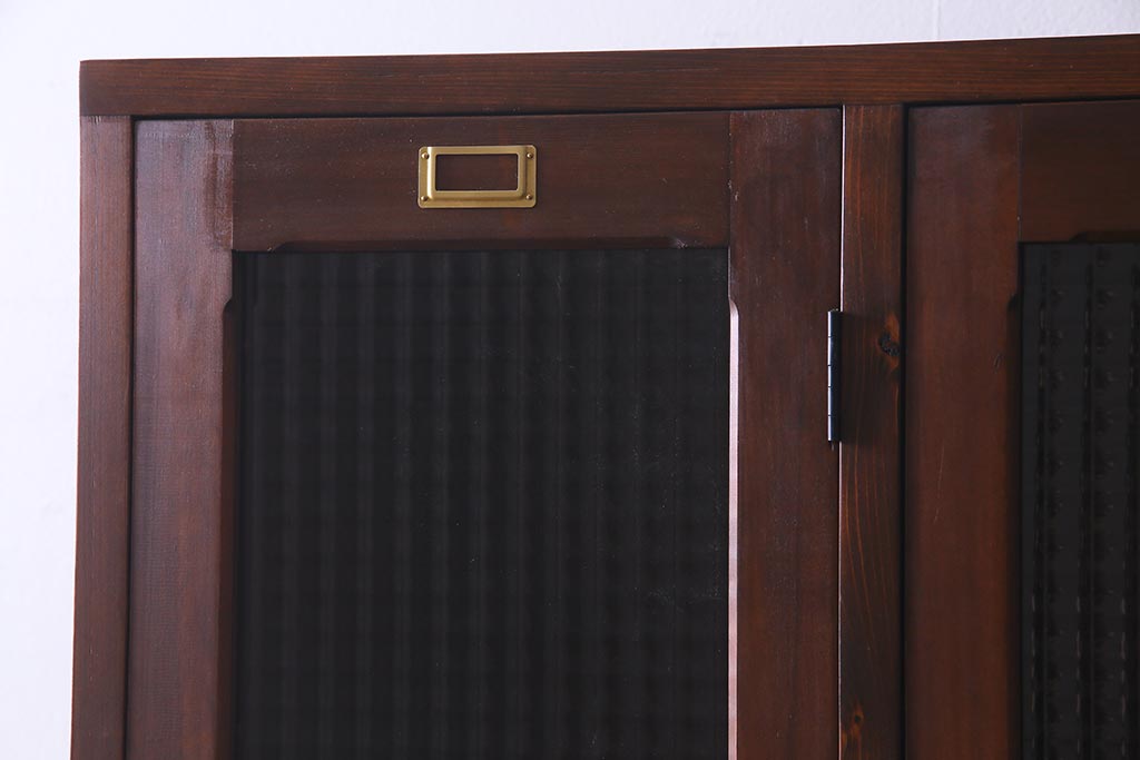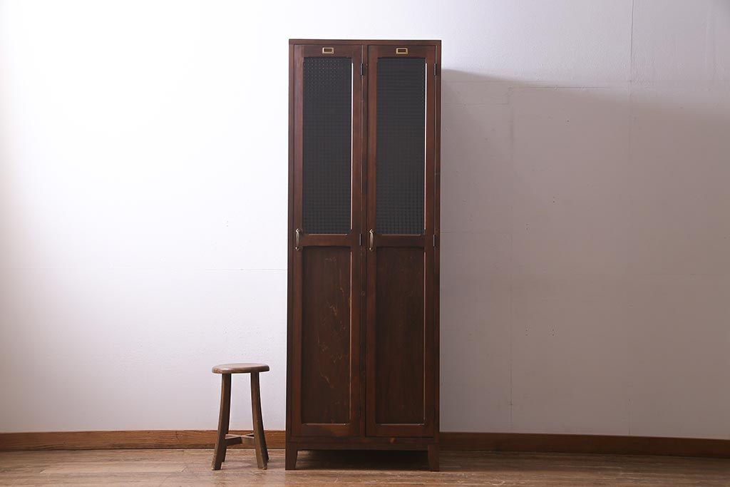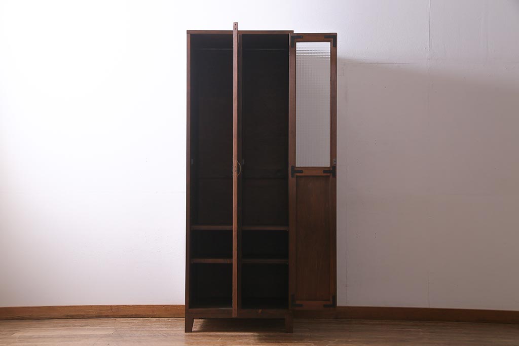 ラフジュ工房オリジナル ヒノキ無垢材・ヒバ材 チェッカーガラスがアクセントの2人用ロッカー(ワードローブ)(R-037922)