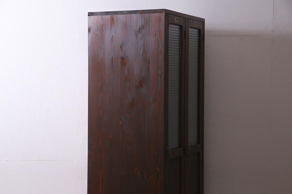 ラフジュ工房オリジナル ヒノキ無垢材・ヒバ材 チェッカーガラスがアクセントの2人用ロッカー(ワードローブ)(R-037922)です。