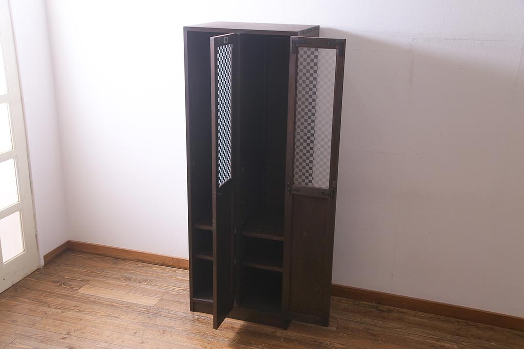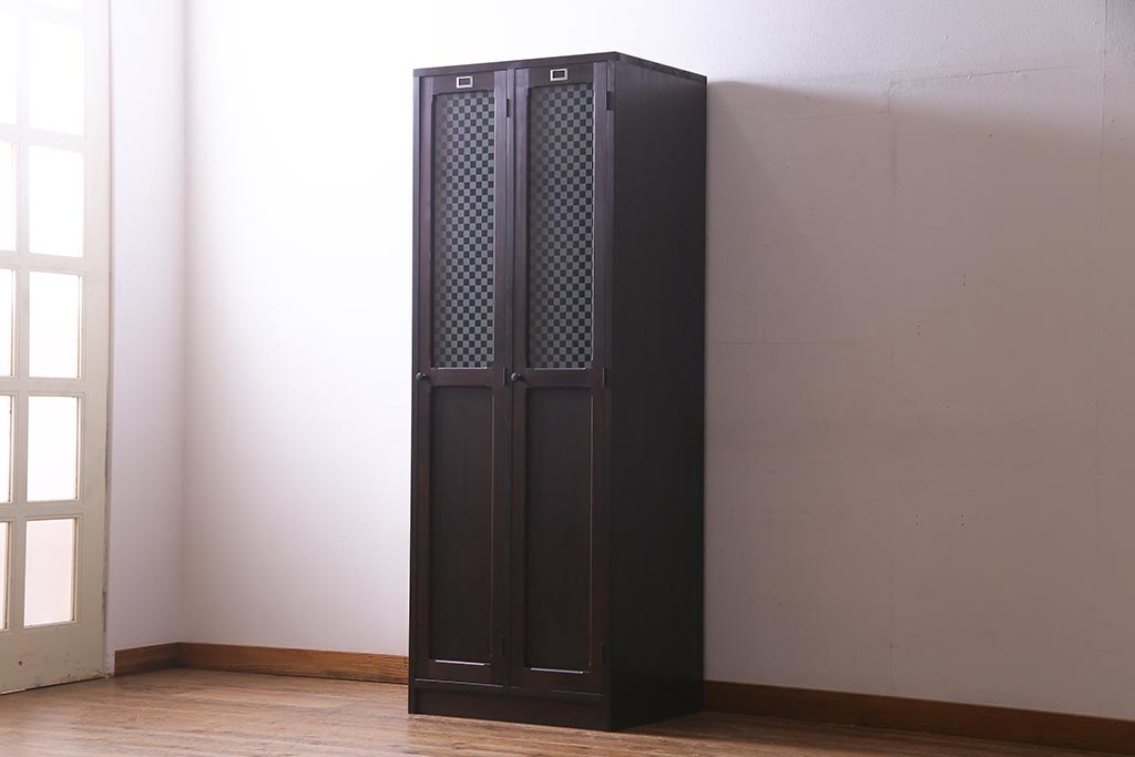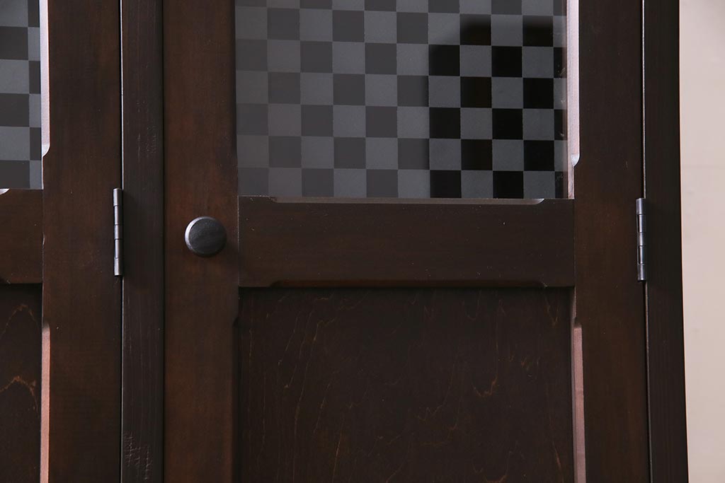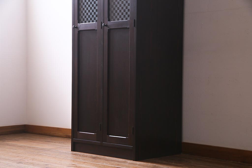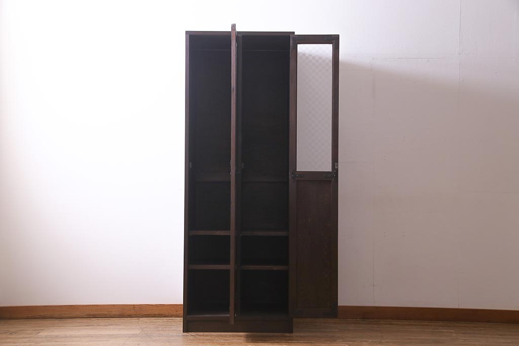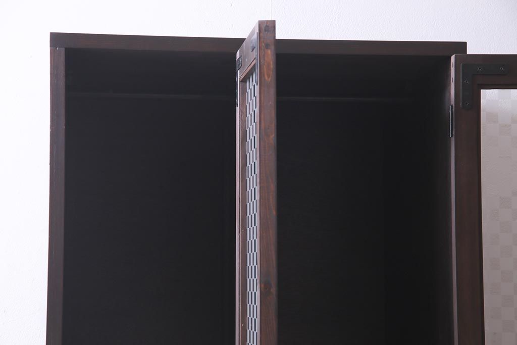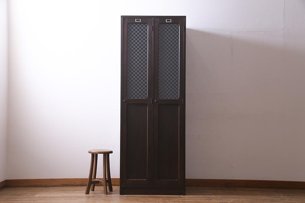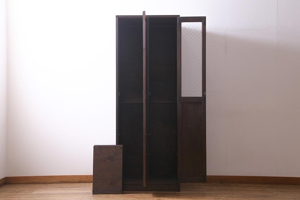 ラフジュ工房オリジナル ヒノキ無垢材・ヒバ材 当店オリジナルガラス レトロな佇まいが魅力的な2人用ロッカー(ワードローブ)(R-037923)