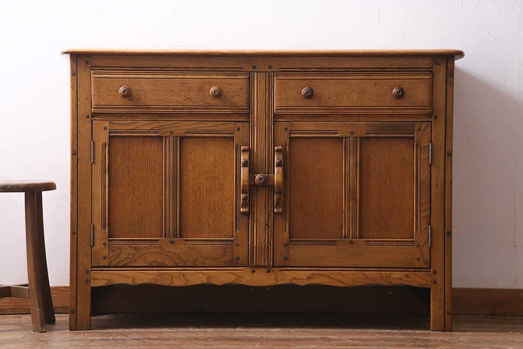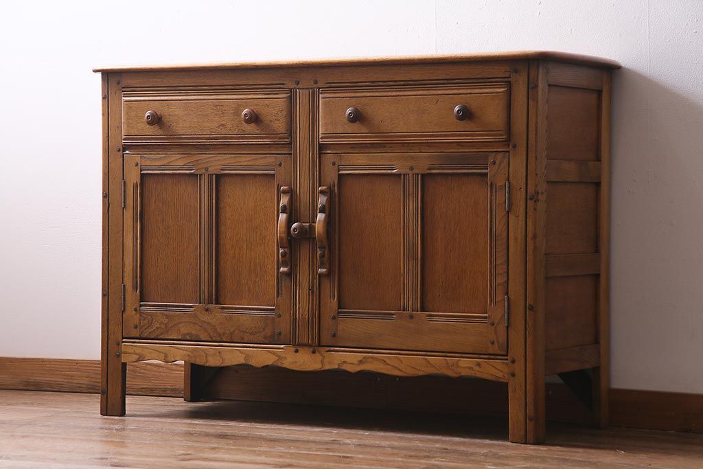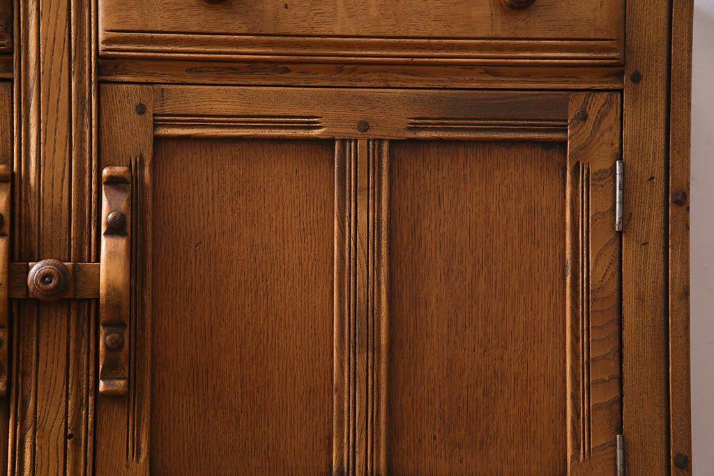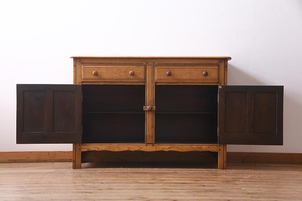キャビネット・戸棚> サイドキャビネット > ヴィンテージ家具 イギリスビンテージ ERCOL(アーコール) old colonial(オールドコロニアル) 彫りの装飾が目を引くクラシカルなサイドボード(収納棚、キャビネット)(R-037901)