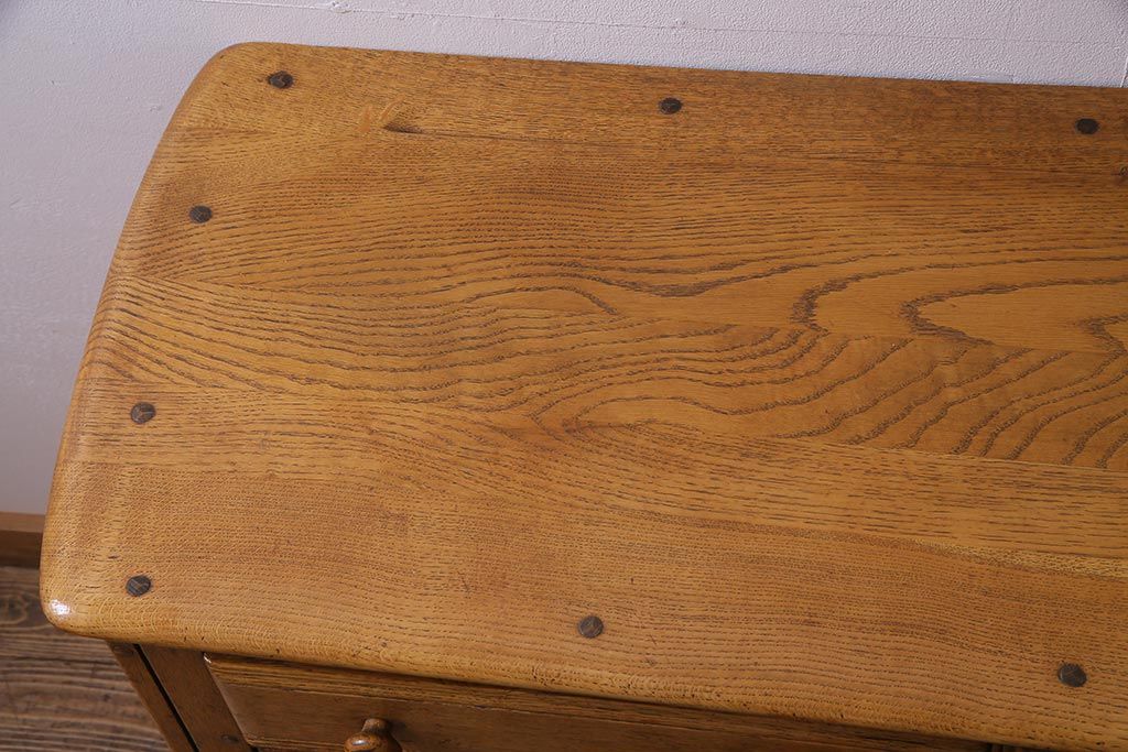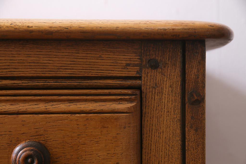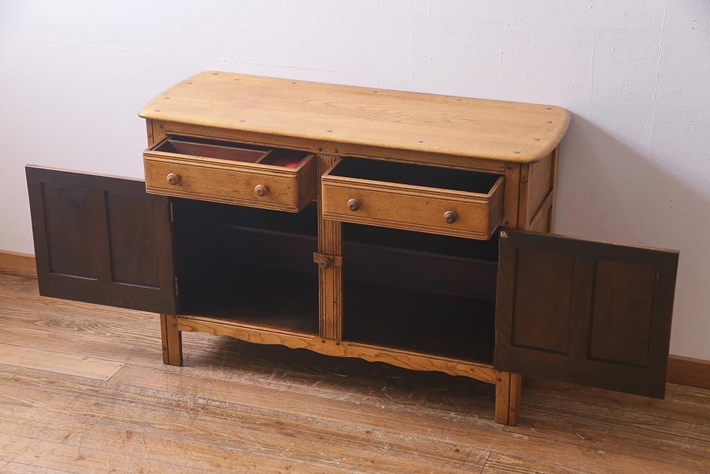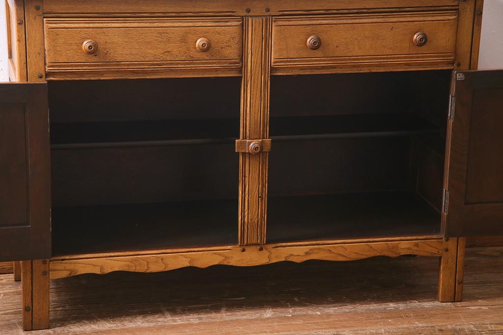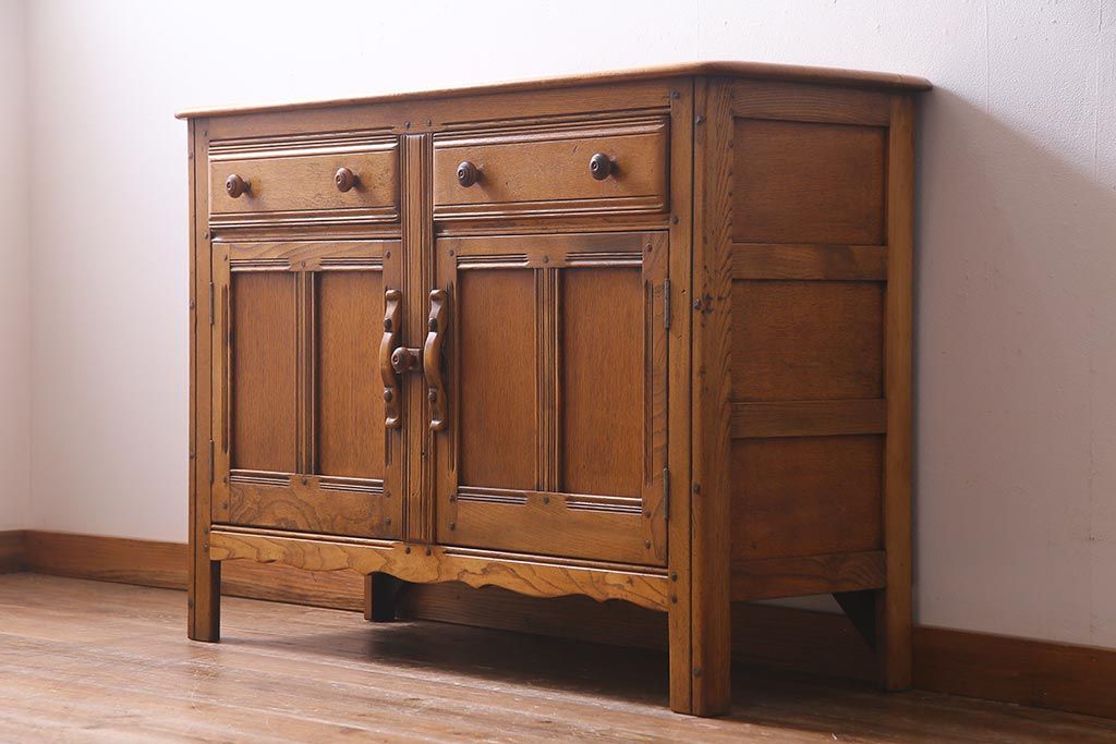 キャビネット・戸棚> サイドキャビネット > ヴィンテージ家具 イギリスビンテージ ERCOL(アーコール) old colonial(オールドコロニアル) 彫りの装飾が目を引くクラシカルなサイドボード(収納棚、キャビネット)(R-037901)