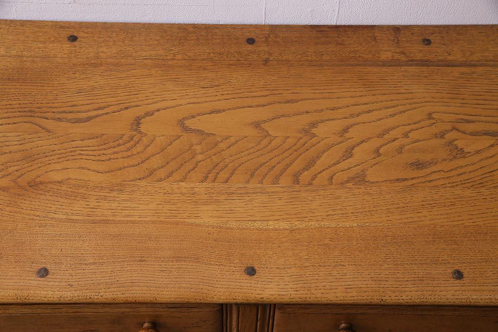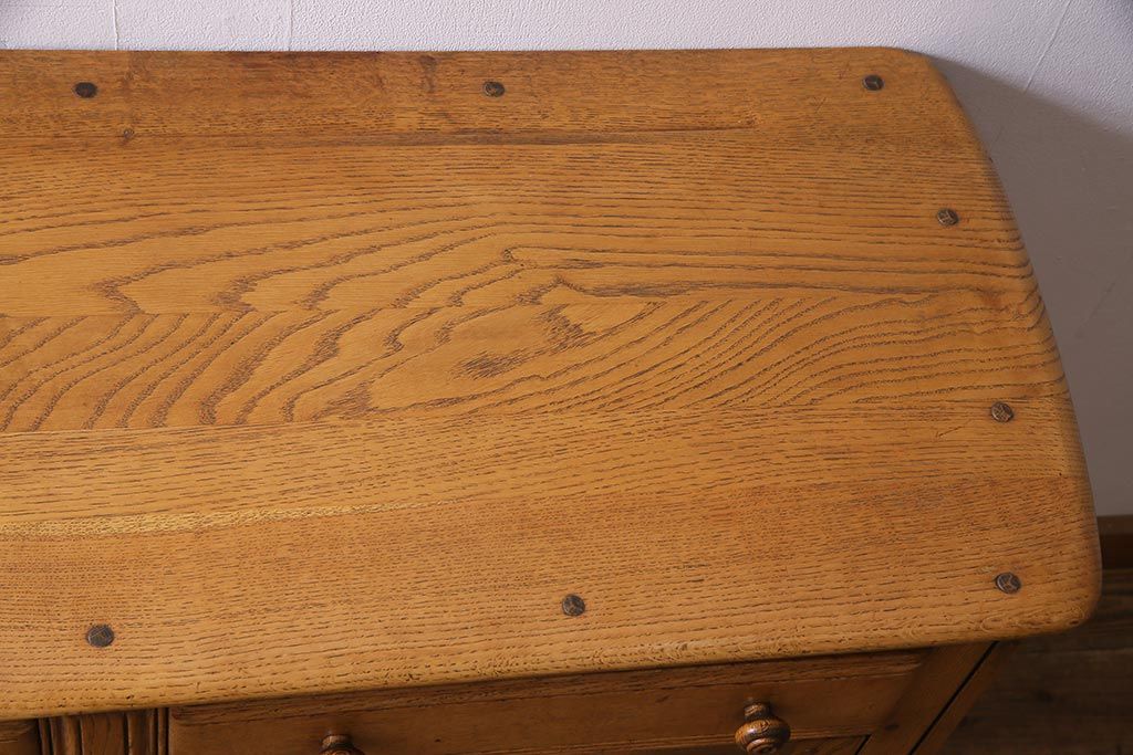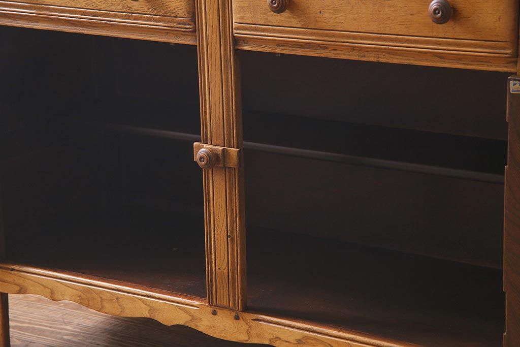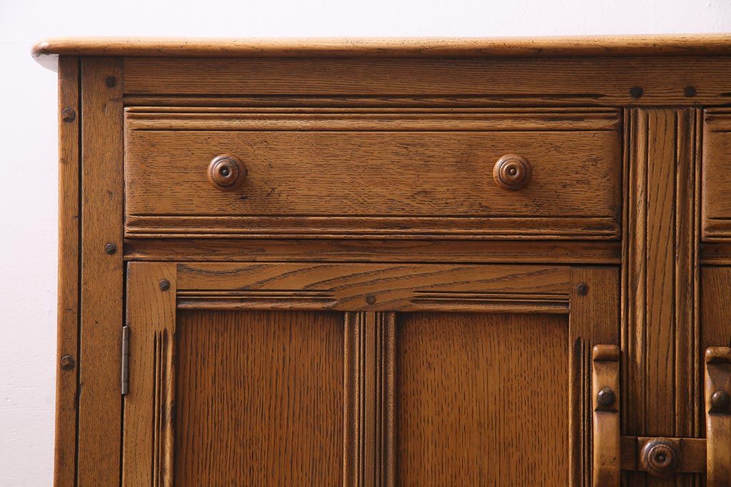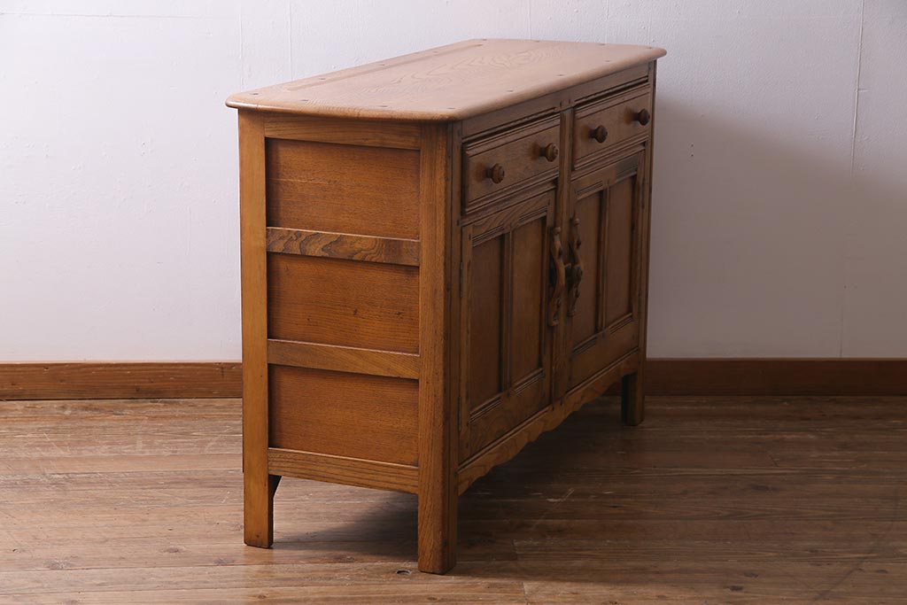 ヴィンテージ家具 イギリスビンテージ ERCOL(アーコール) old colonial(オールドコロニアル) 彫りの装飾が目を引くクラシカルなサイドボード(収納棚、キャビネット)(R-037901)