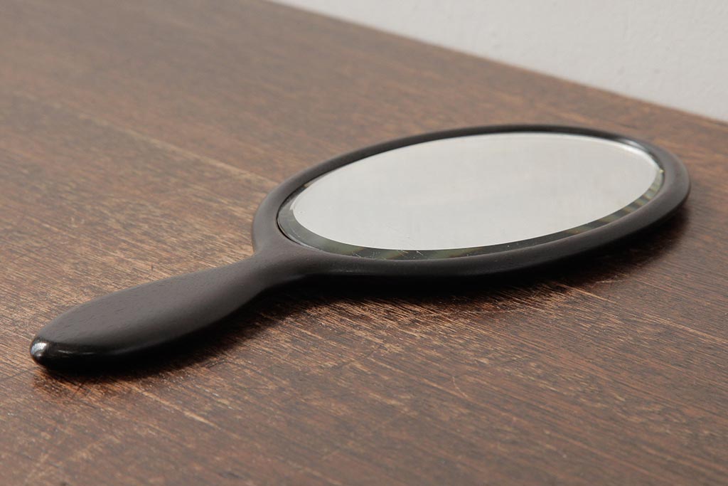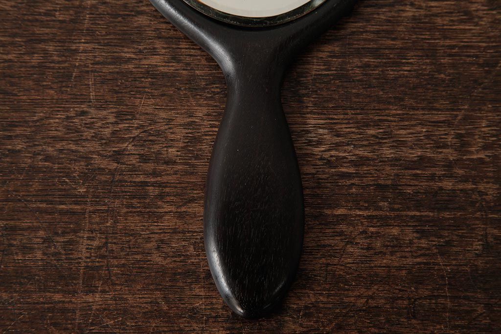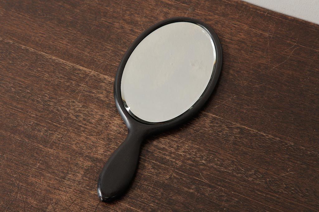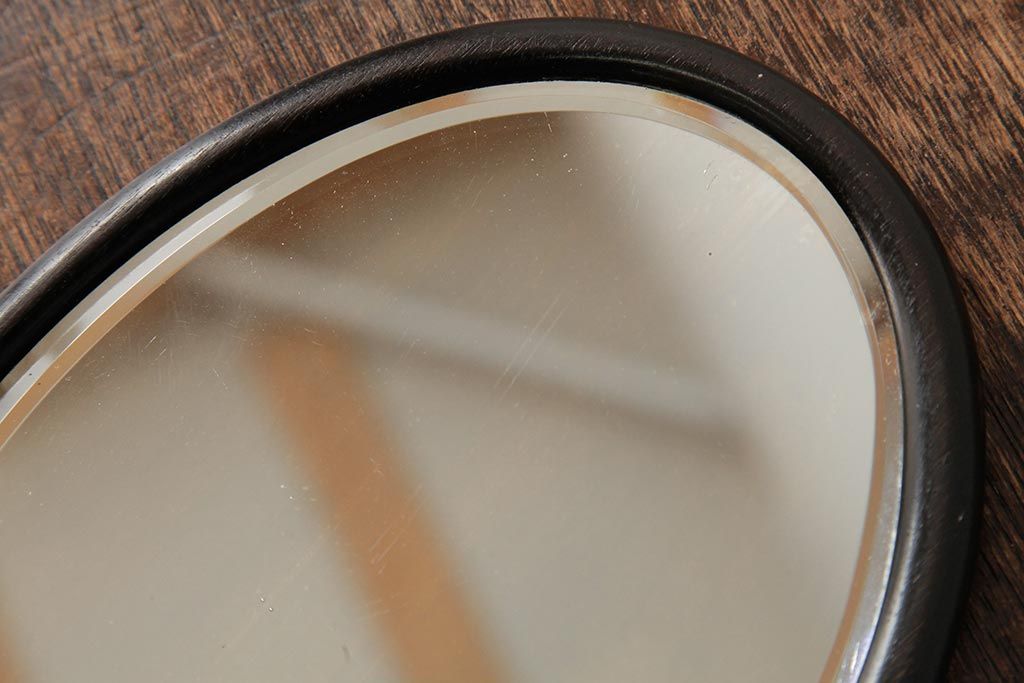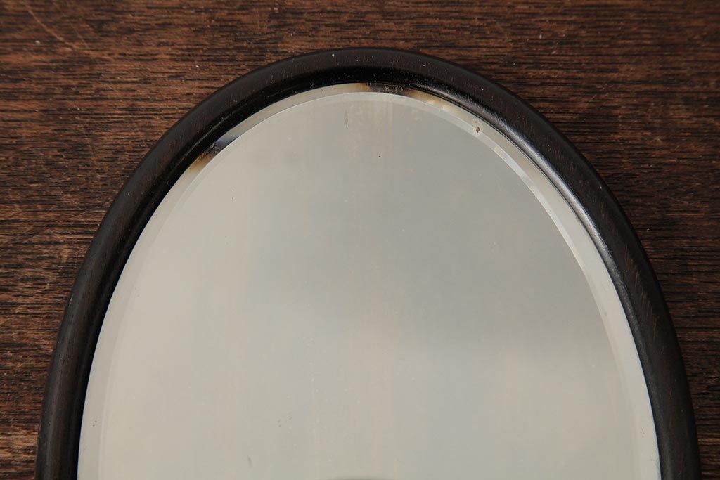アンティーク雑貨 昭和初期 黒檀材 上品な大人の雰囲気漂う手鏡(ハンドミラー)(R-037859)