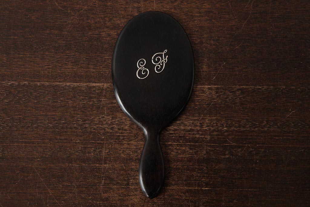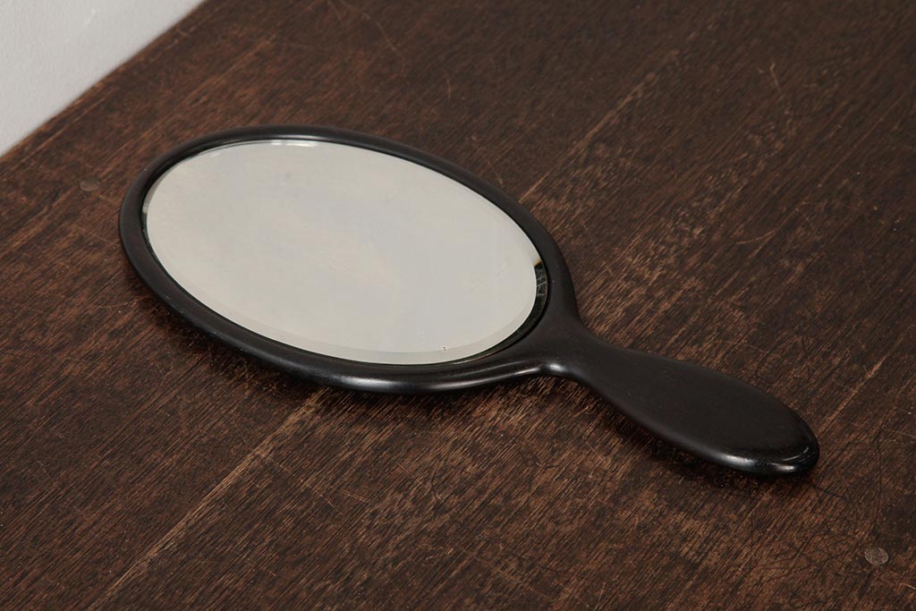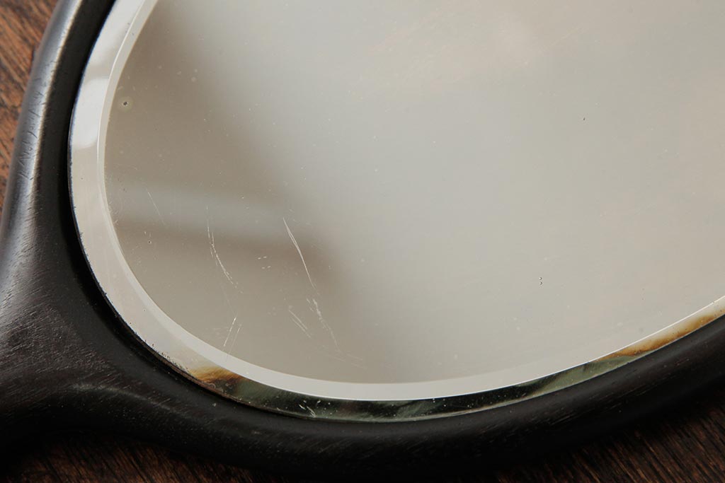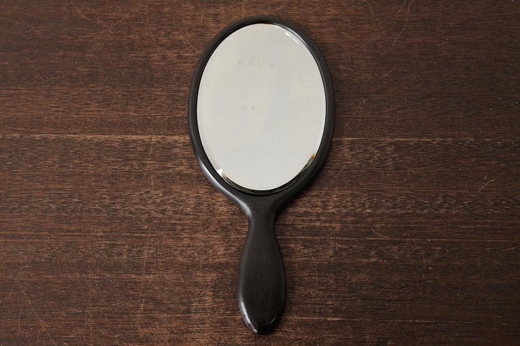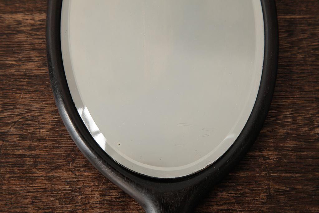 アンティーク雑貨 昭和初期 黒檀材 上品な大人の雰囲気漂う手鏡(ハンドミラー)(R-037859)