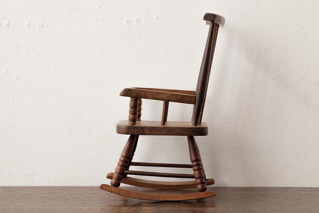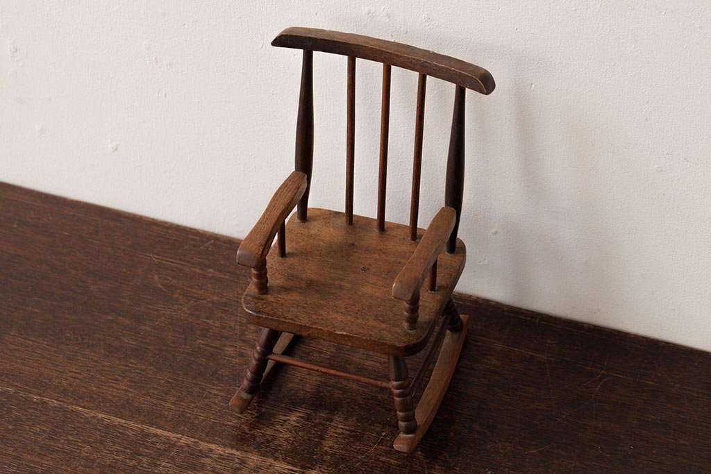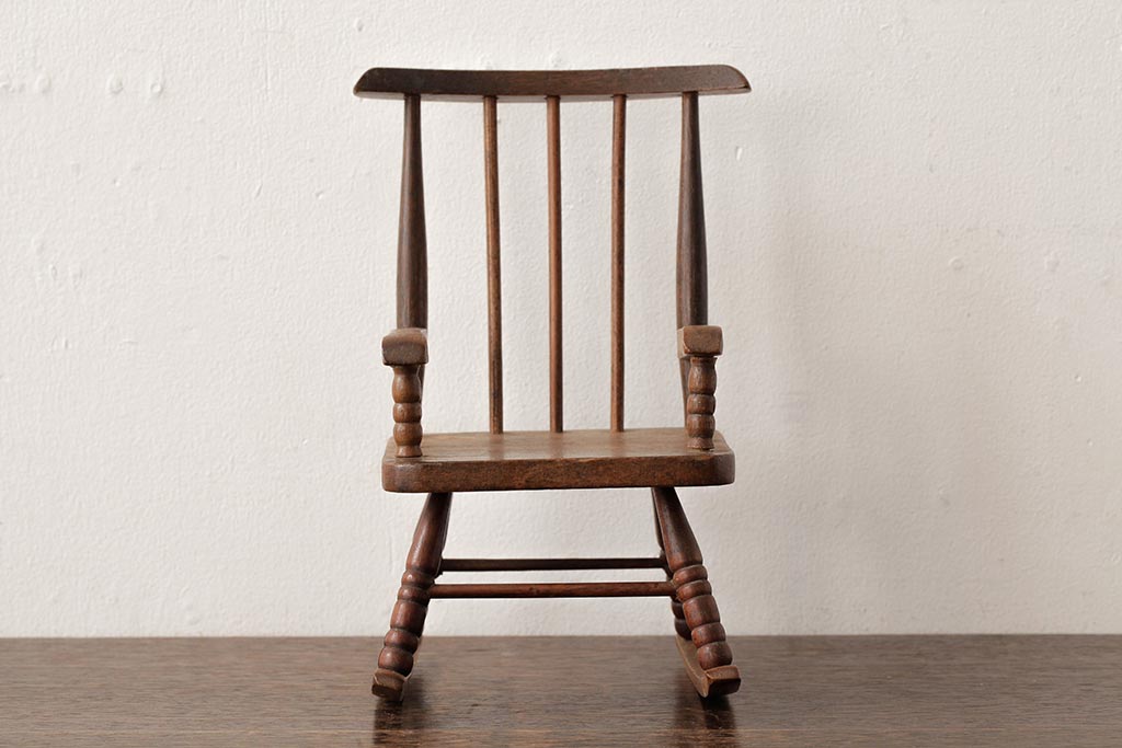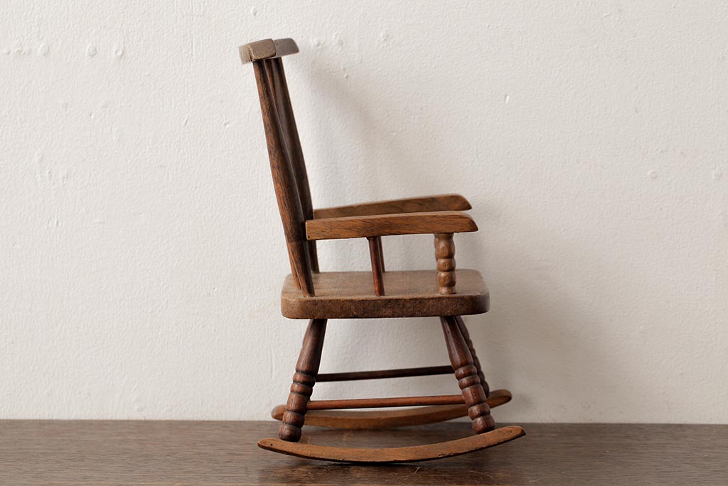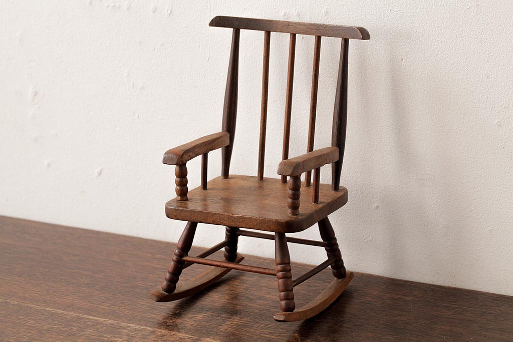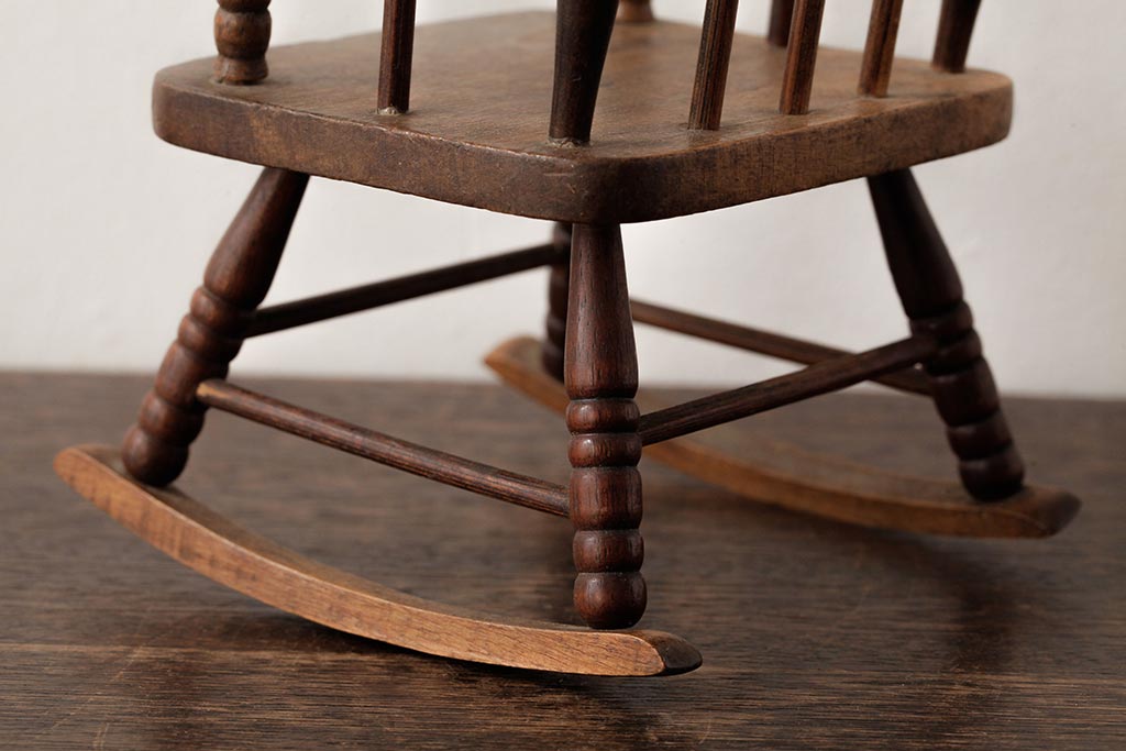 アンティーク雑貨 イギリス 人形用 ブナ材 ドールチェア ロッキングチェア(ディスプレイ雑貨)(R-037864)