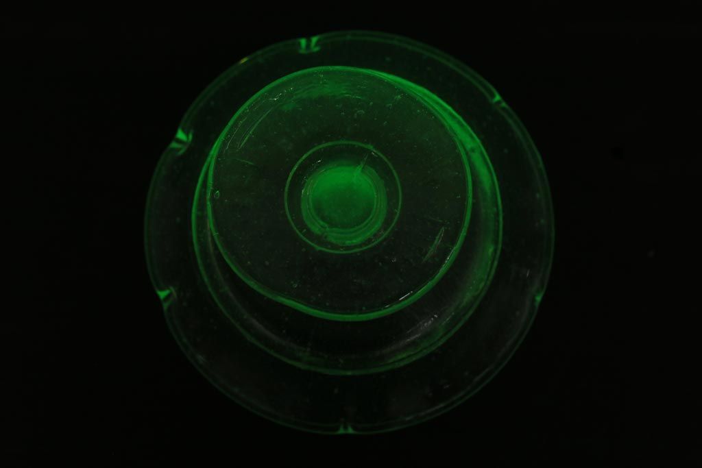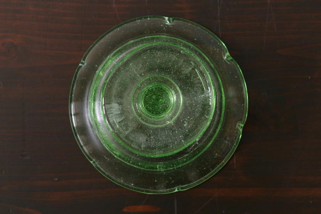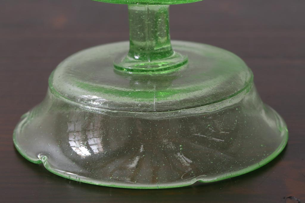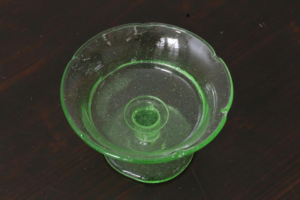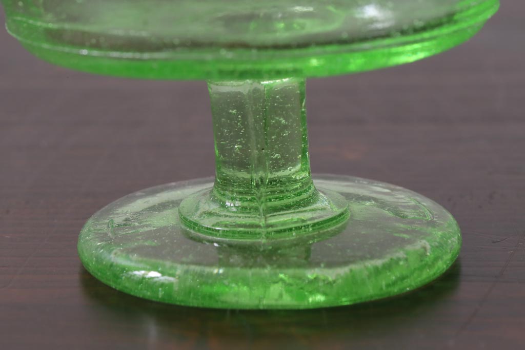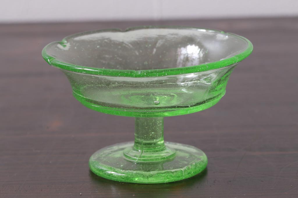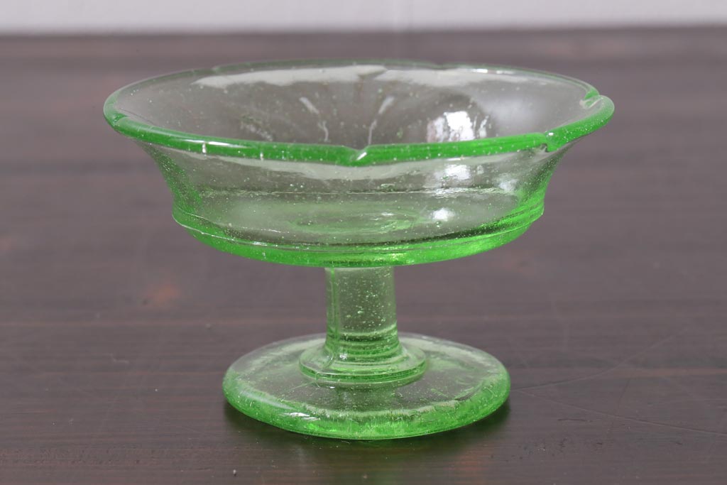 アンティーク雑貨 昭和初期 プレスガラス ウランガラスのレトロな氷コップ(R-037396)