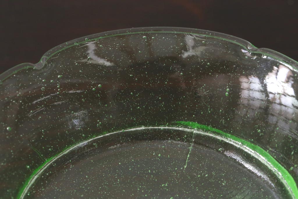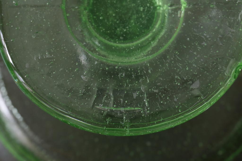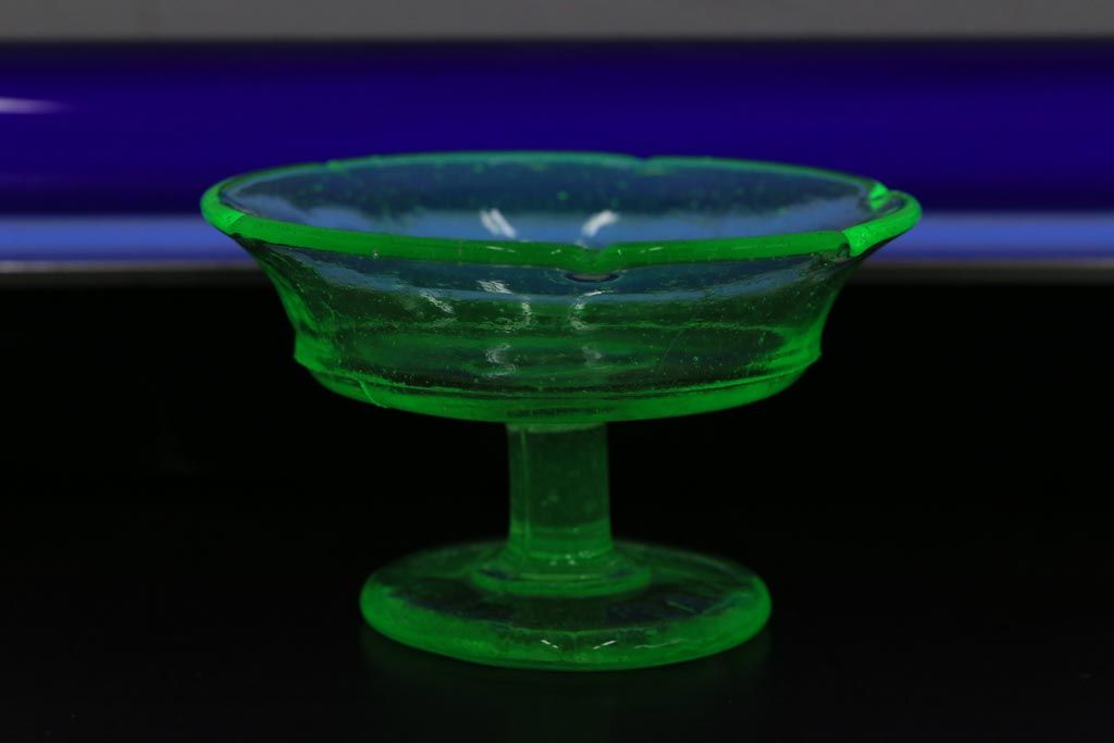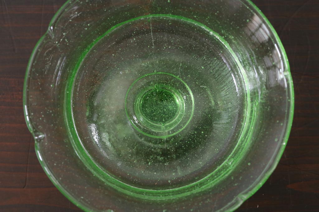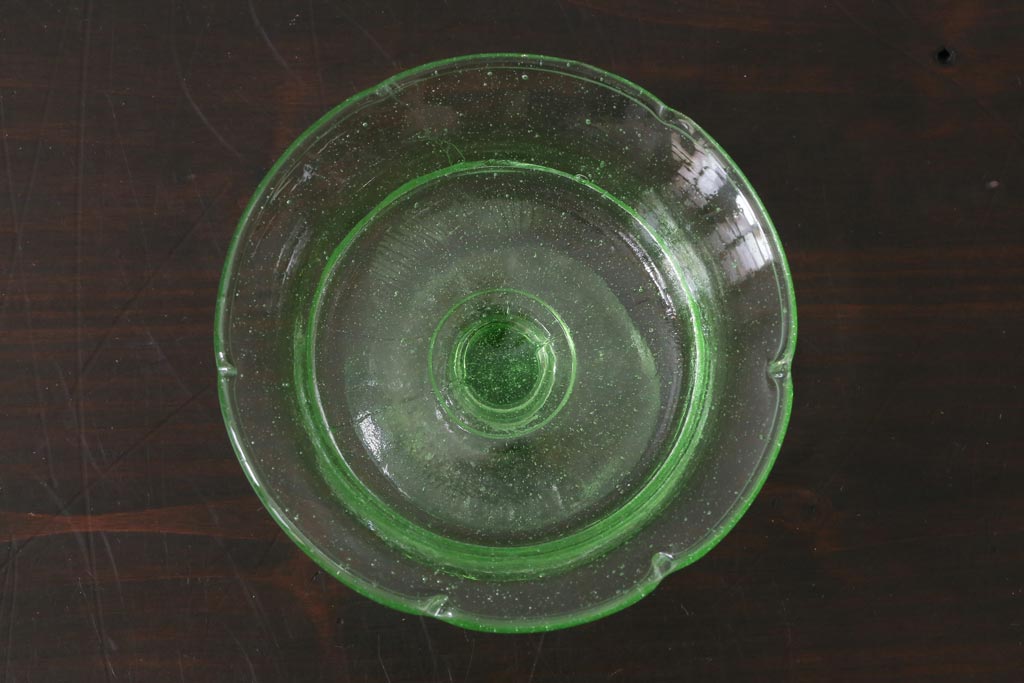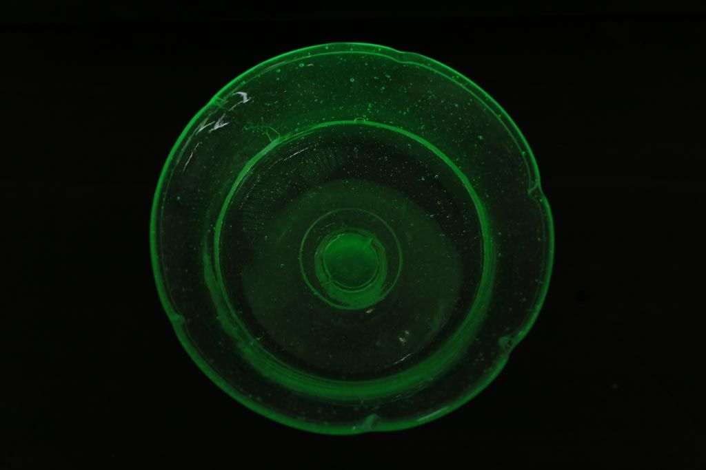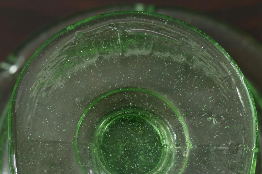 アンティーク雑貨 昭和初期 プレスガラス ウランガラスのレトロな氷コップ(R-037396)