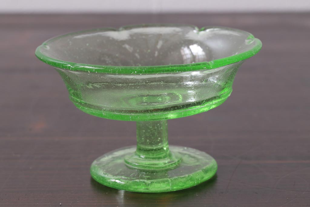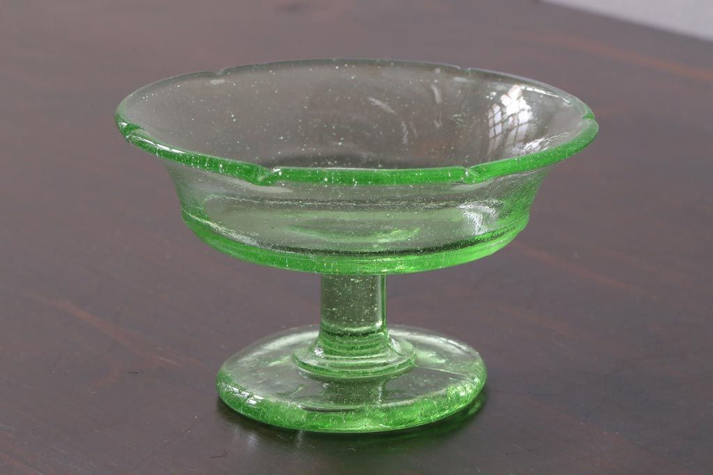 ラフジュ工房> 和食器・茶道具> 氷コップ > アンティーク雑貨 昭和初期 プレスガラス ウランガラスのレトロな氷コップ(R-037396)