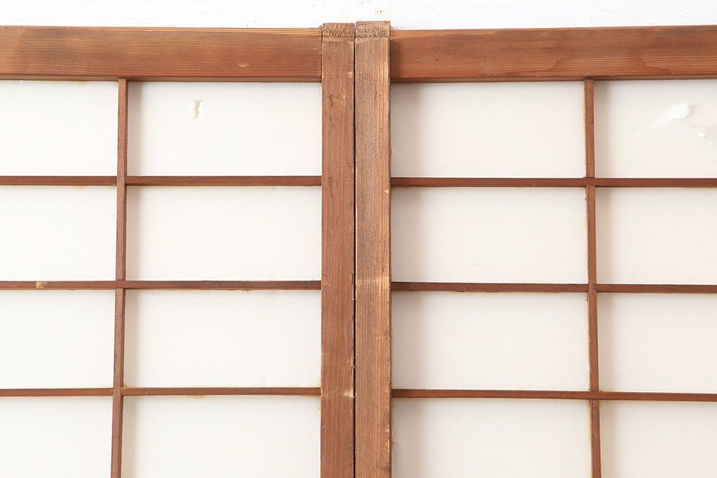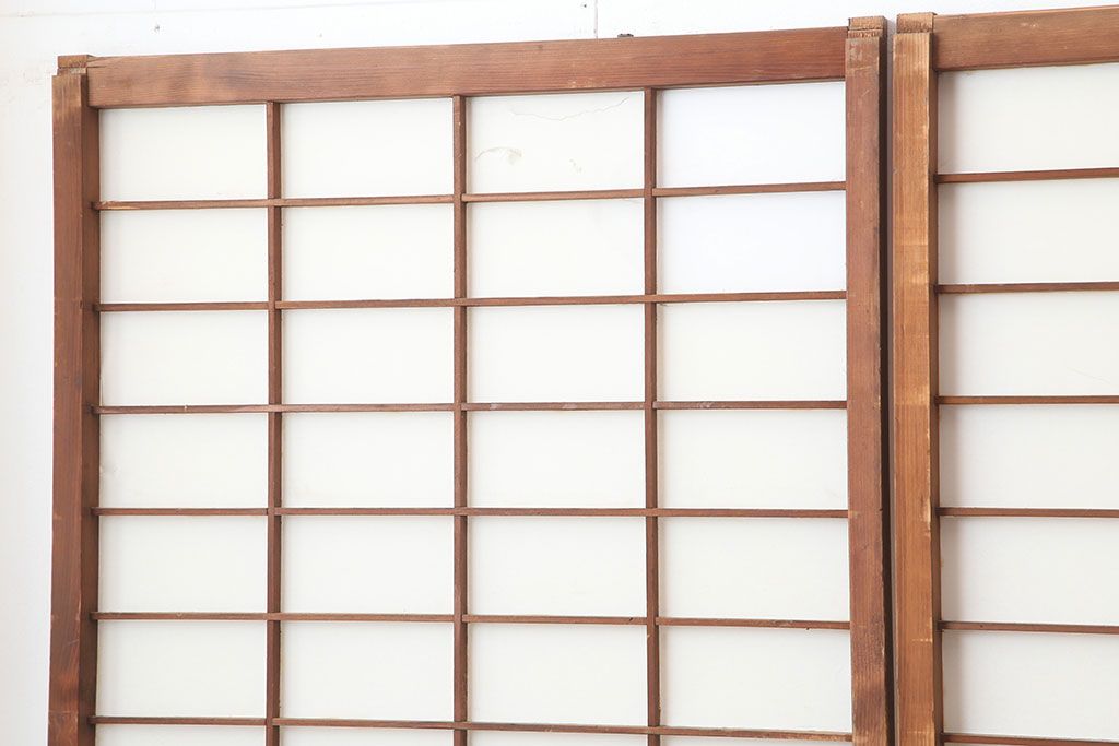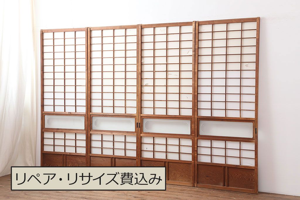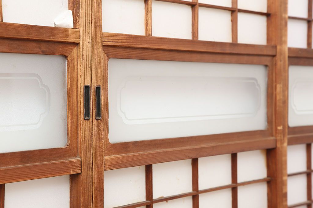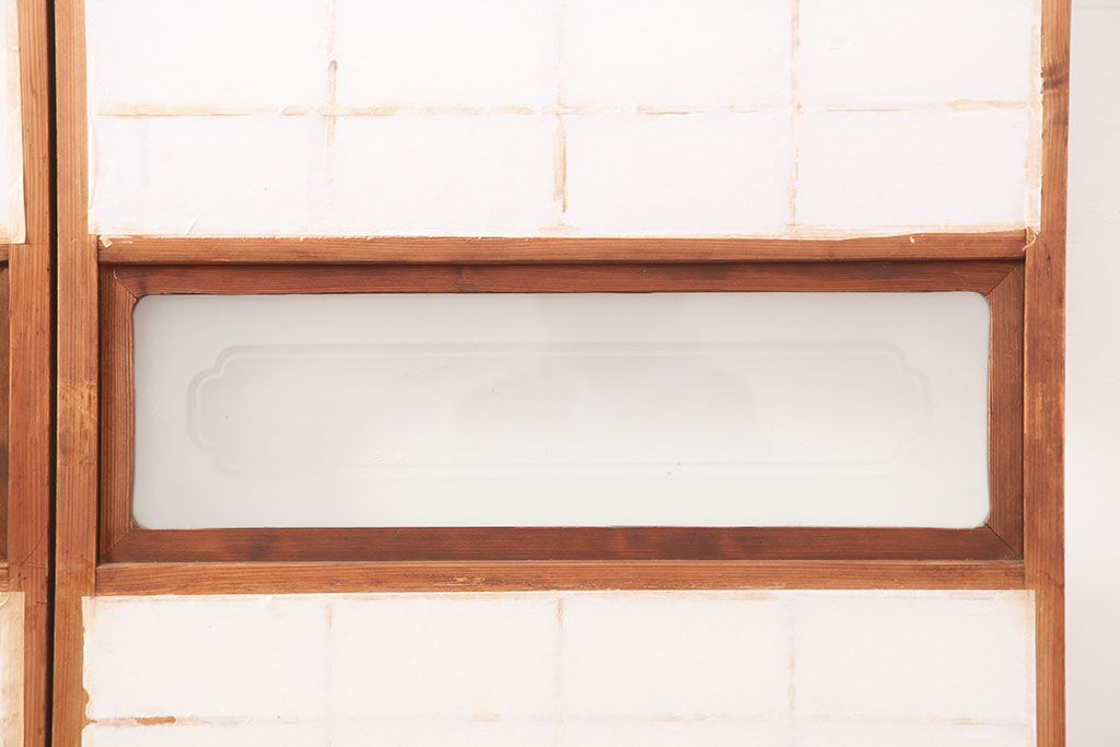 アンティーク建具 昭和初期 横額 木目が目を引く障子戸4枚セット(引き戸、ガラス帯戸)(R-037012)