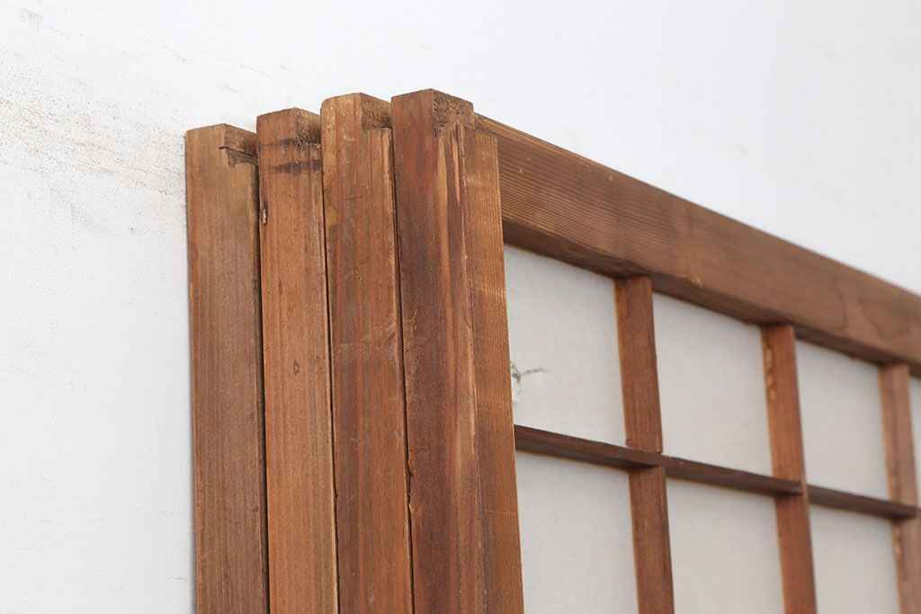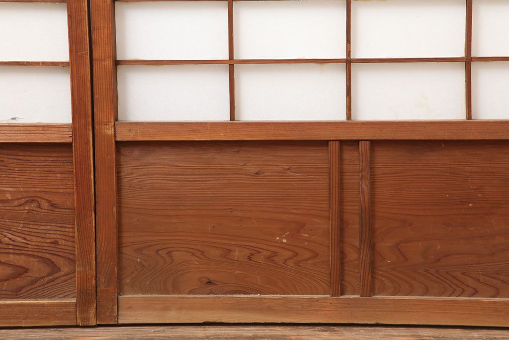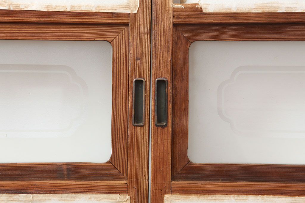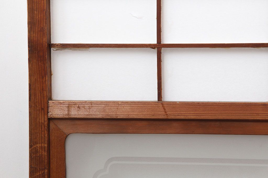 ラフジュ工房> ドア・建具> 障子戸 > アンティーク建具 昭和初期 横額 木目が目を引く障子戸4枚セット(引き戸、ガラス帯戸)(R-037012)