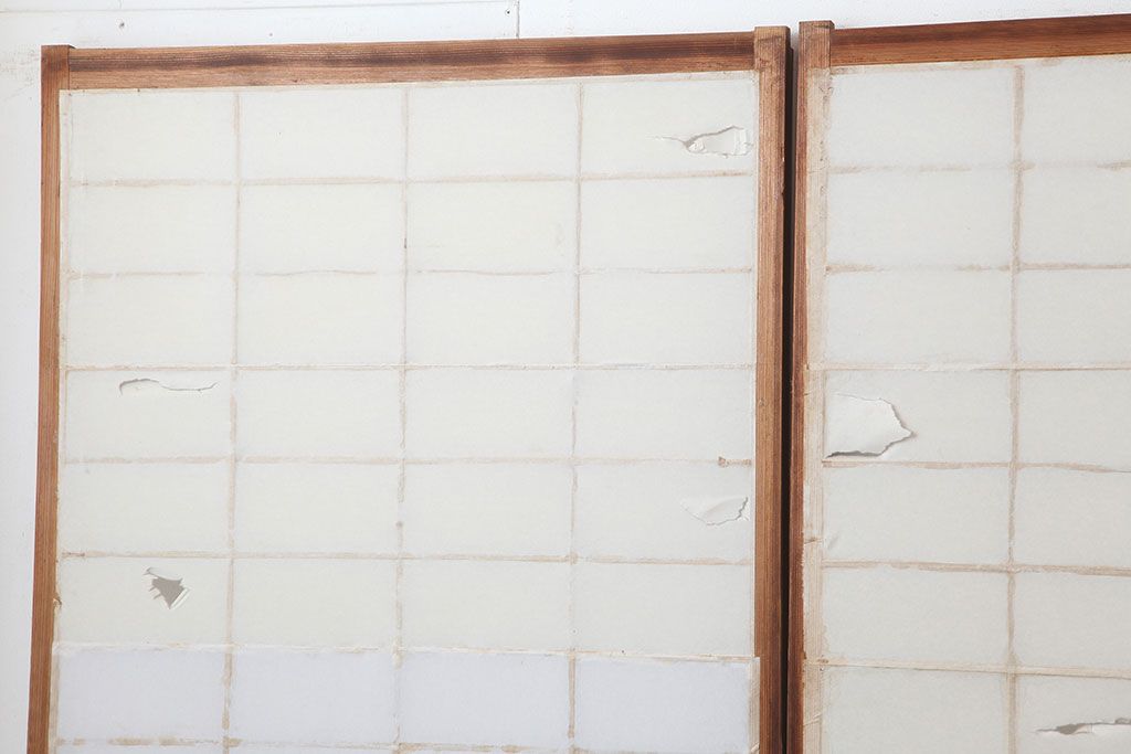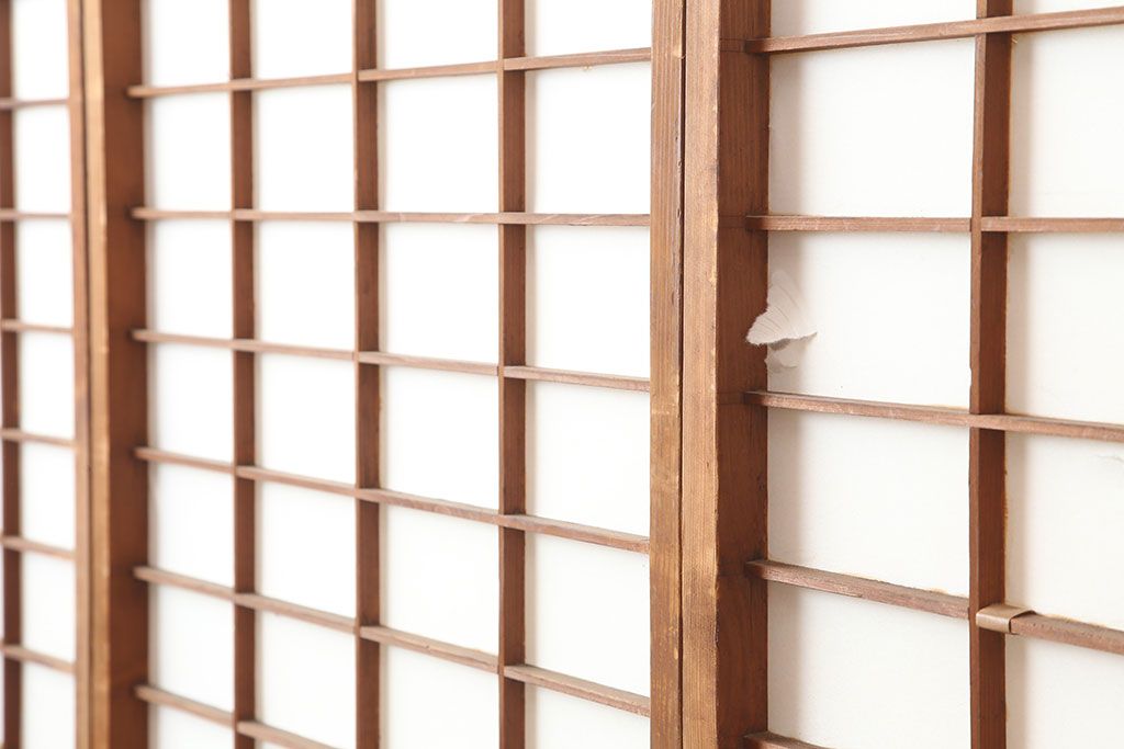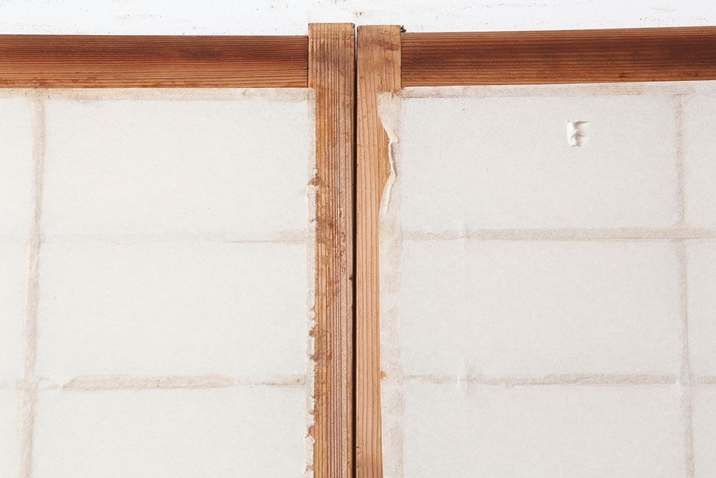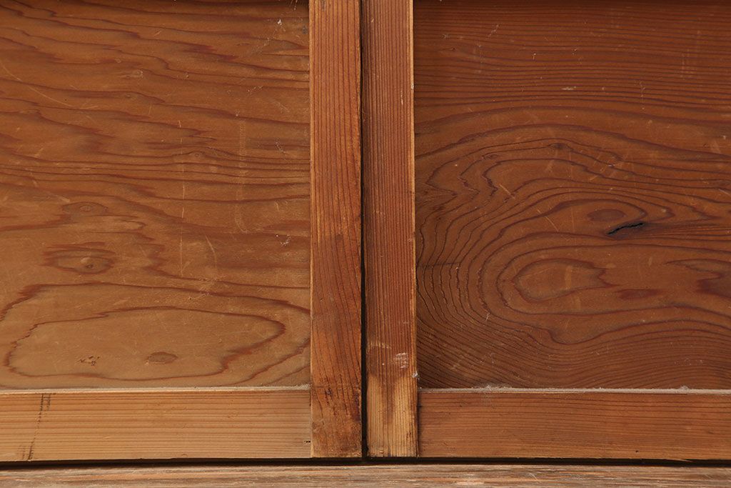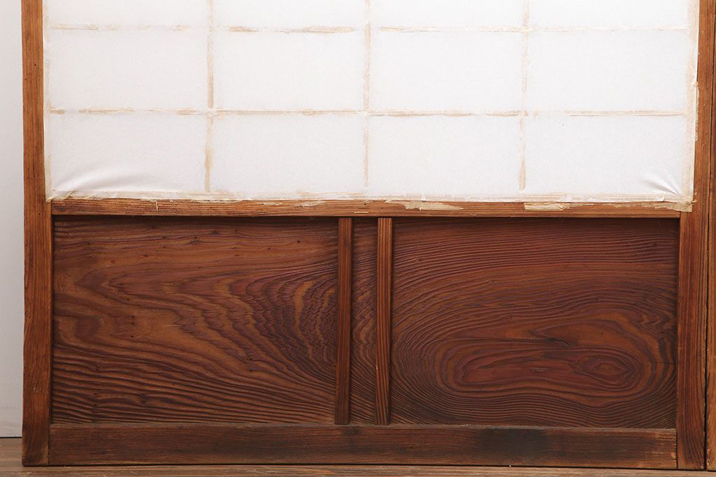 ラフジュ工房> ドア・建具> 障子戸 > アンティーク建具 昭和初期 横額 木目が目を引く障子戸4枚セット(引き戸、ガラス帯戸)(R-037012)
