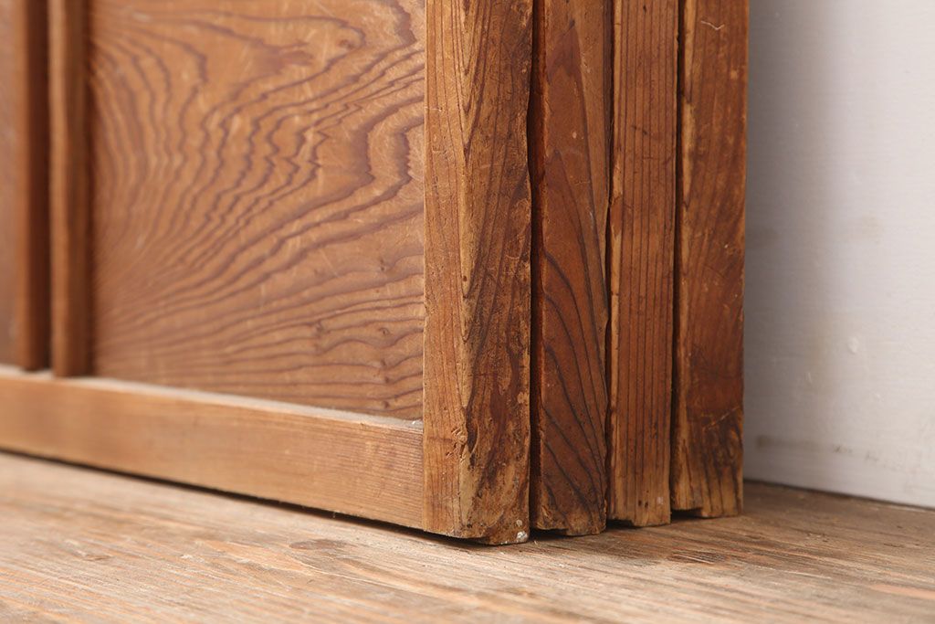 ラフジュ工房> ドア・建具> 4枚〜セット > アンティーク建具 昭和初期 横額 木目が目を引く障子戸4枚セット(引き戸、ガラス帯戸)(R-037012)