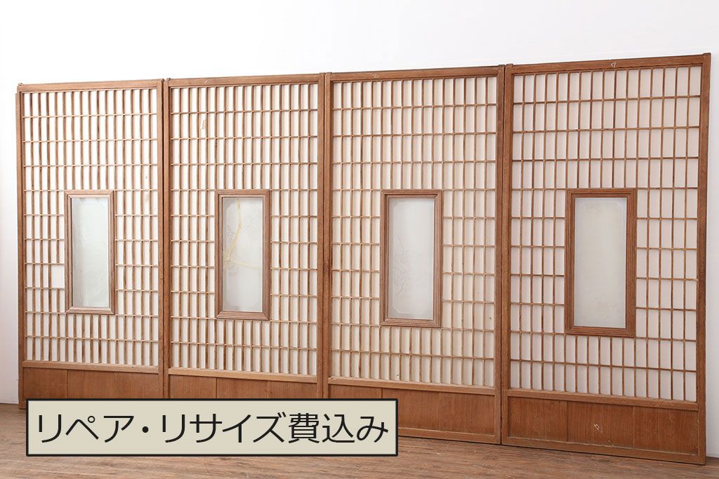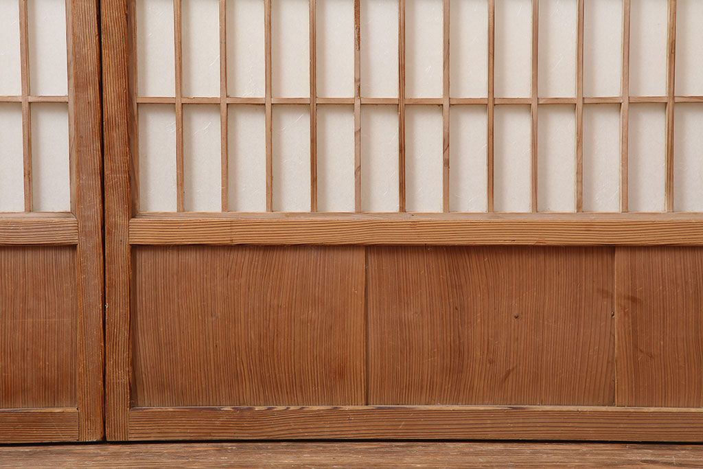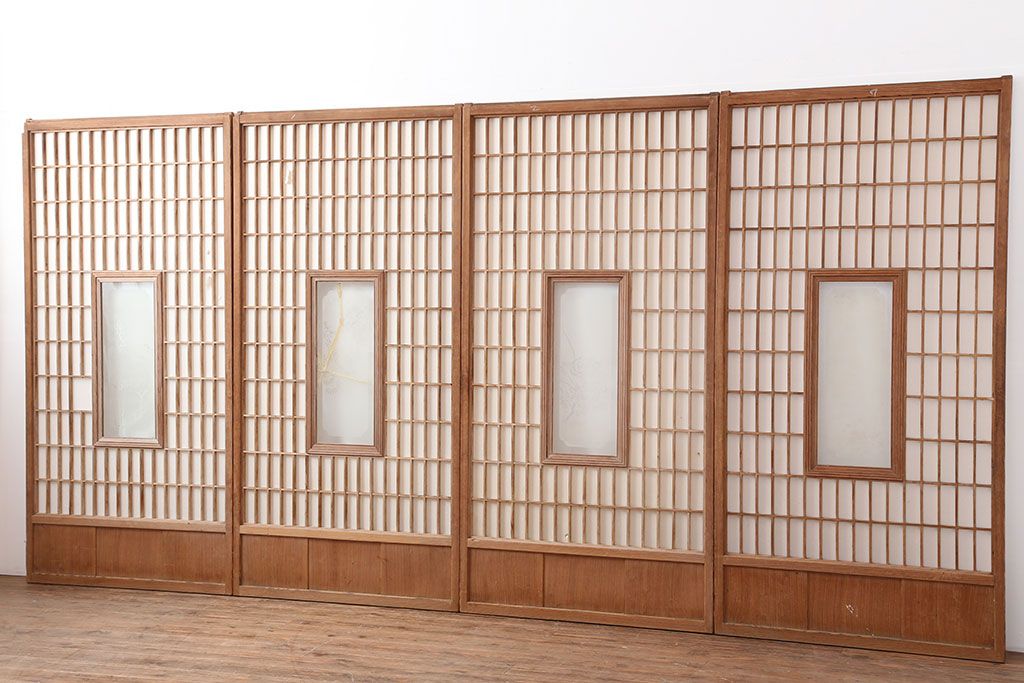 アンティーク建具 和製アンティーク 昭和初期 木味が魅力の縦額入り障子戸4枚セット(引き戸、建具)(R-037015)