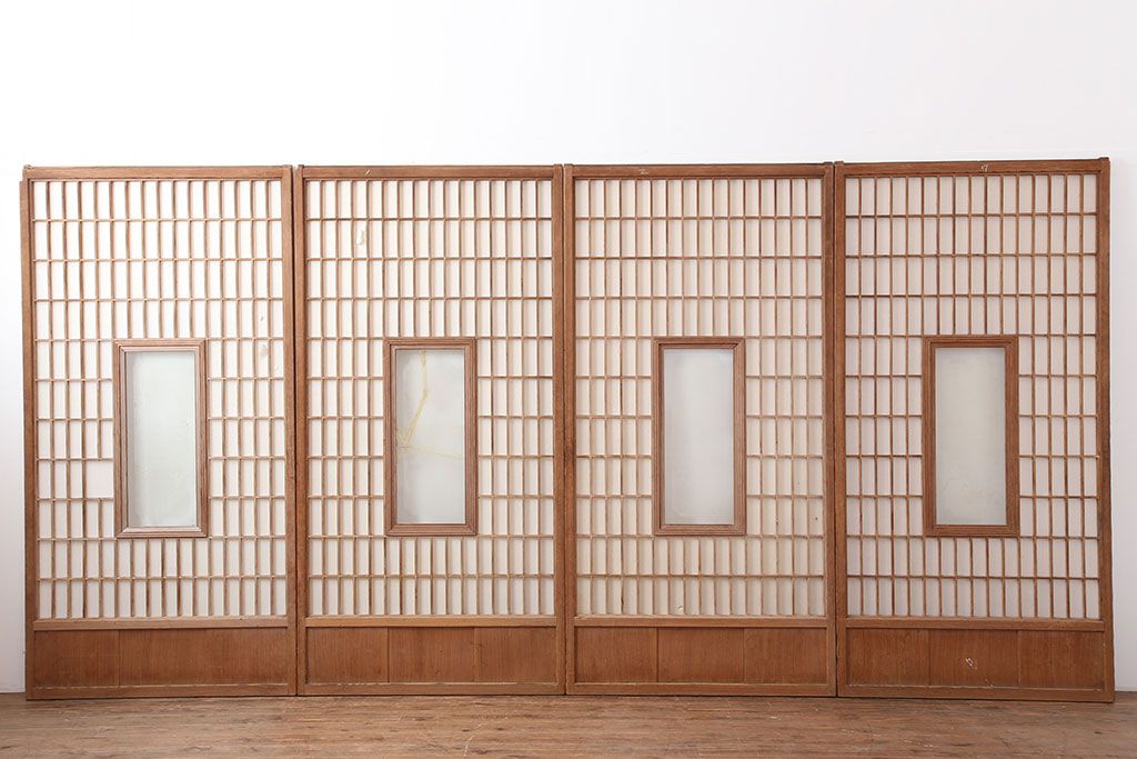 ドア・建具> 4枚〜セット > アンティーク建具 和製アンティーク 昭和初期 木味が魅力の縦額入り障子戸4枚セット(引き戸、建具)(R-037015)