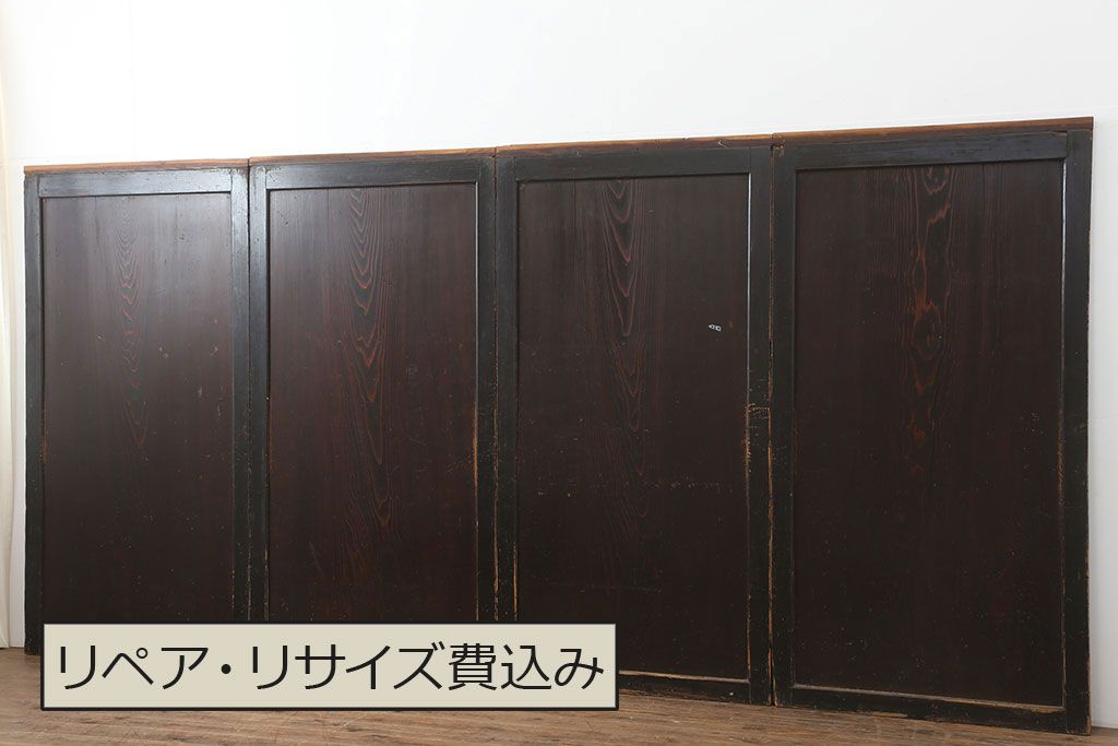アンティーク建具 杉材一枚板 シンプルな板戸4枚セット(帯戸、引き戸)(R-037006)