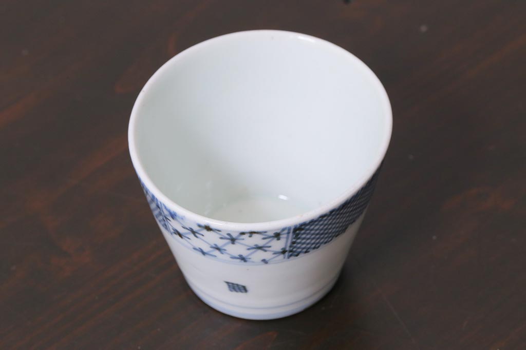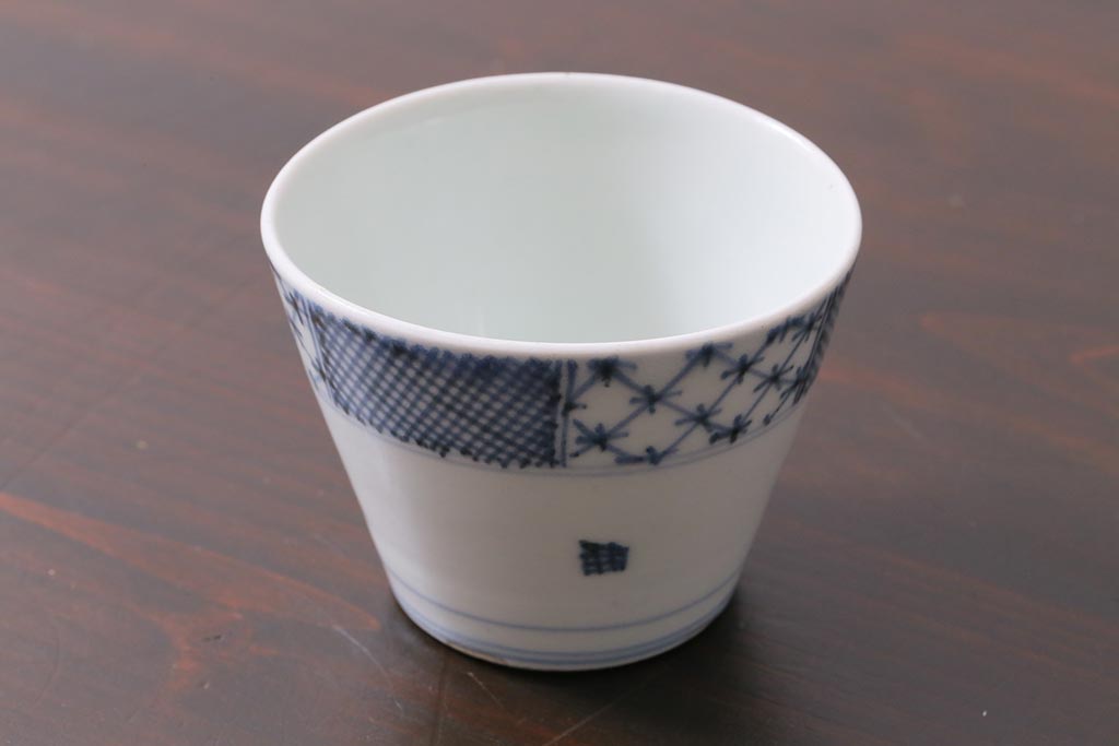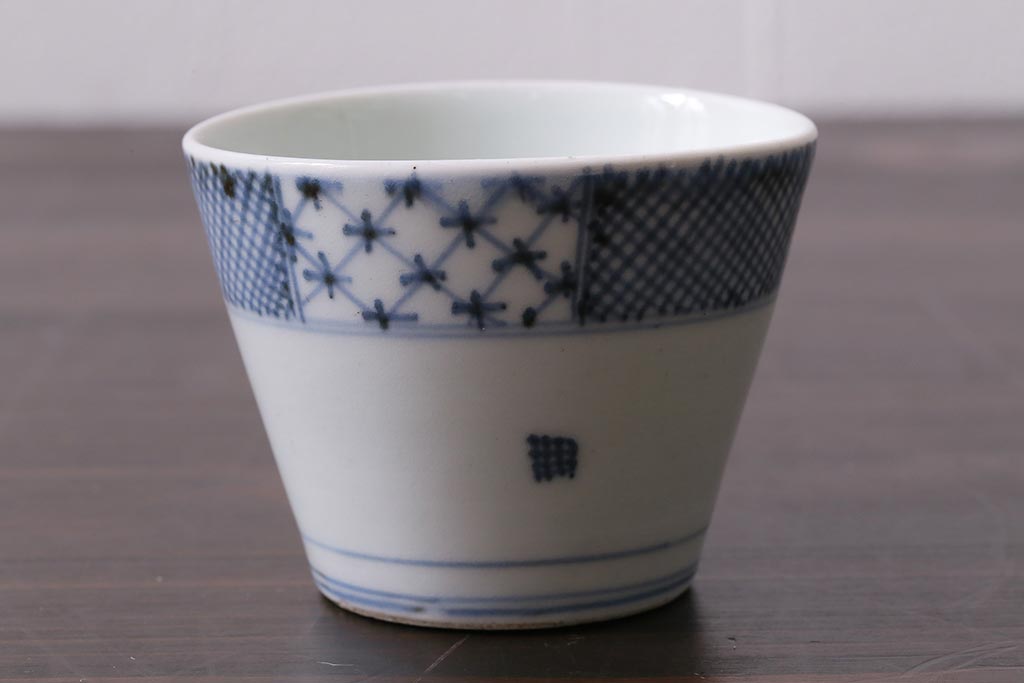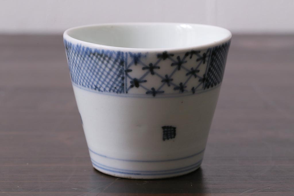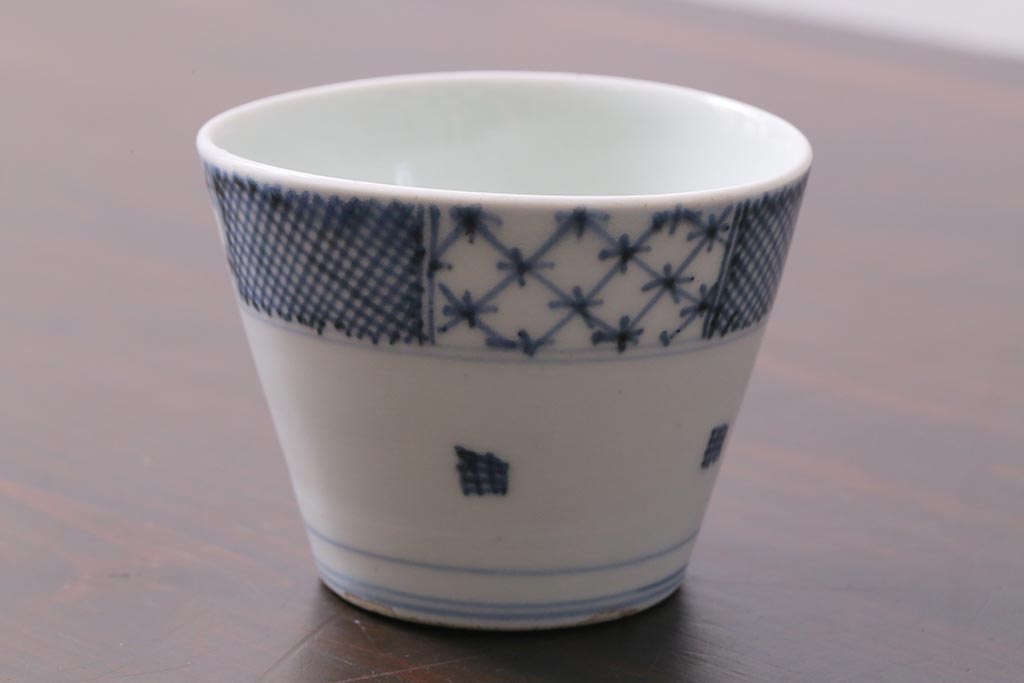 アンティーク雑貨 江戸中期 古伊万里 幾何学文蕎麦猪口(R-037840)
