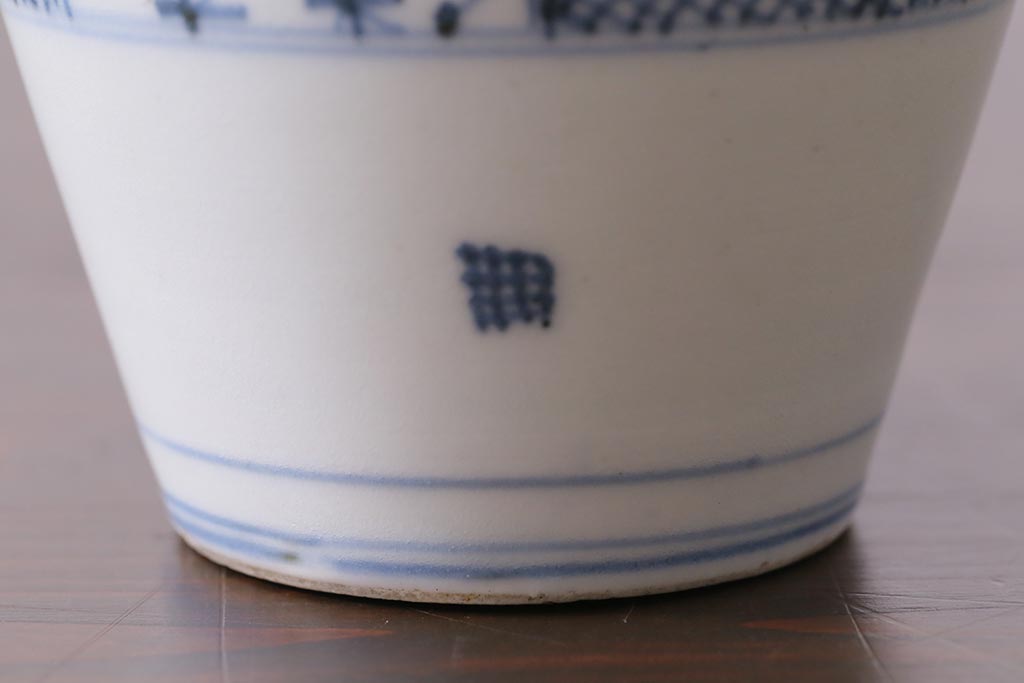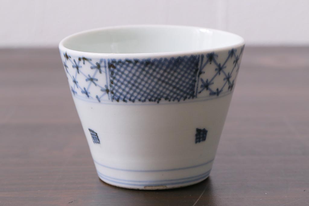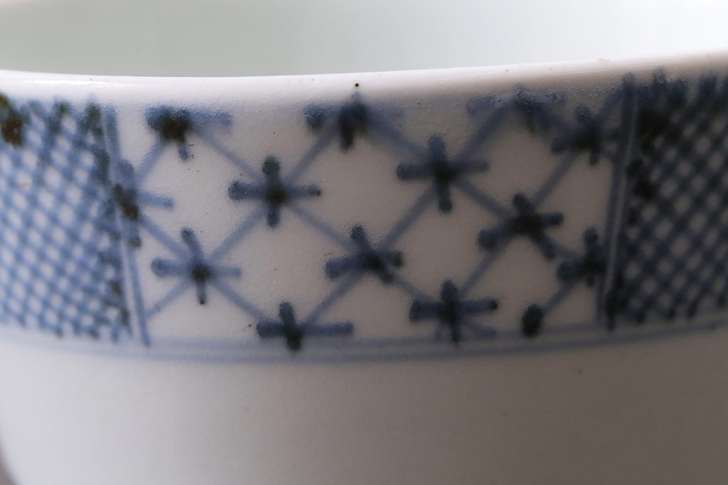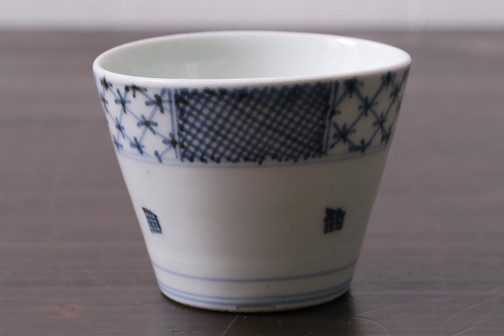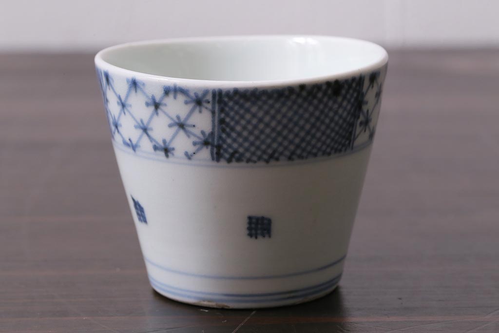 アンティーク雑貨 江戸中期 古伊万里 幾何学文蕎麦猪口(R-037840)