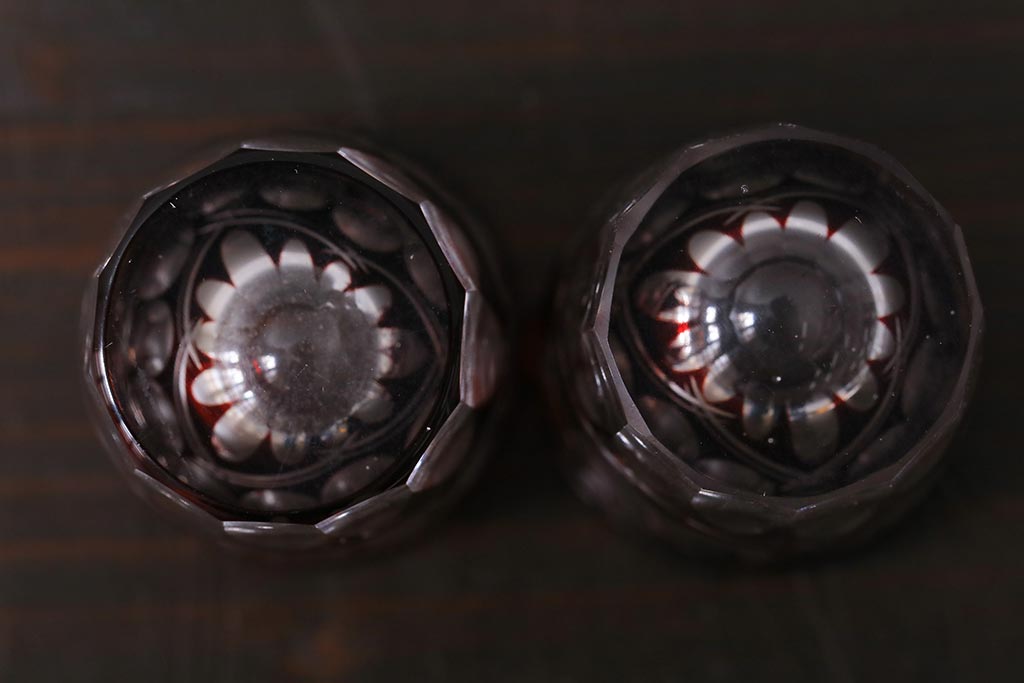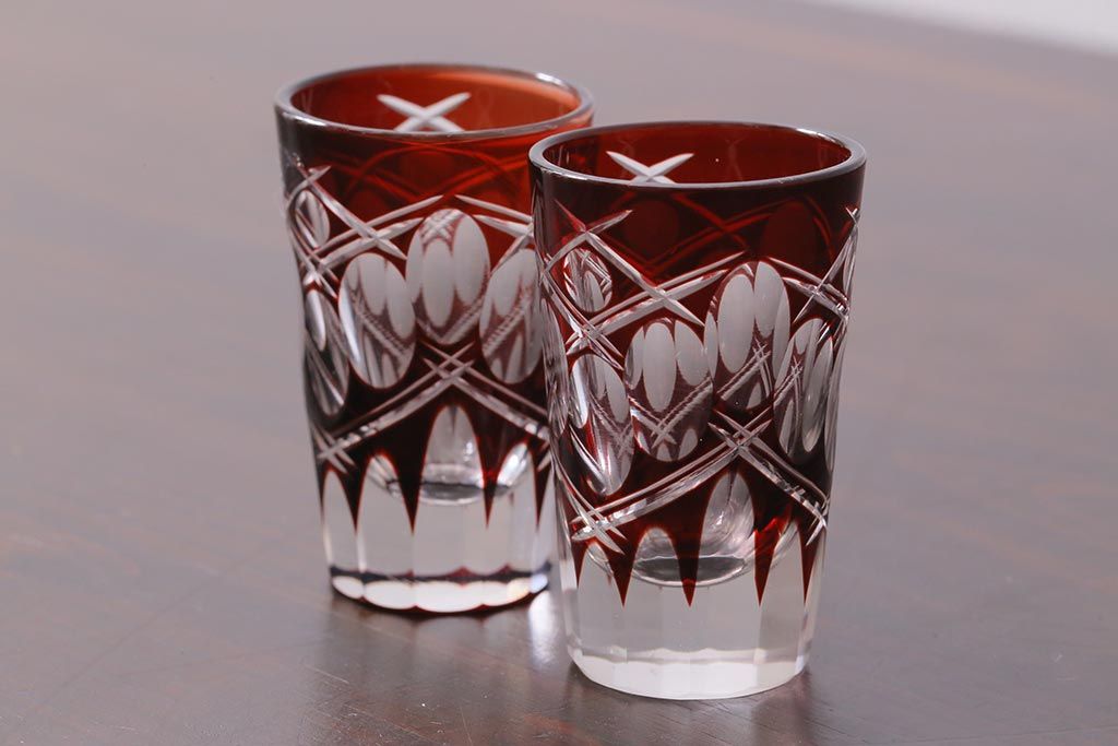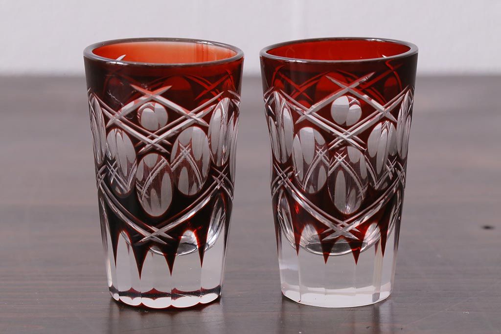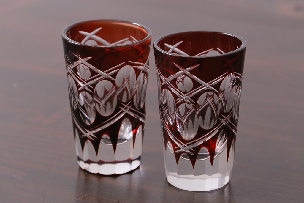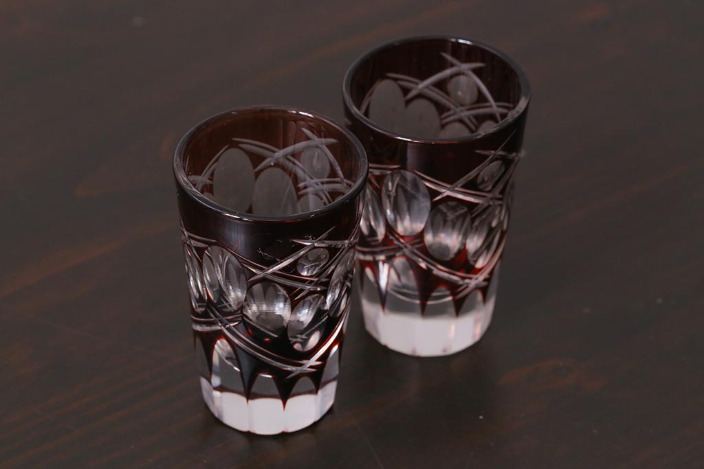 ラフジュ工房> 和食器・茶道具 > アンティーク雑貨 昭和初期 和ガラス 切子ショットグラス2点(酒器)(R-037841)