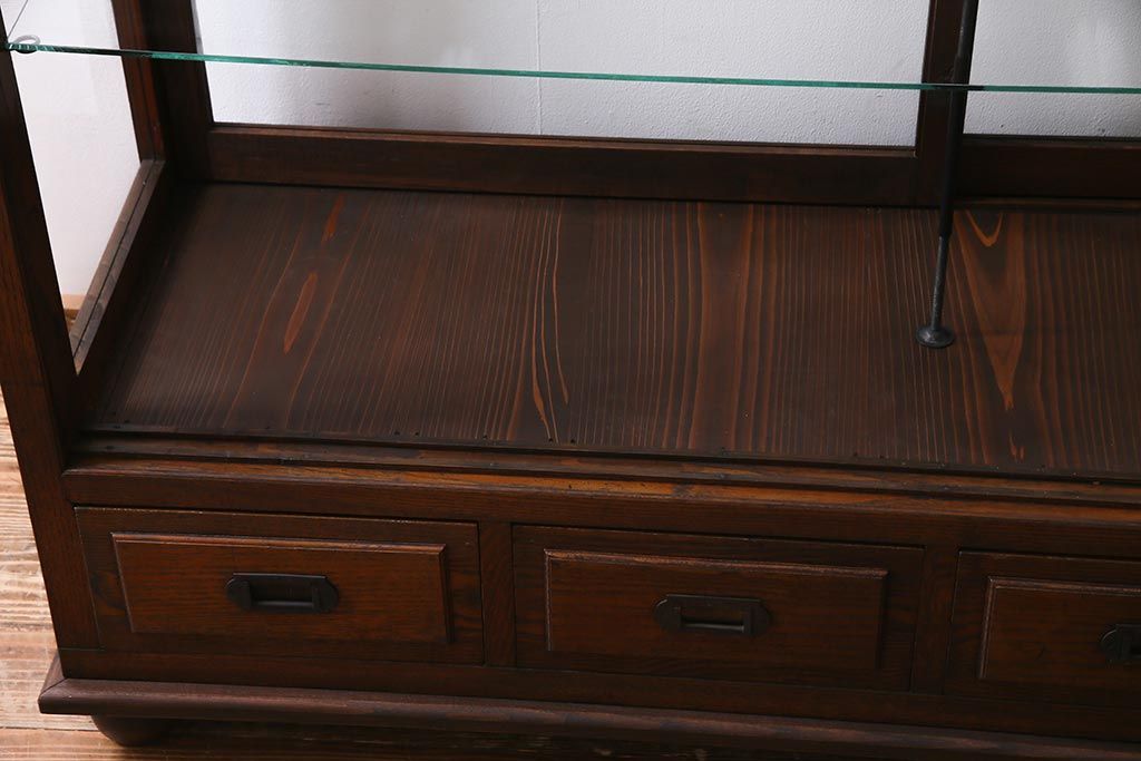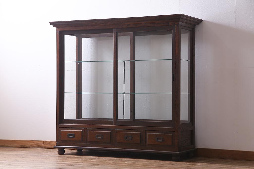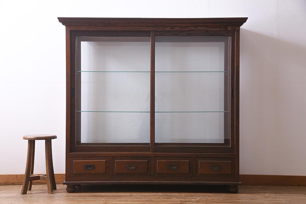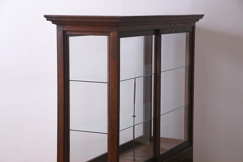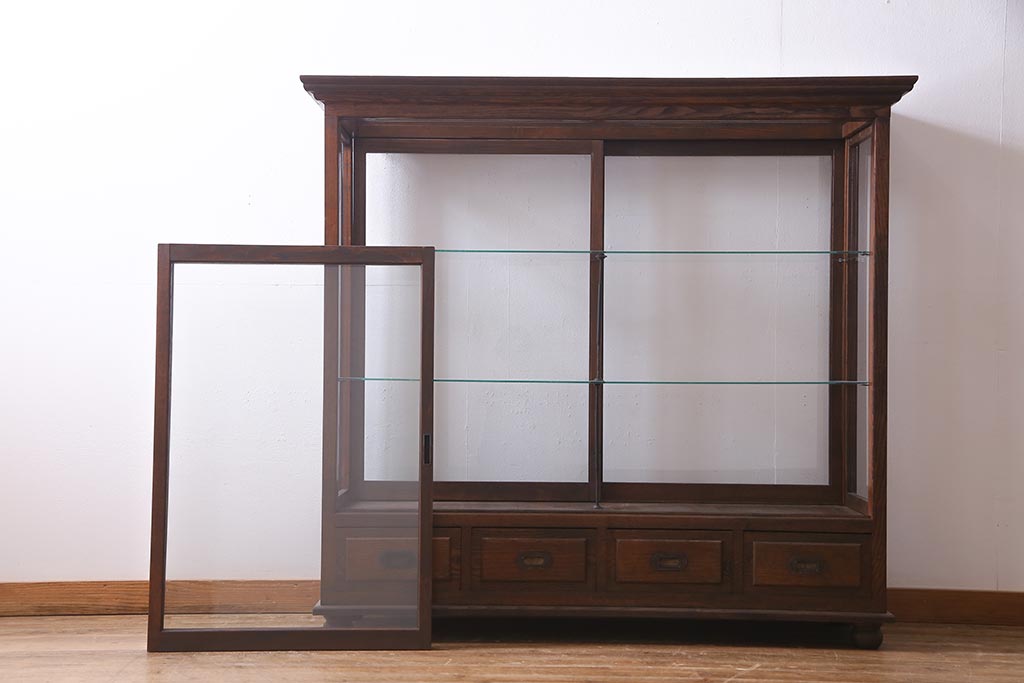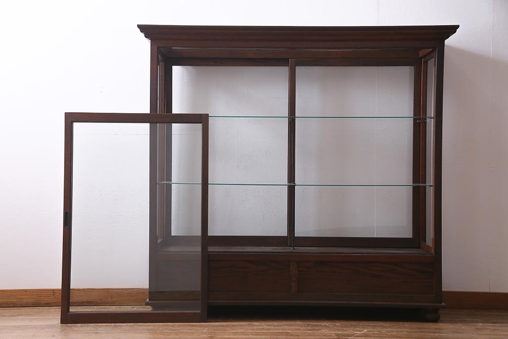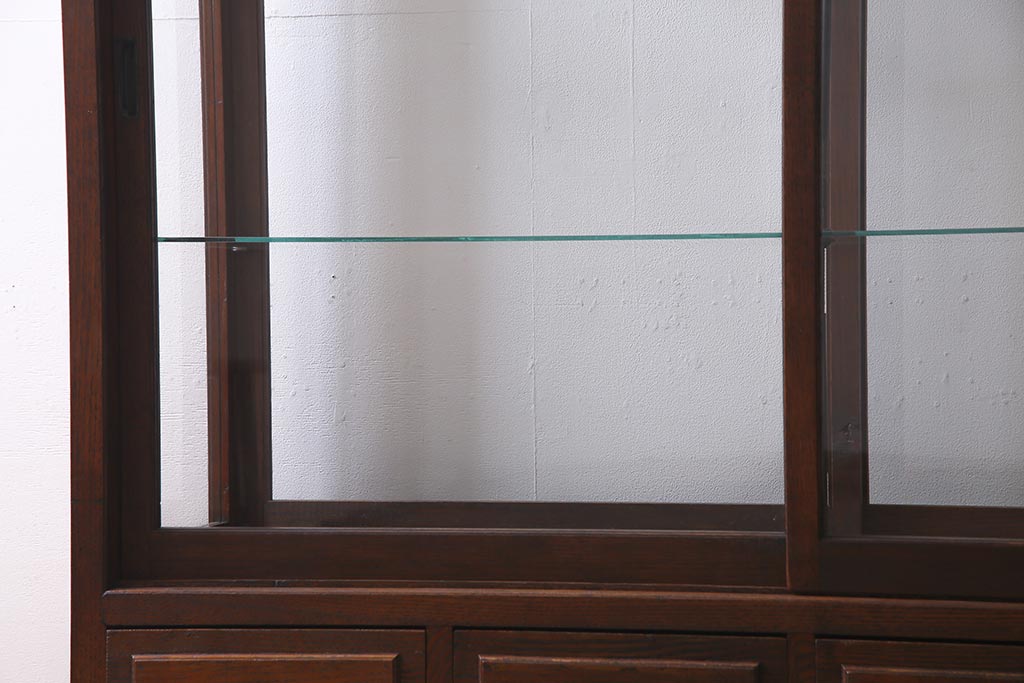アンティーク家具 和製アンティーク 総栗材 激レア!両面引き戸 大正ロマンの雰囲気漂うガラスケース(ショーケース、陳列棚)(R-037928)