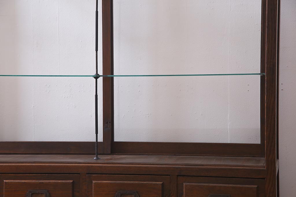 店舗什器 > アンティーク家具 和製アンティーク 総栗材 激レア!両面引き戸 大正ロマンの雰囲気漂うガラスケース(ショーケース、陳列棚)(R-037928)