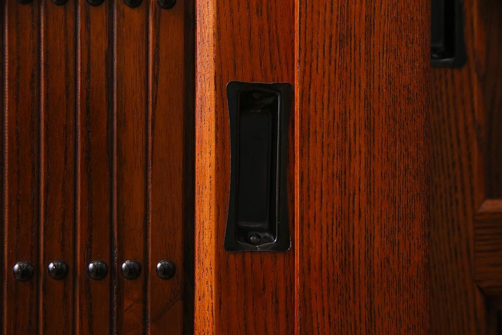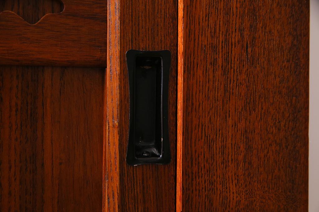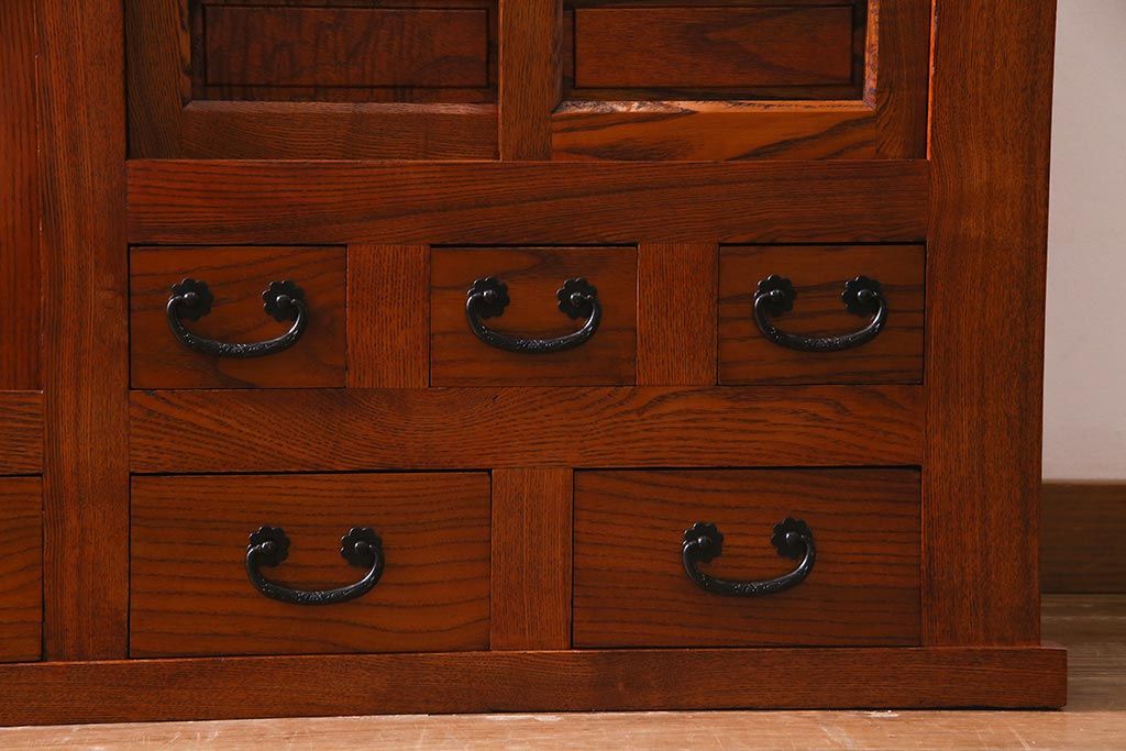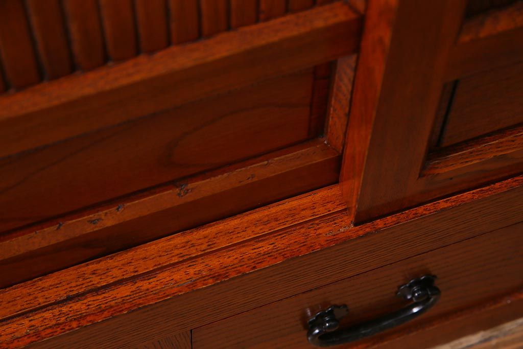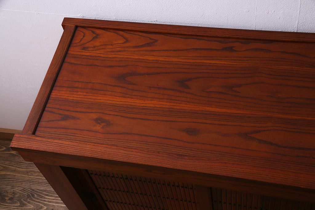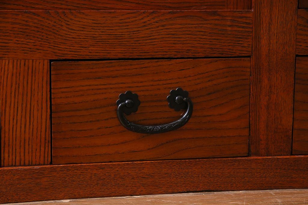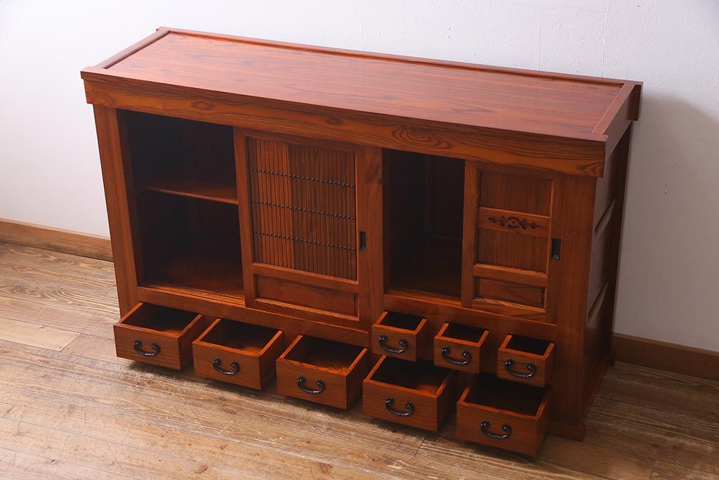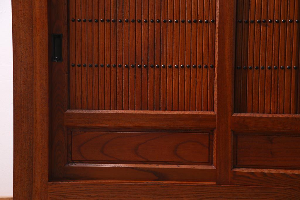 和箪笥 > 新古品 民芸家具 ニレ無垢材 5尺 重厚感と上品さを醸し出す水屋箪笥(収納棚、キャビネット)(R-037990)