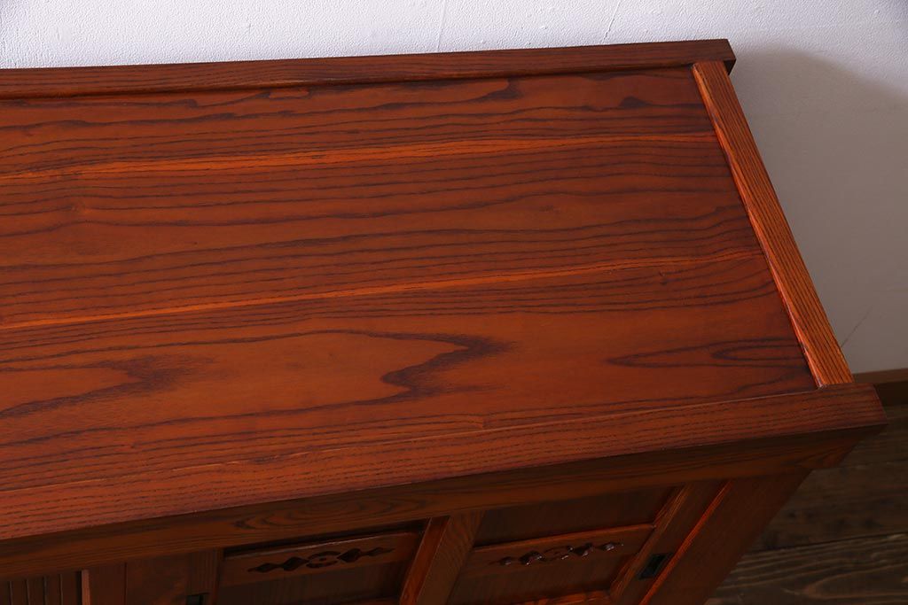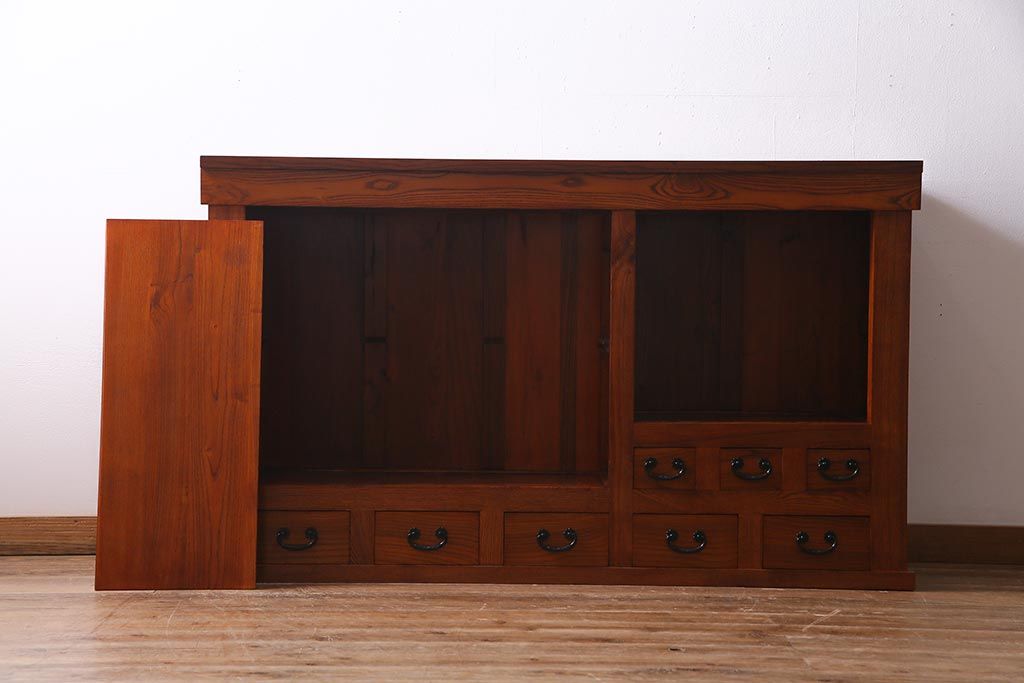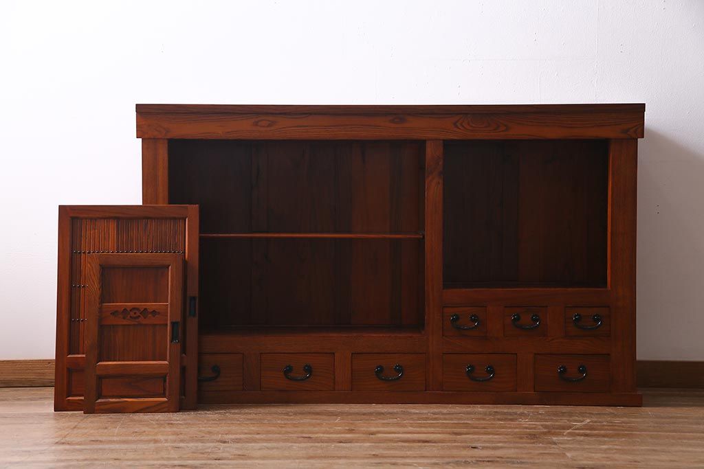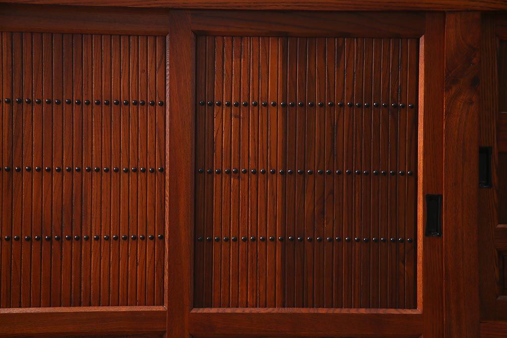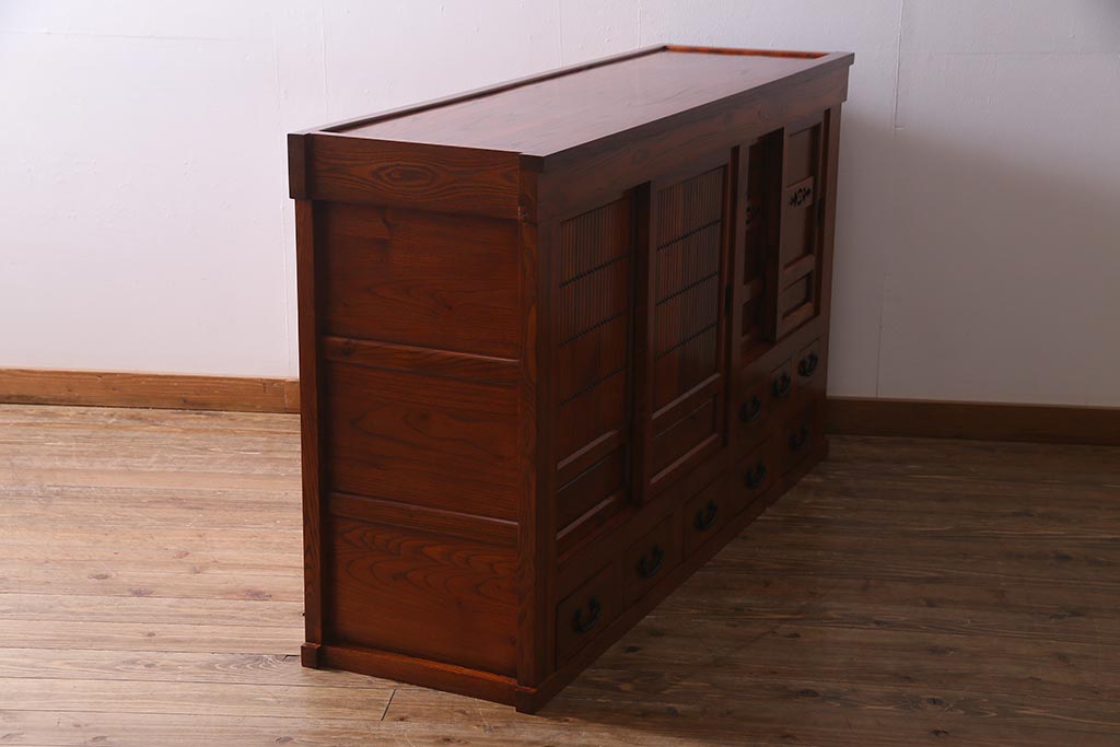 民芸家具 > 新古品 民芸家具 ニレ無垢材 5尺 重厚感と上品さを醸し出す水屋箪笥(収納棚、キャビネット)(R-037990)