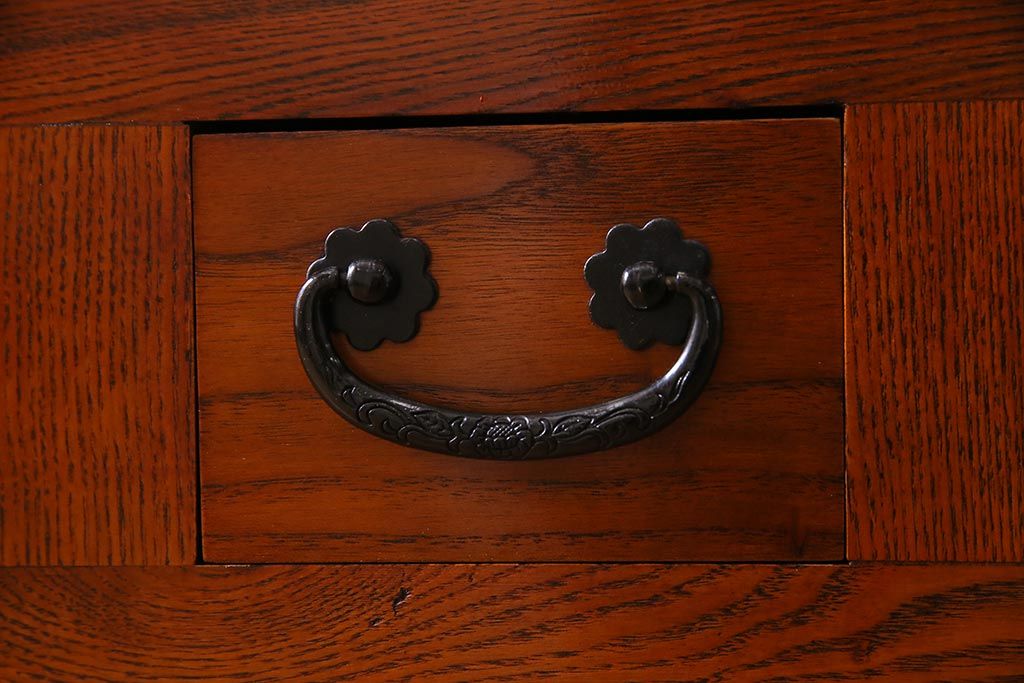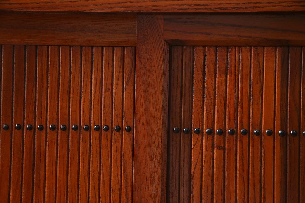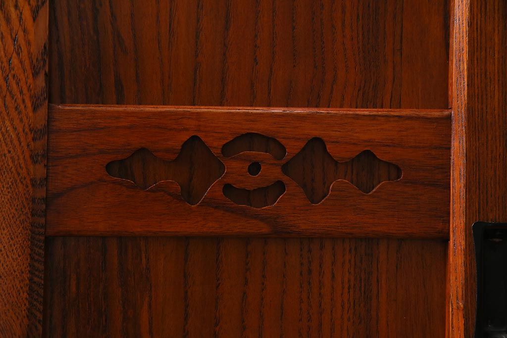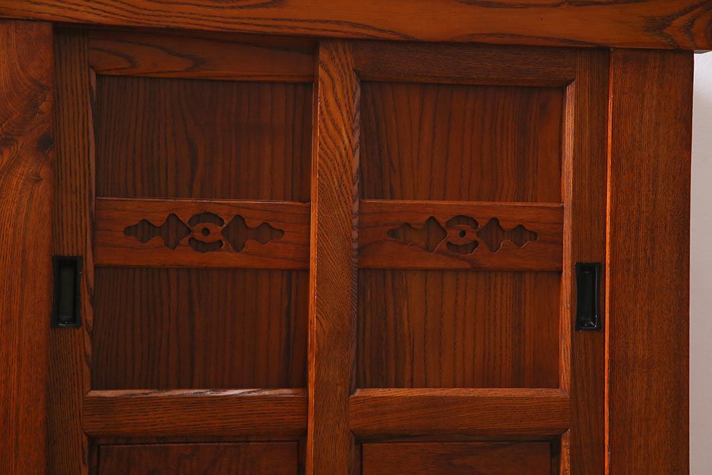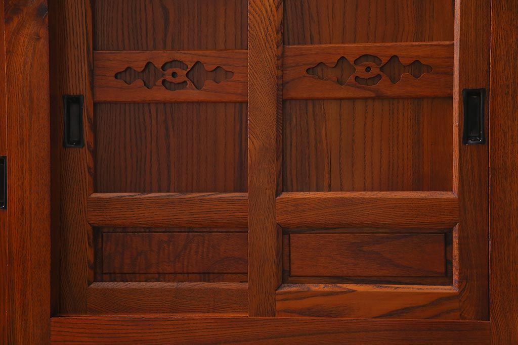 民芸家具 > 新古品 民芸家具 ニレ無垢材 5尺 重厚感と上品さを醸し出す水屋箪笥(収納棚、キャビネット)(R-037990)