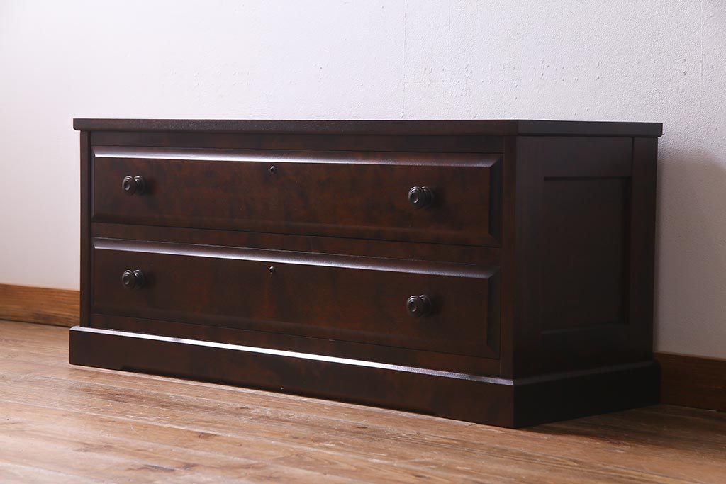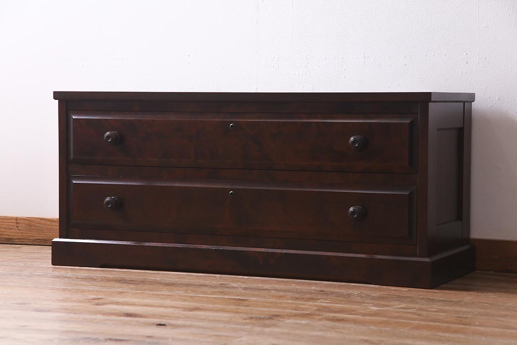 中古 北海道民芸家具 リメイク 落ち着いた雰囲気が魅力のローチェスト(ローボード、リビングボード)(R-037982)