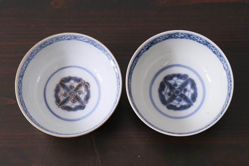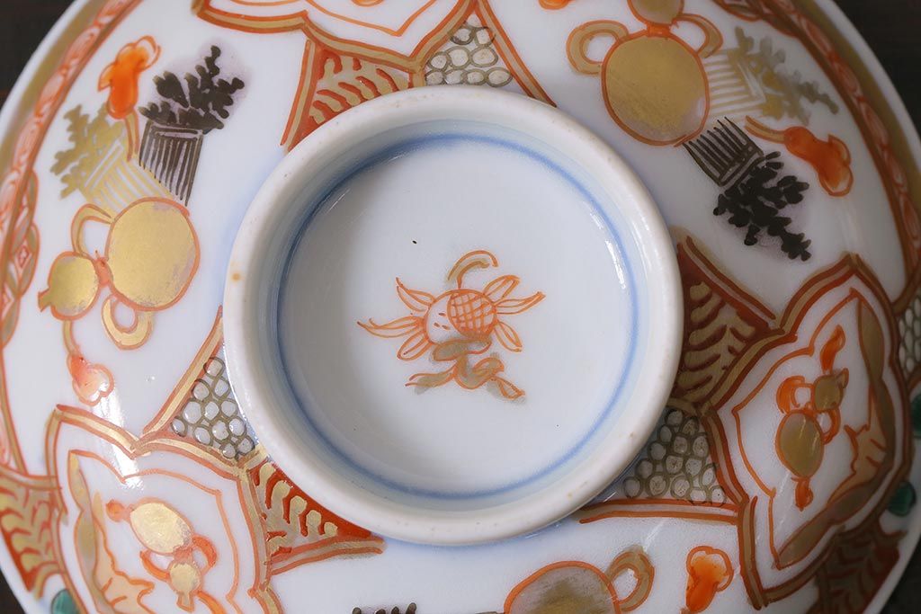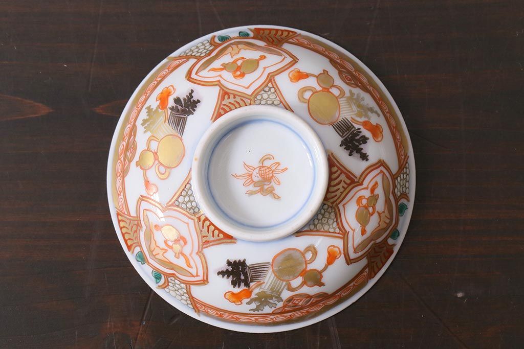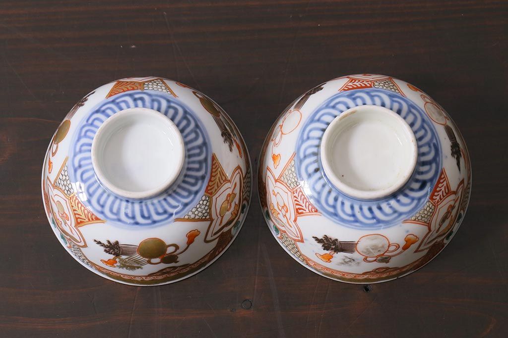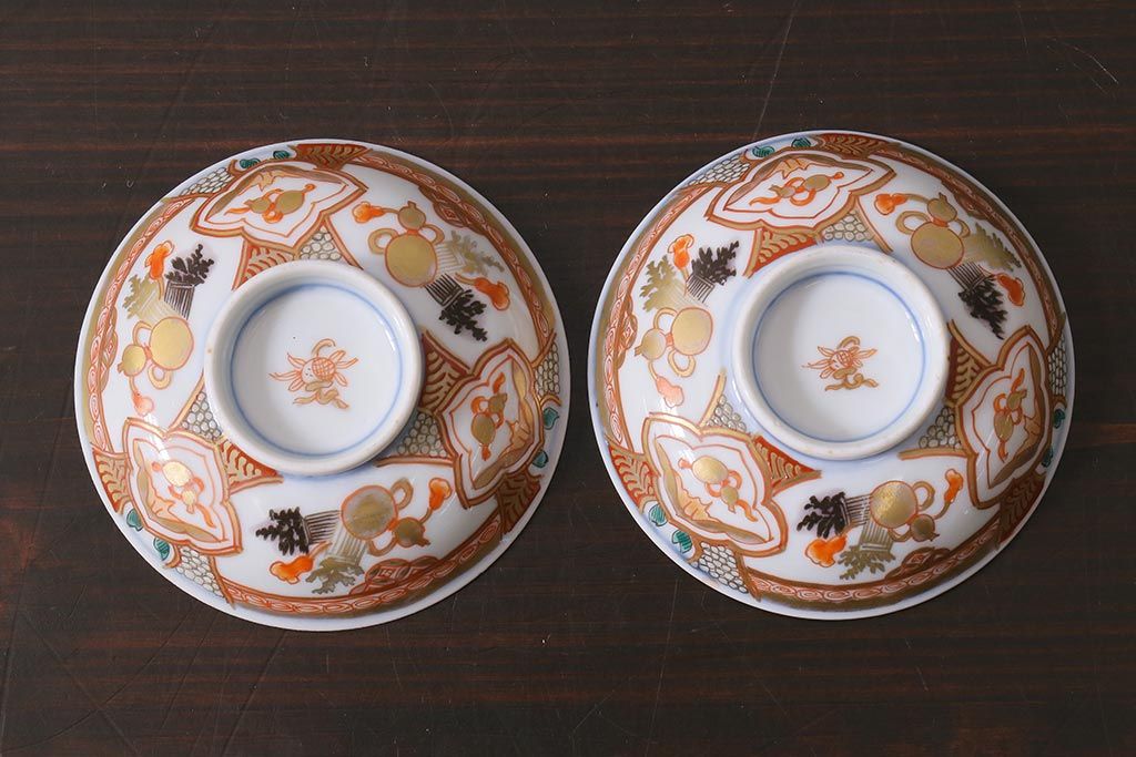 アンティーク雑貨 江戸期 色絵蓋付茶碗2個(伊万里)(R-037876)