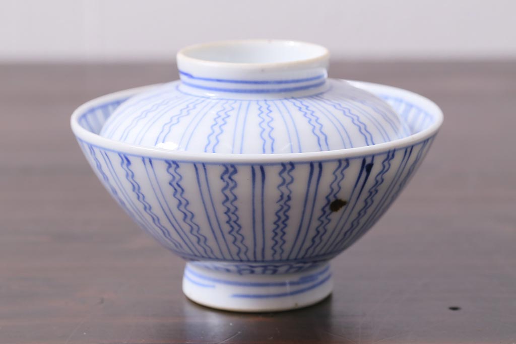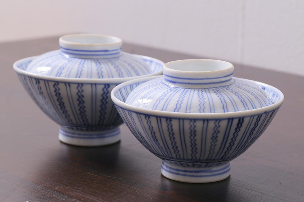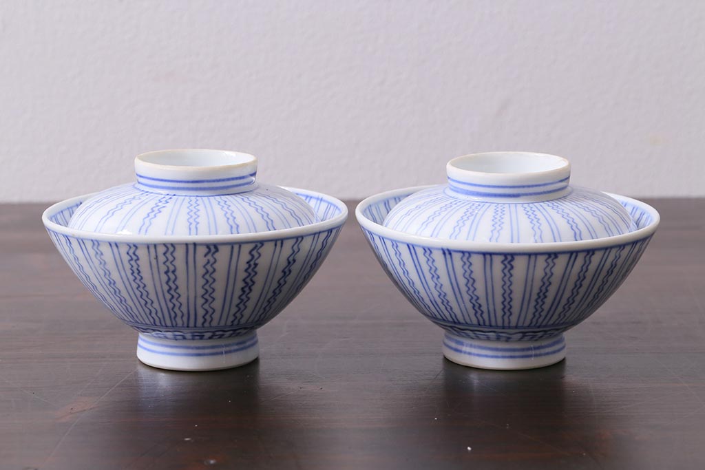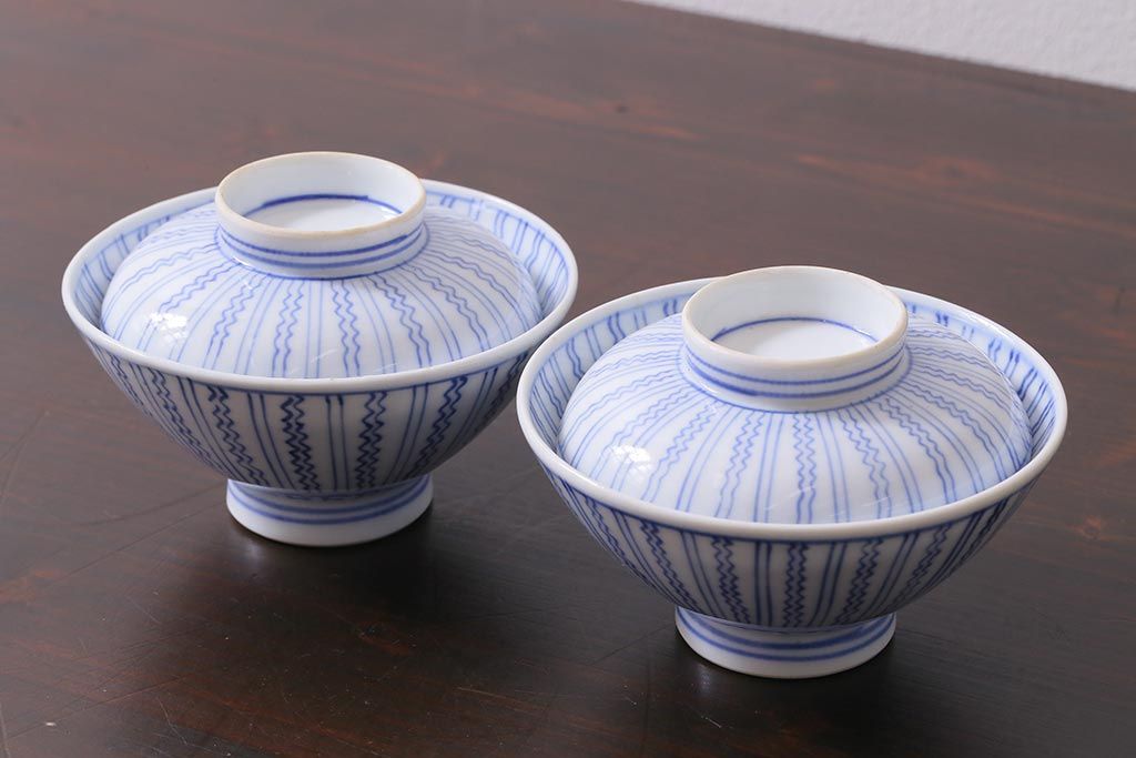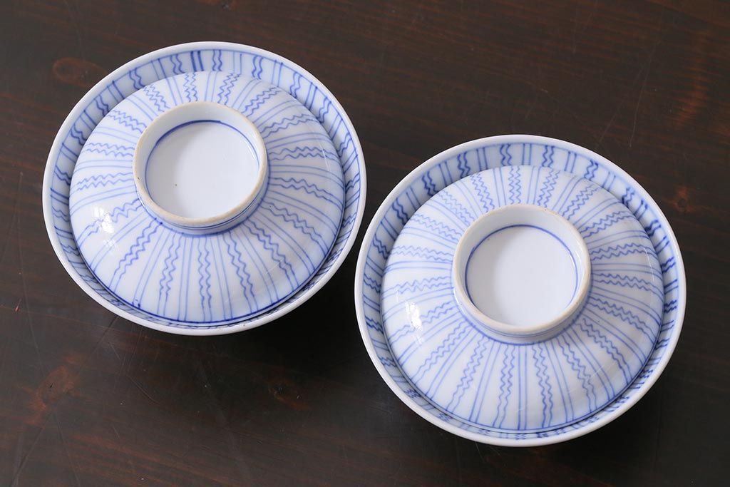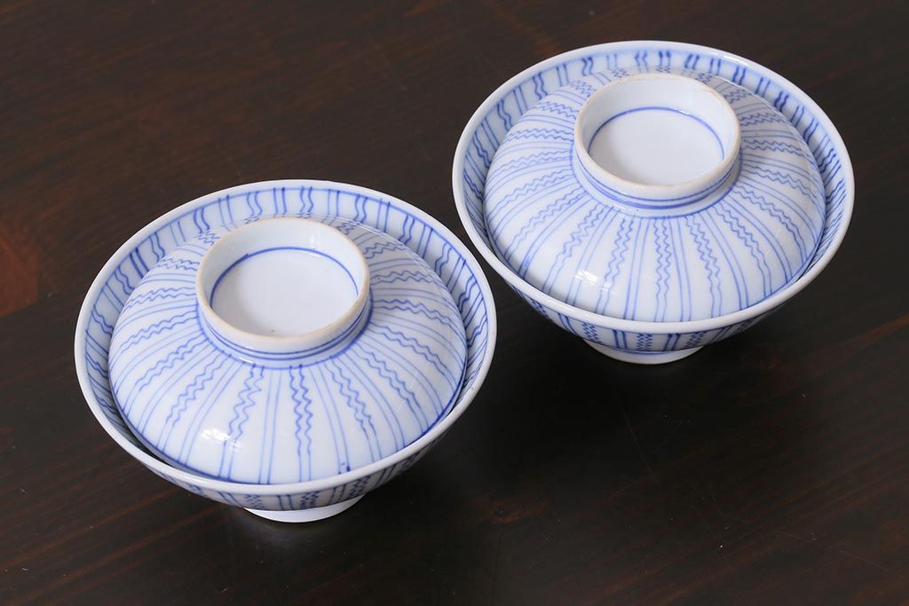 アンティーク雑貨 江戸明治期 染付蓋茶碗2個(R-037877)