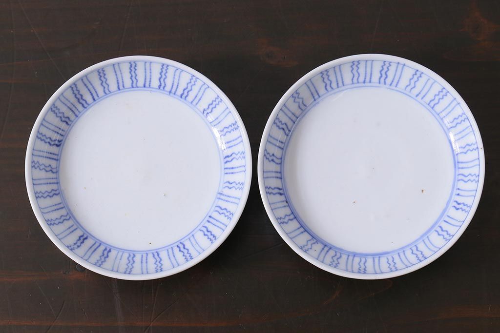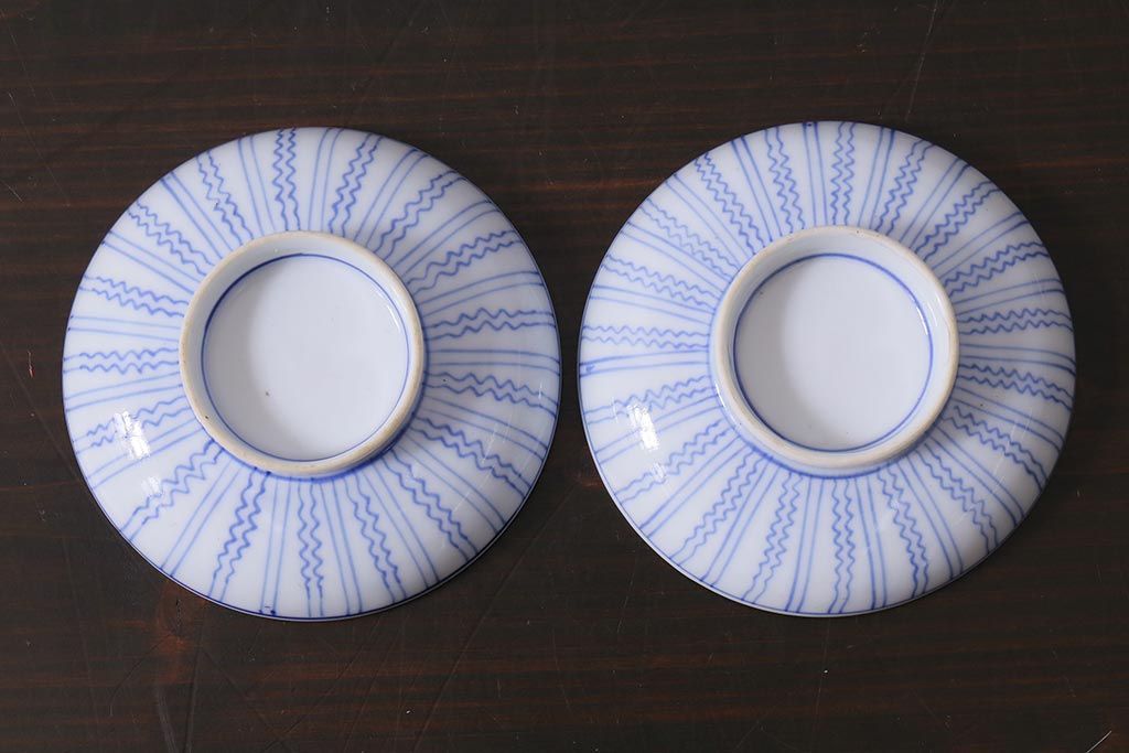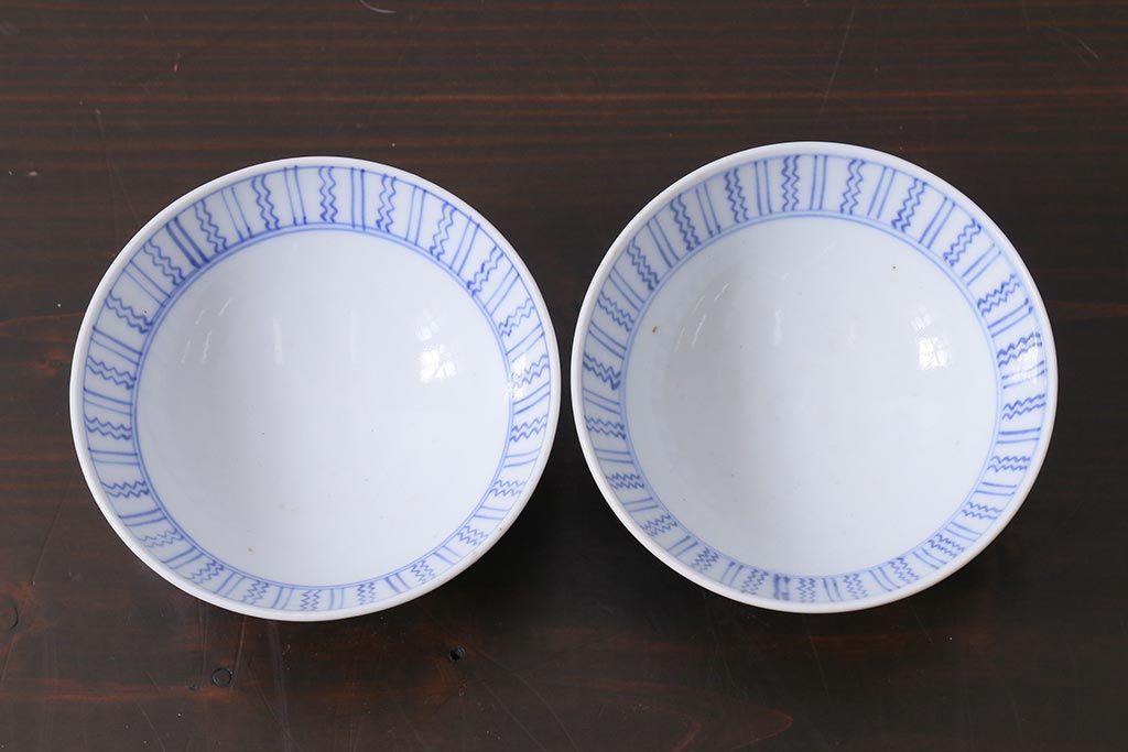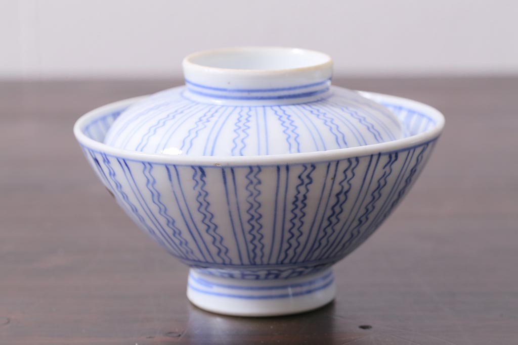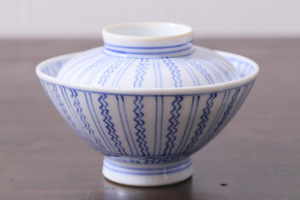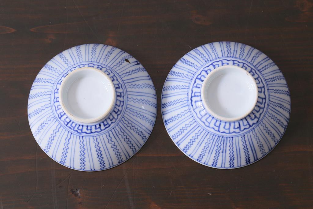 アンティーク雑貨 江戸明治期 染付蓋茶碗2個(R-037877)