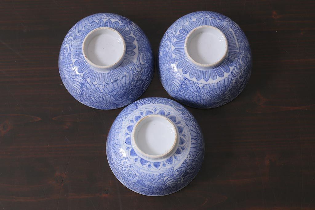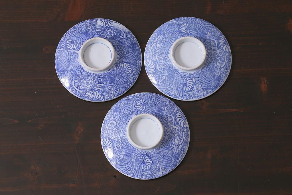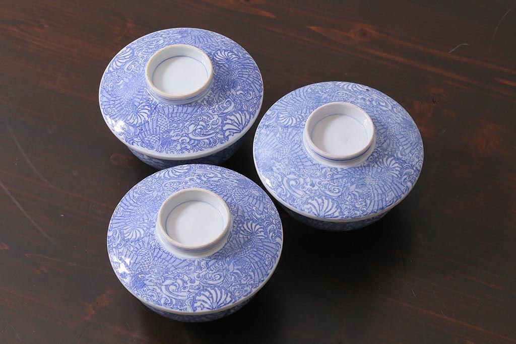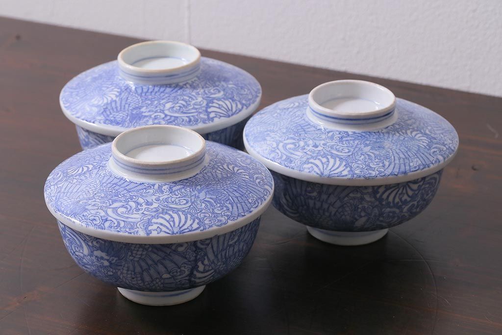 アンティーク雑貨 大正期 龍文 印判蓋茶碗3点セット(R-037883)