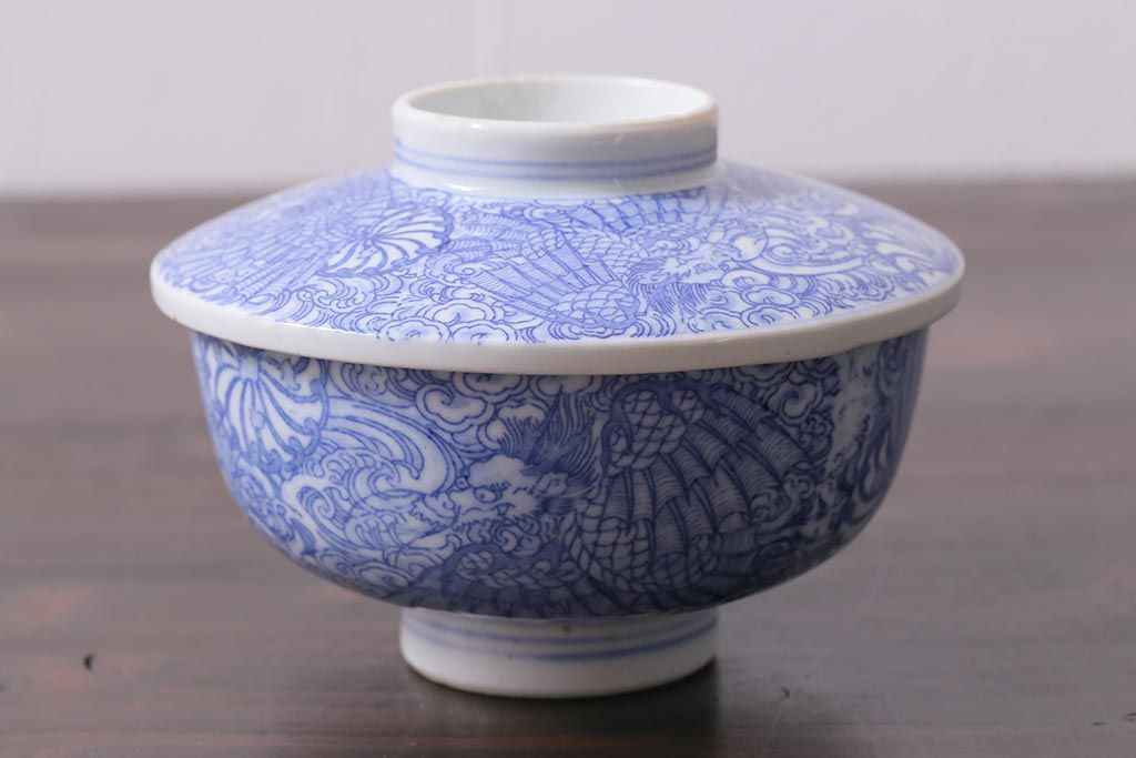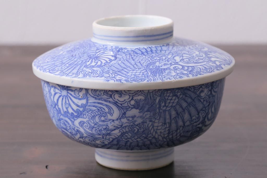 ラフジュ工房> 和食器・茶道具> お椀・茶碗 > アンティーク雑貨 大正期 龍文 印判蓋茶碗3点セット(R-037883)