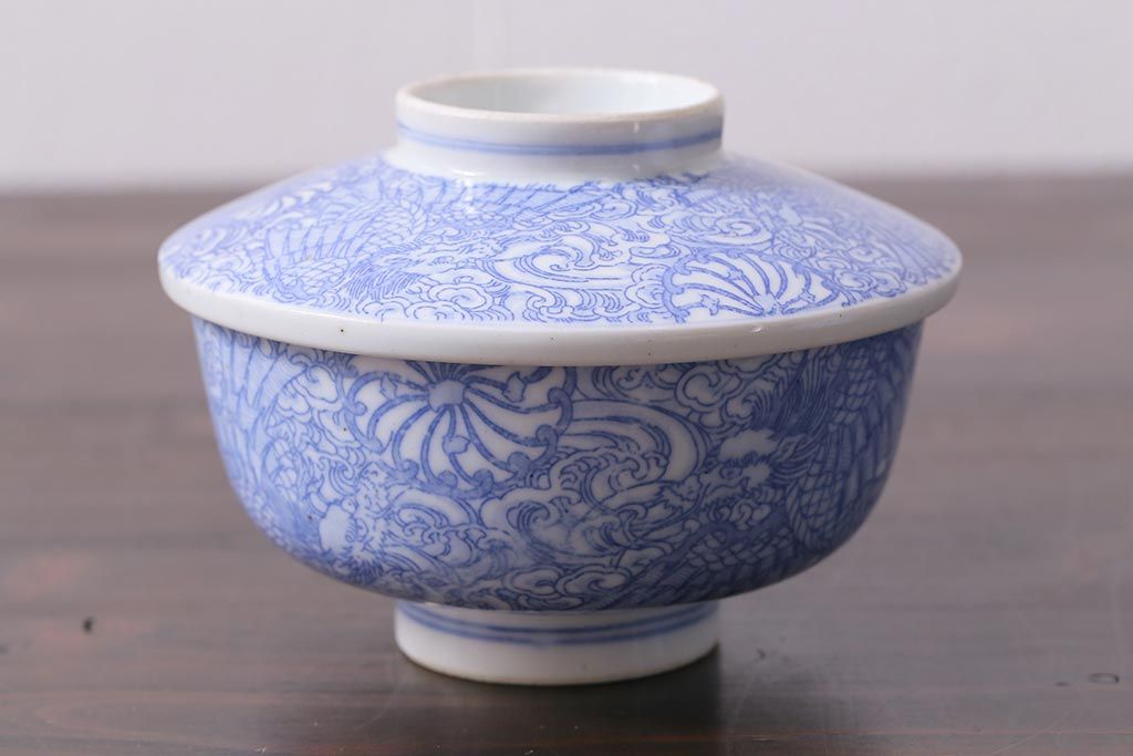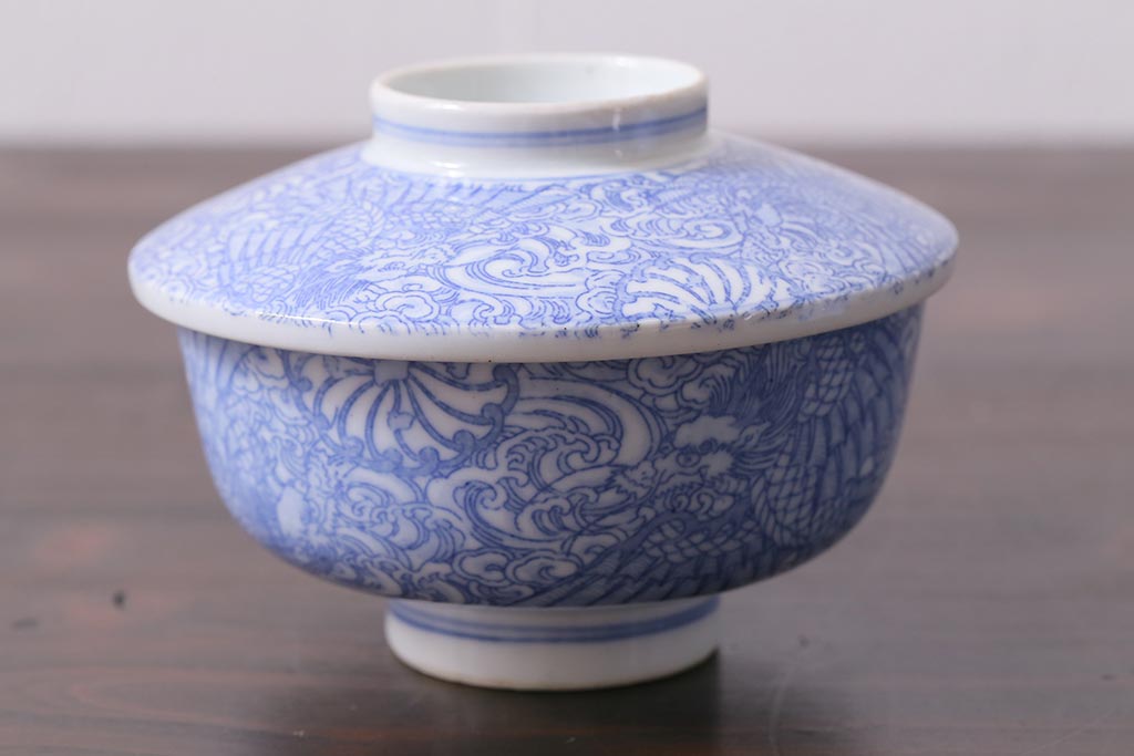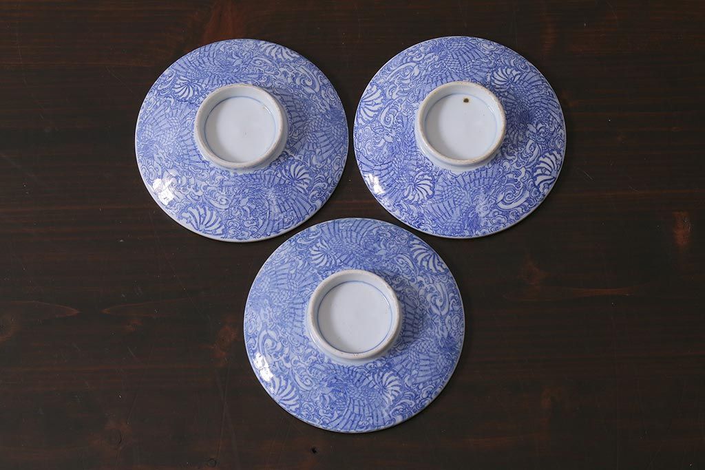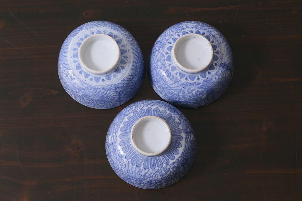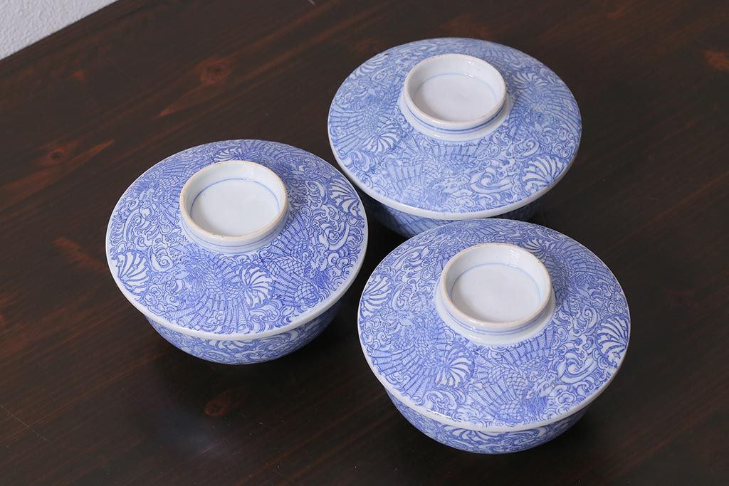 アンティーク雑貨 大正期 龍文 印判蓋茶碗3点セット(R-037884)