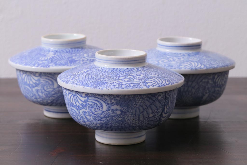 ラフジュ工房> 和食器・茶道具 > アンティーク雑貨 大正期 龍文 印判蓋茶碗3点セット(R-037885)