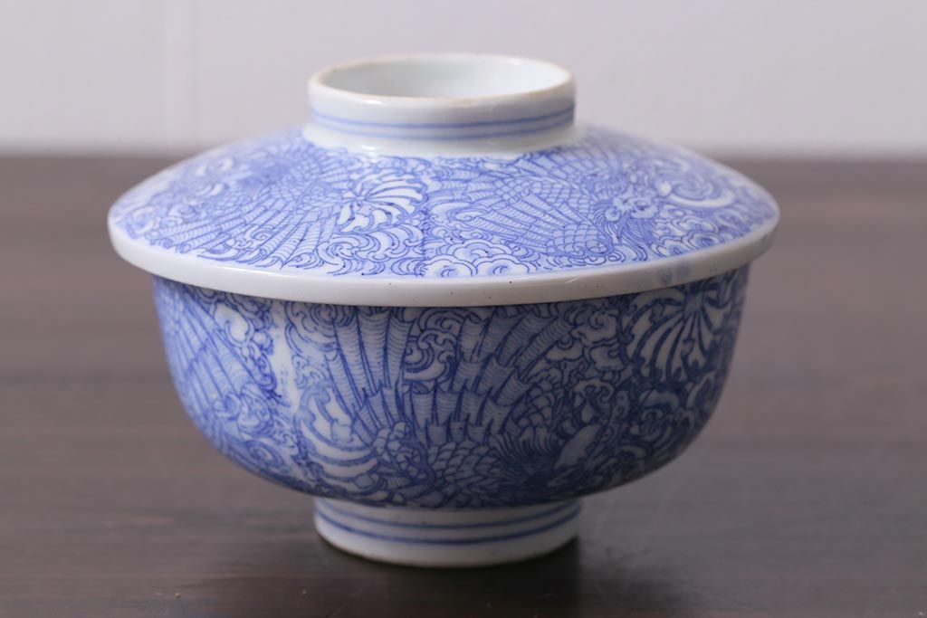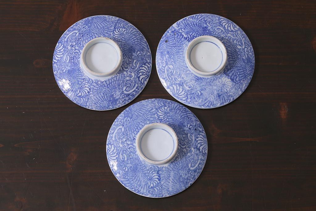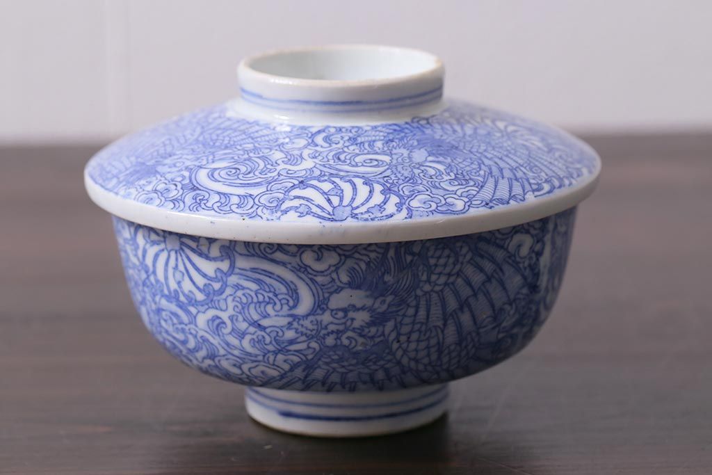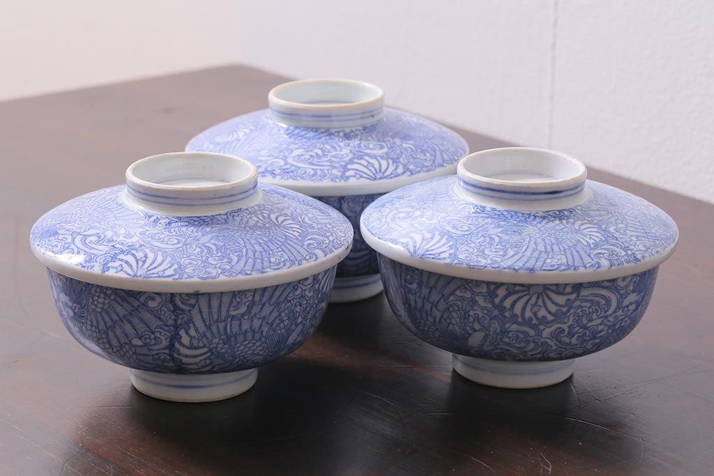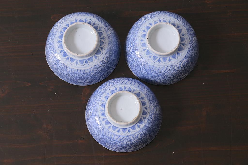 アンティーク雑貨 大正期 龍文 印判蓋茶碗3点セット(R-037885)