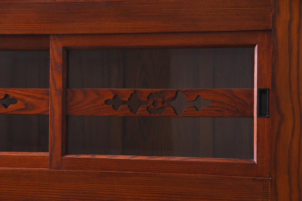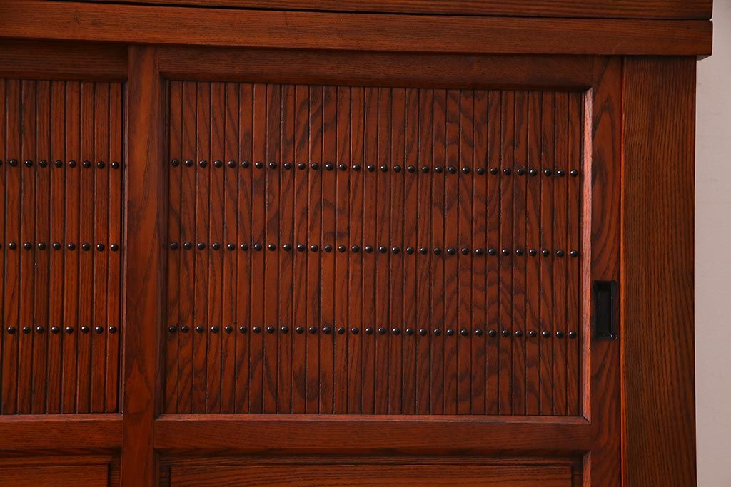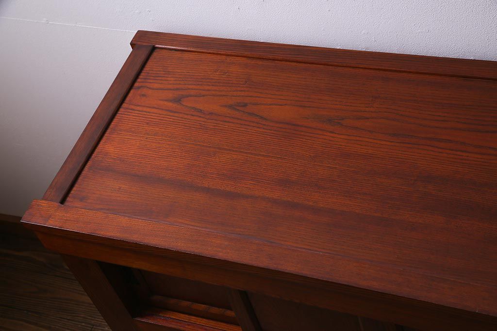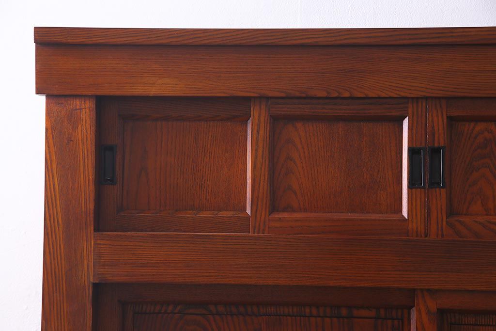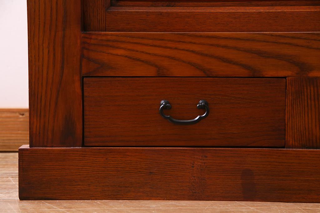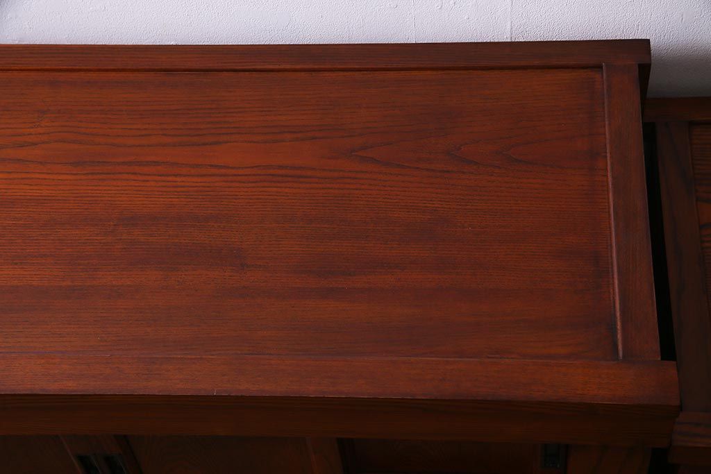 民芸家具 > 新古品 民芸家具 ニレ無垢材 重厚感と上品さを醸し出す重ね水屋箪笥(収納棚、食器棚、キャビネット)(R-037911)