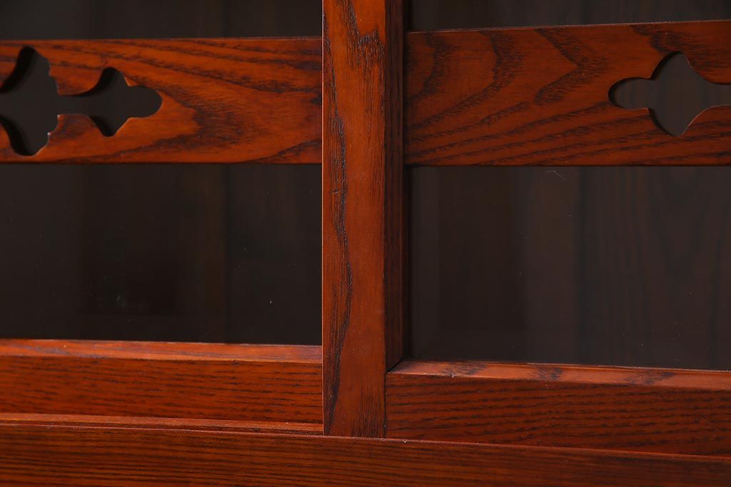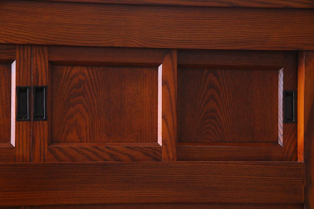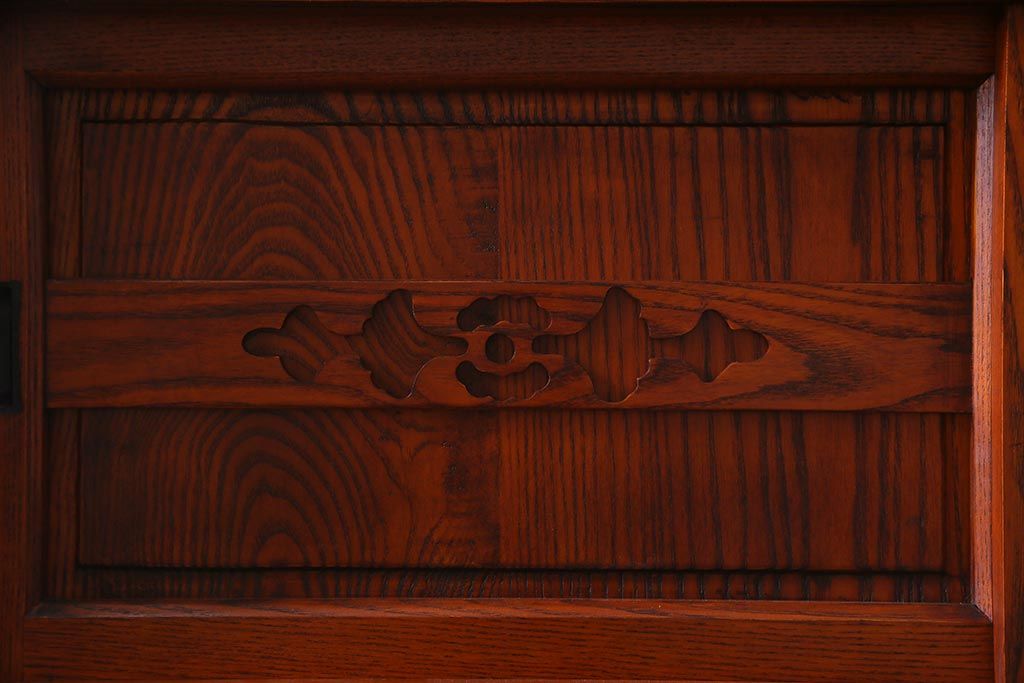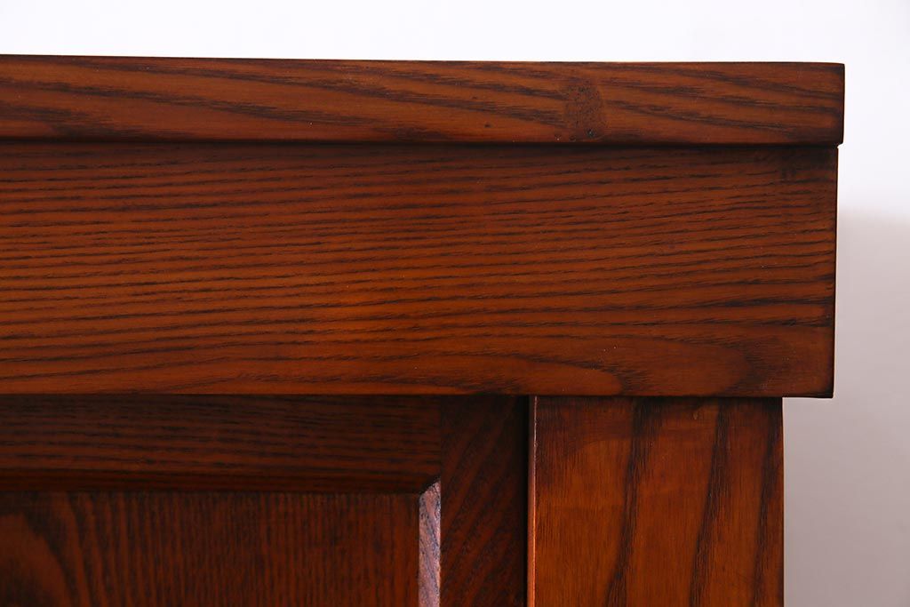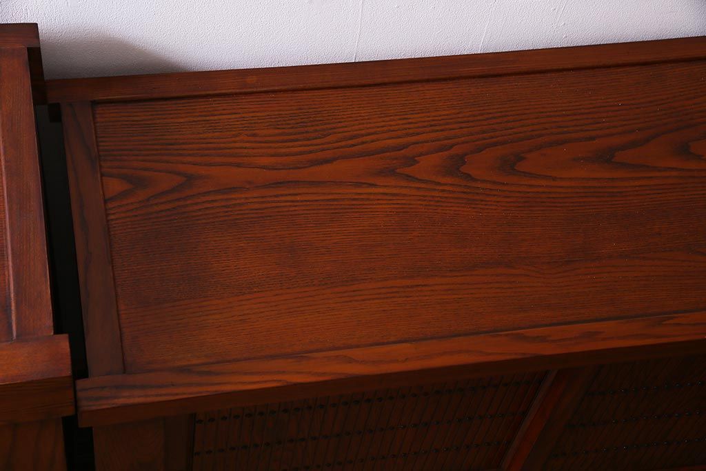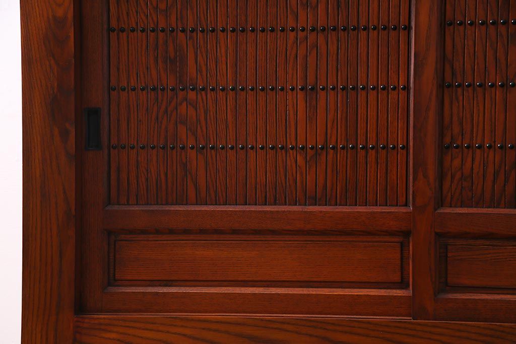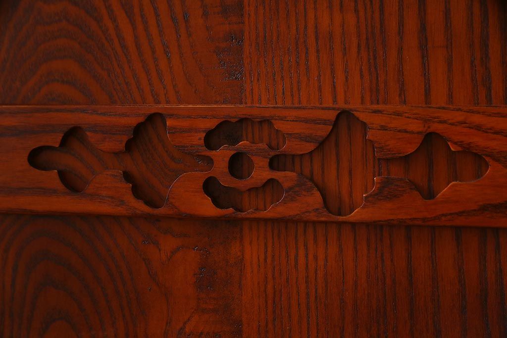 民芸家具 > 新古品 民芸家具 ニレ無垢材 重厚感と上品さを醸し出す重ね水屋箪笥(収納棚、食器棚、キャビネット)(R-037911)